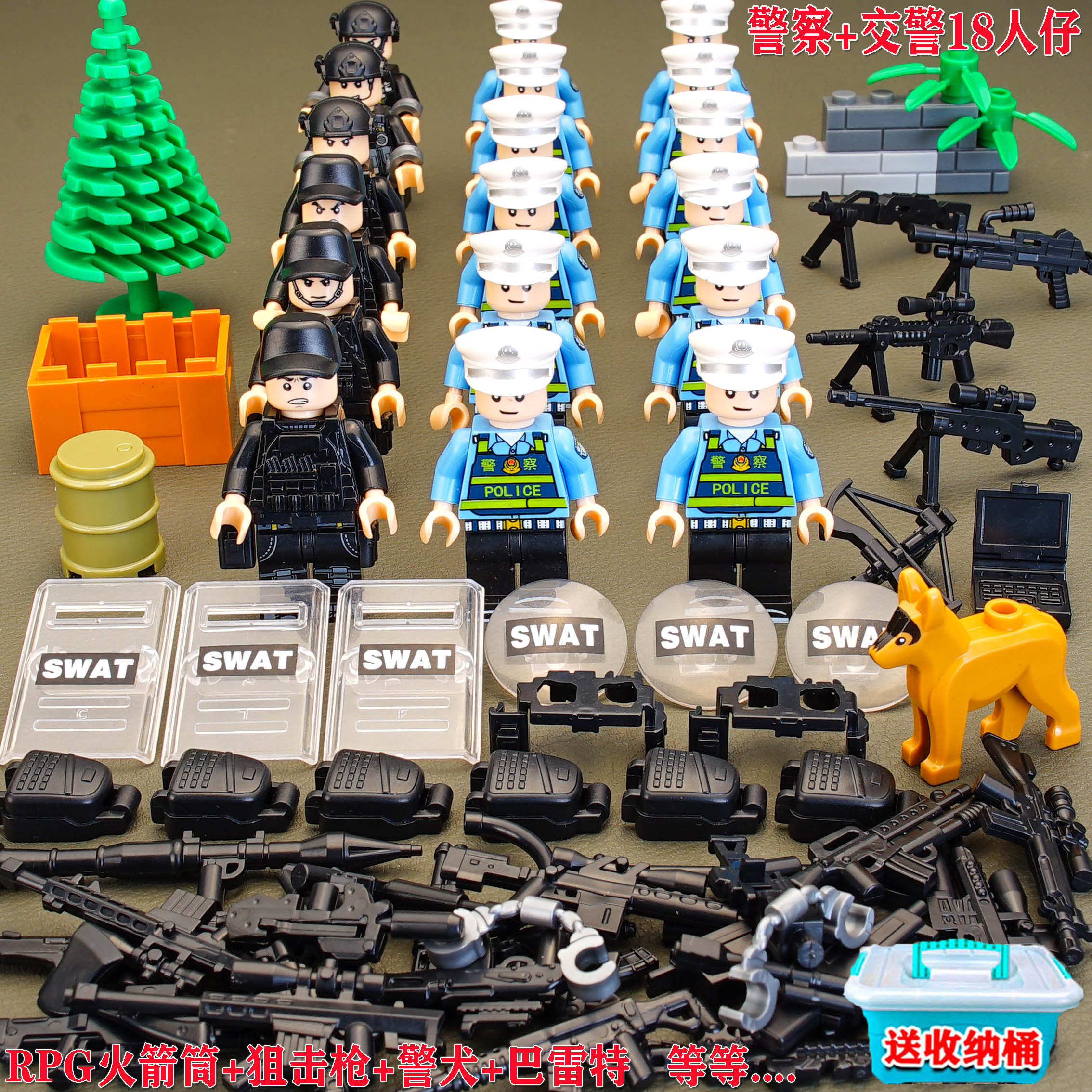 Chinese Building Blocks Police Special Forces Military Figures Swat Mini Figures Police Car Assembly Toy for 6-Year-Old Boys Motorcycle Toy 9