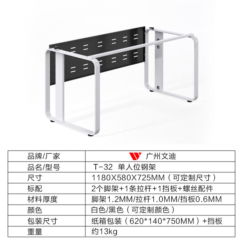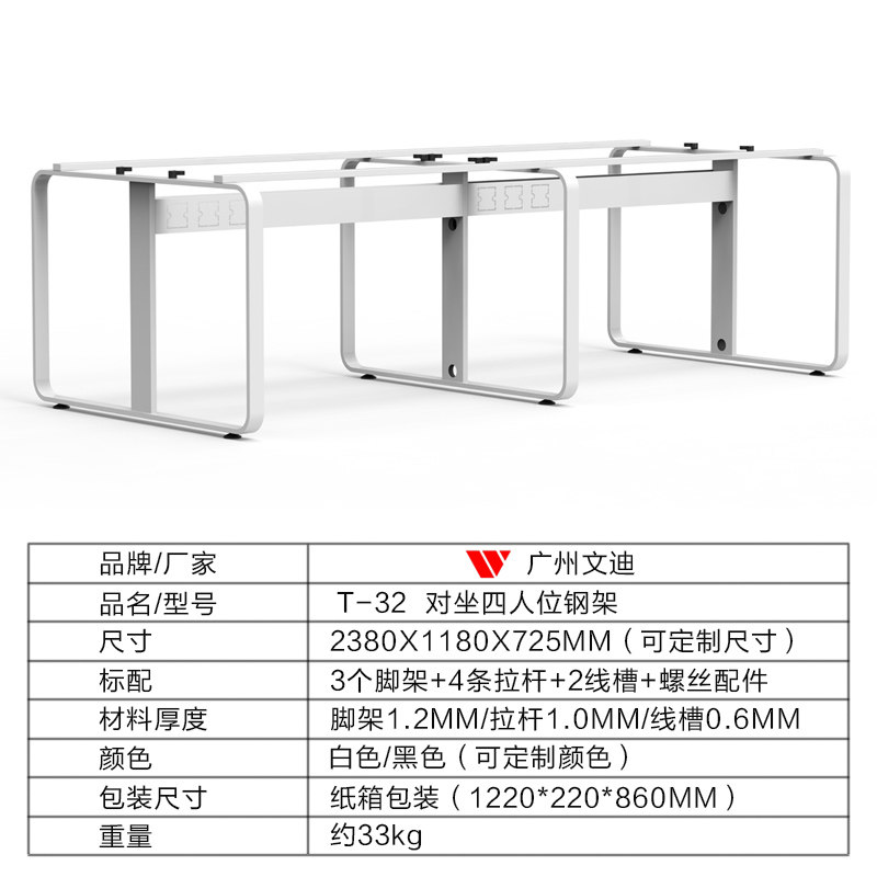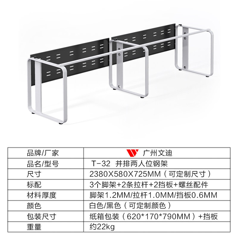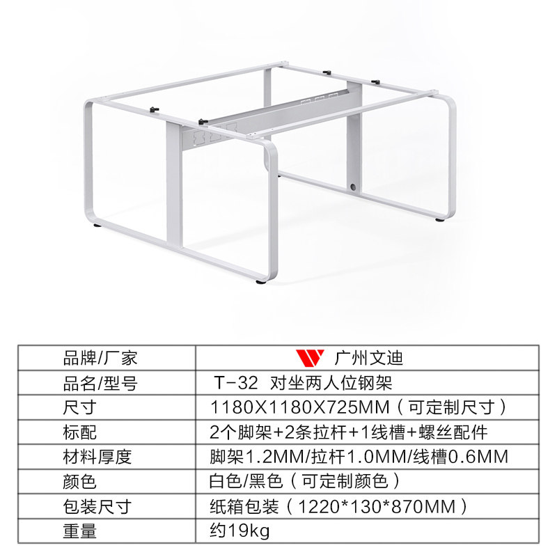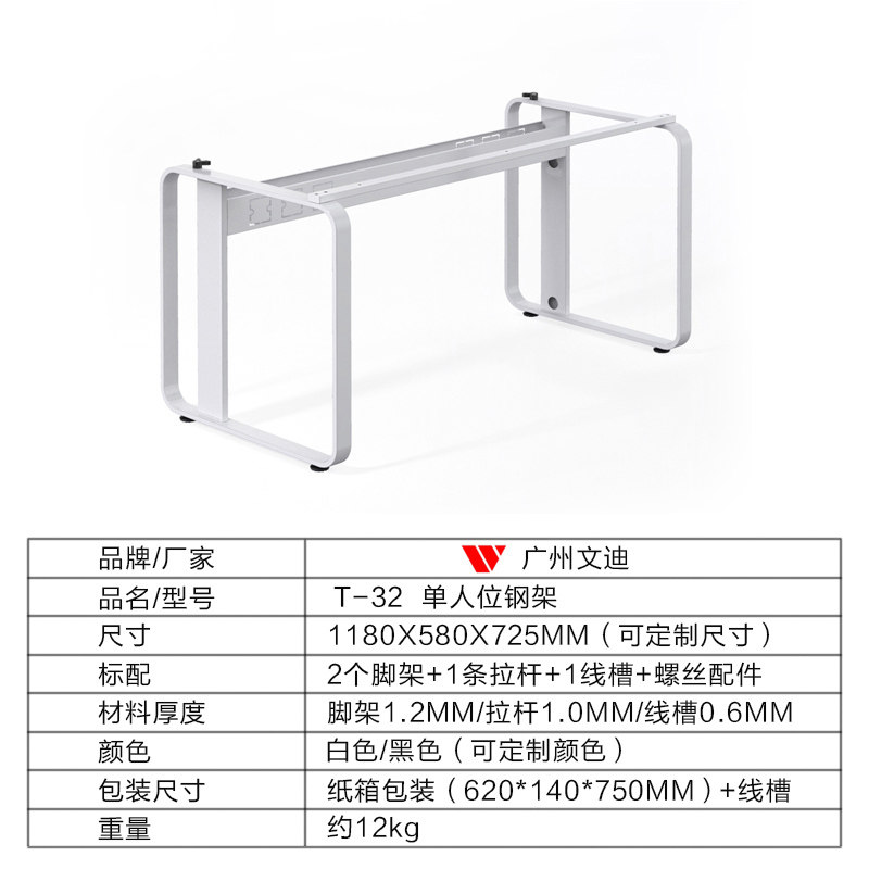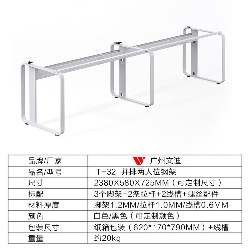 Guangzhou Wendi T-32 Japanese-Style Leg Office Furniture Hardware Steel Frame Table Leg with Cable Channel Office Desk Steel Frame Leg