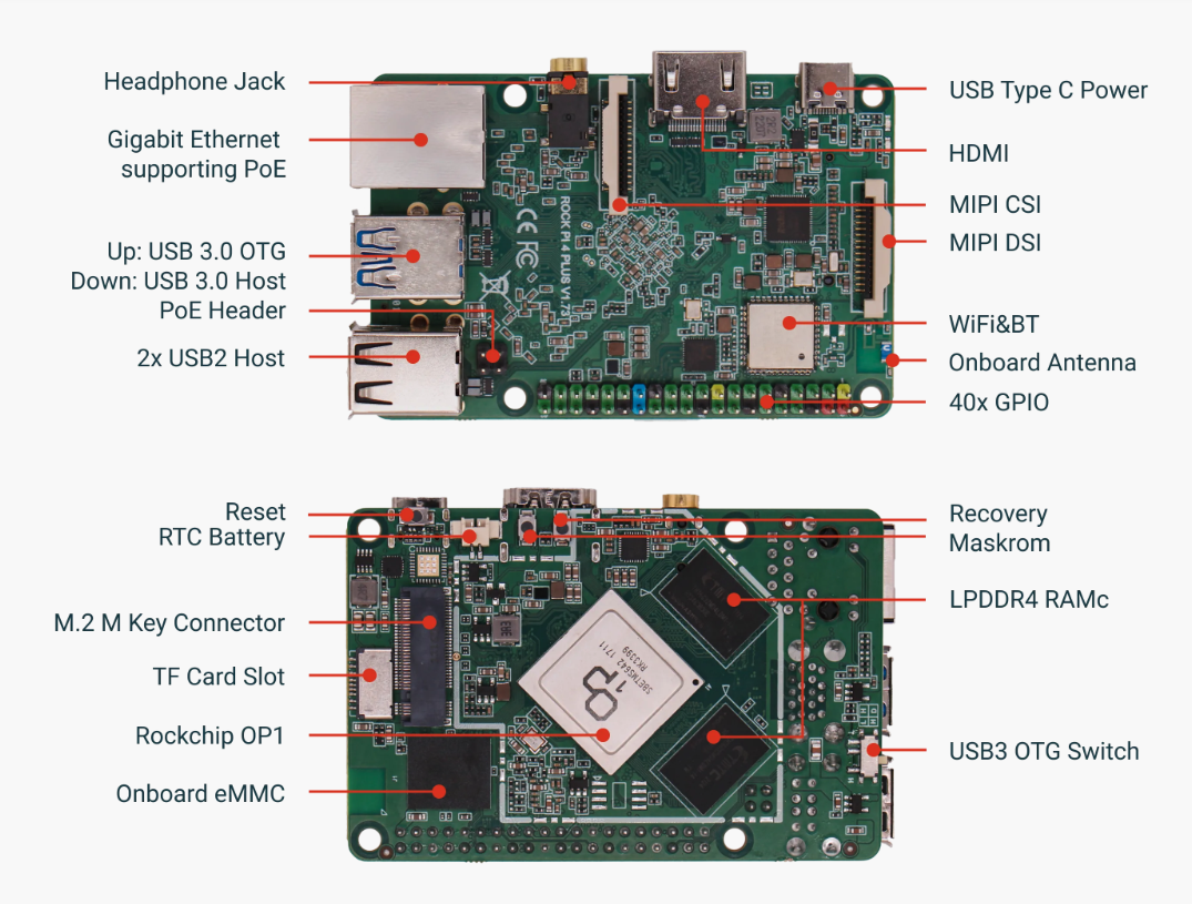 Rock Pi 4 High-Speed Version Op1 Rk3399 Development Board B+ 4g with Wifi Bluetooth Poe Compatible with Raspberry Pi