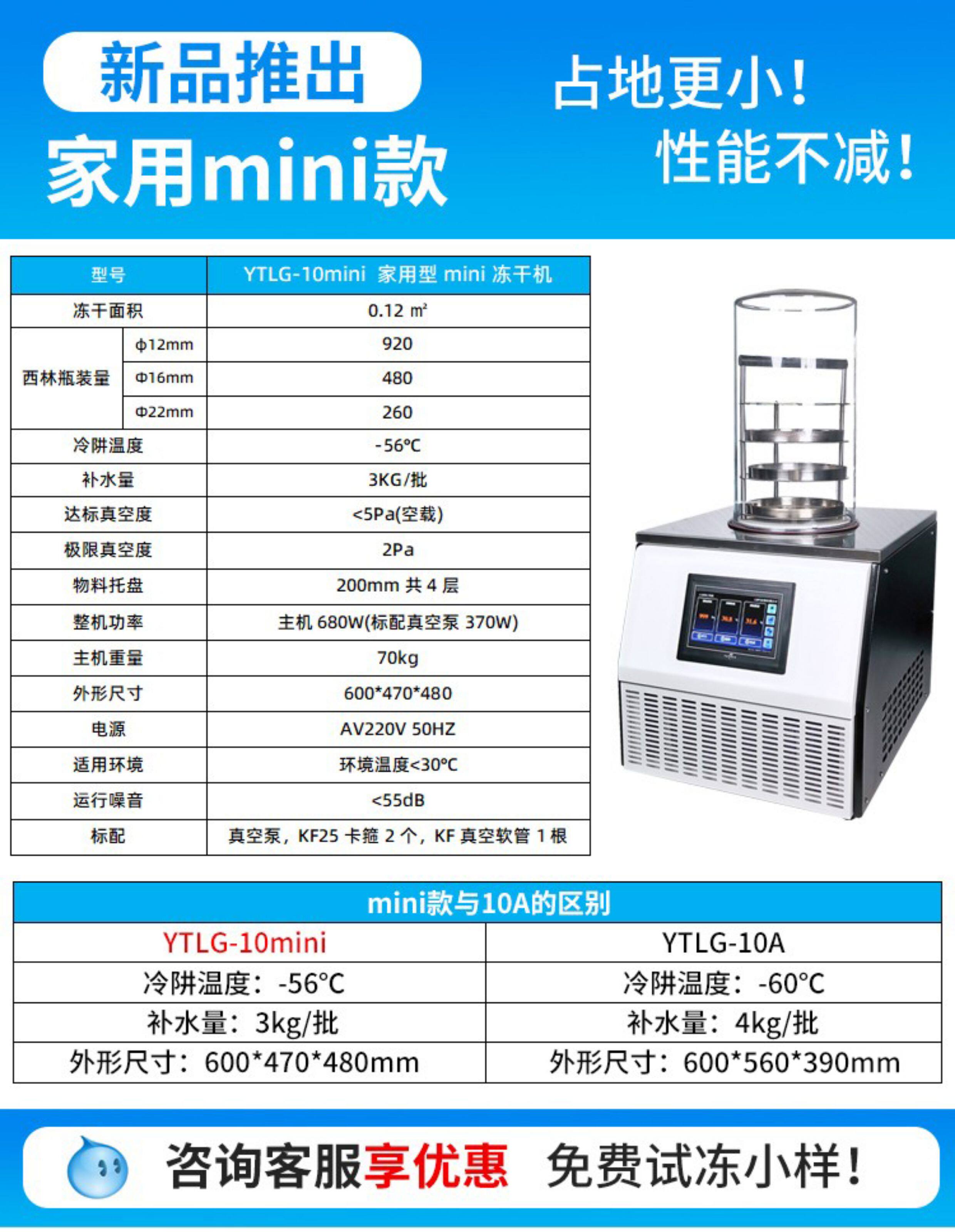 Shanghai Yetuo Ytlg-10A Freeze-Drying Machine for Food and Fruits, Small Household Laboratory Vacuum Freeze Dryer