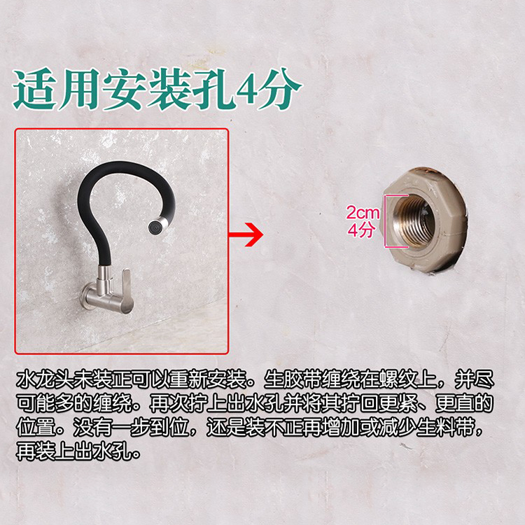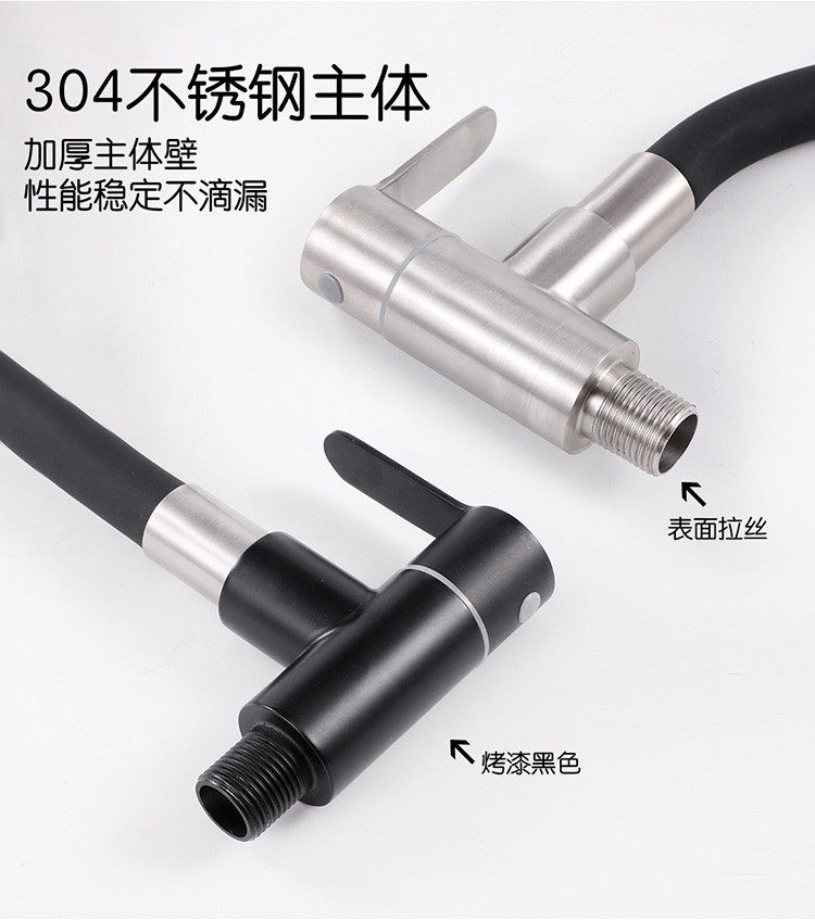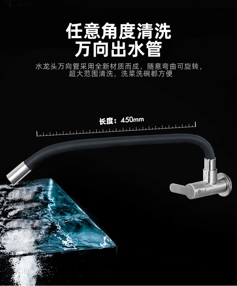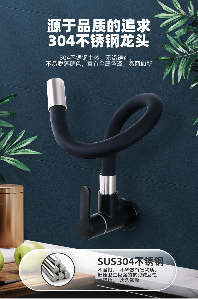 304 Stainless Steel Wall-Mounted Faucet, Universal Wall-Insert Faucet, Single Cold Water Kitchen Sink Pull-Out Retractable Faucet