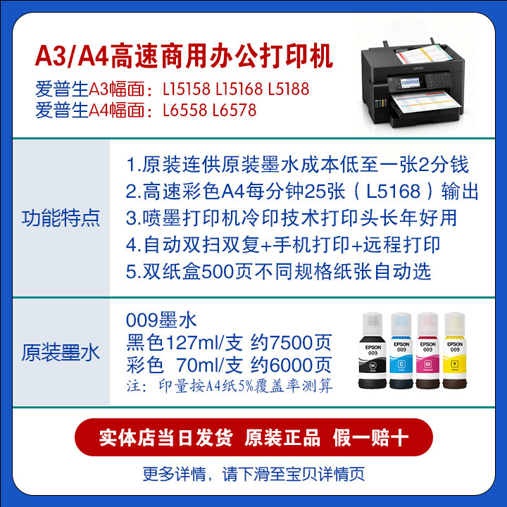 Epson L15158/15168/6558/6379A3+A4 Color Double-Sided High-Speed Graphic and Text All-In-One Printer