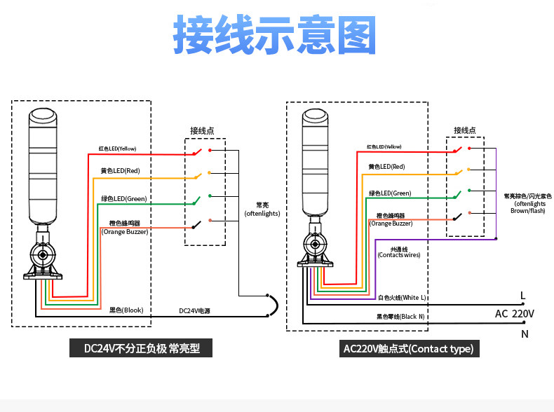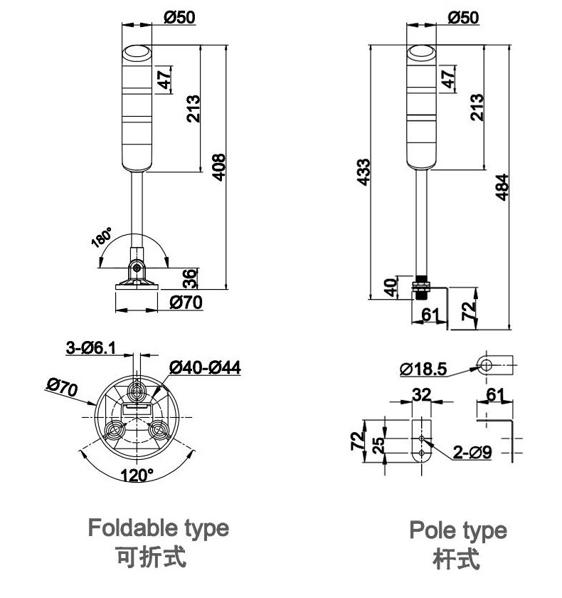 Three-Color Led Multi-Layer Warning Light Machine Tool Signal Light Alarm Indicator Light 24V Flashing Sound and Light Tower Light Foldableable