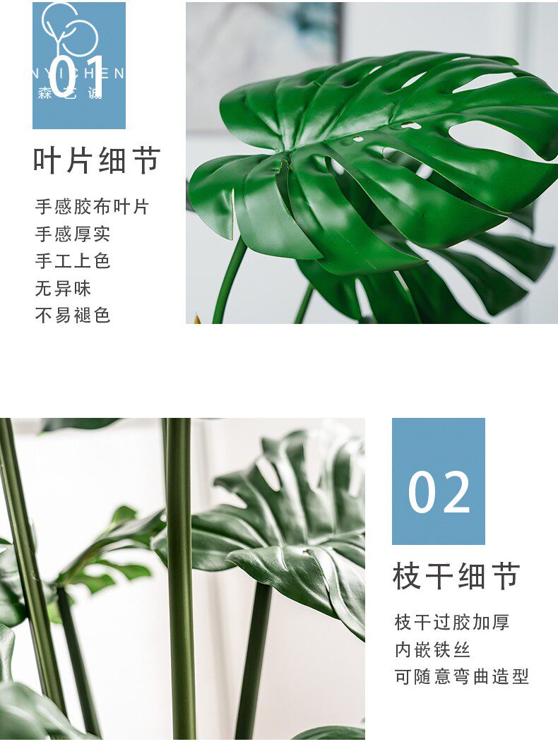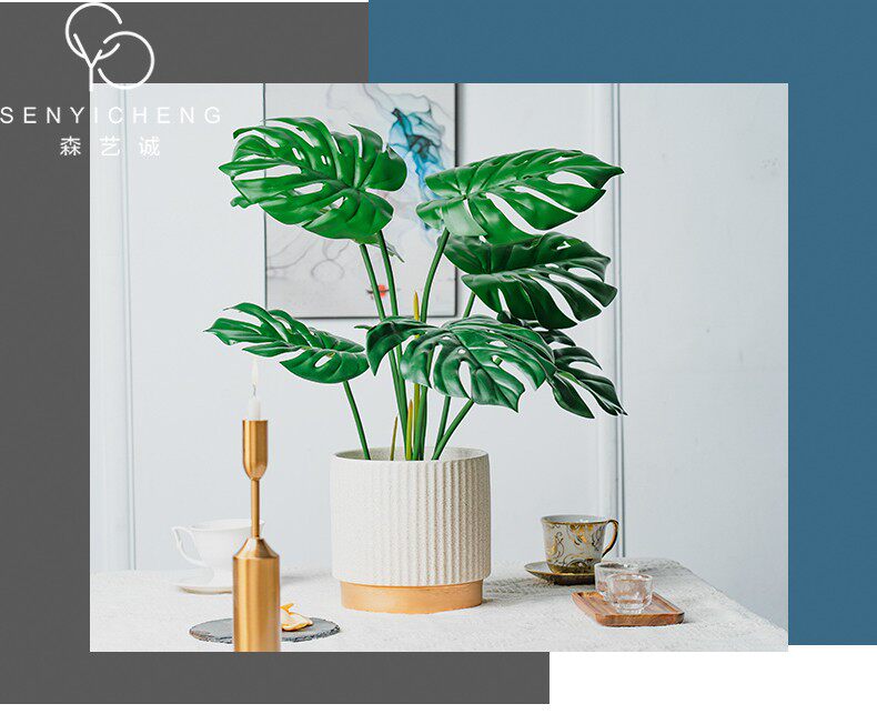 Artificial Monstera Bonsai Fake Tree Potted Plant Indoor Living Room Shop Landscaping Biomimetic Green Plant Decoration Ornament