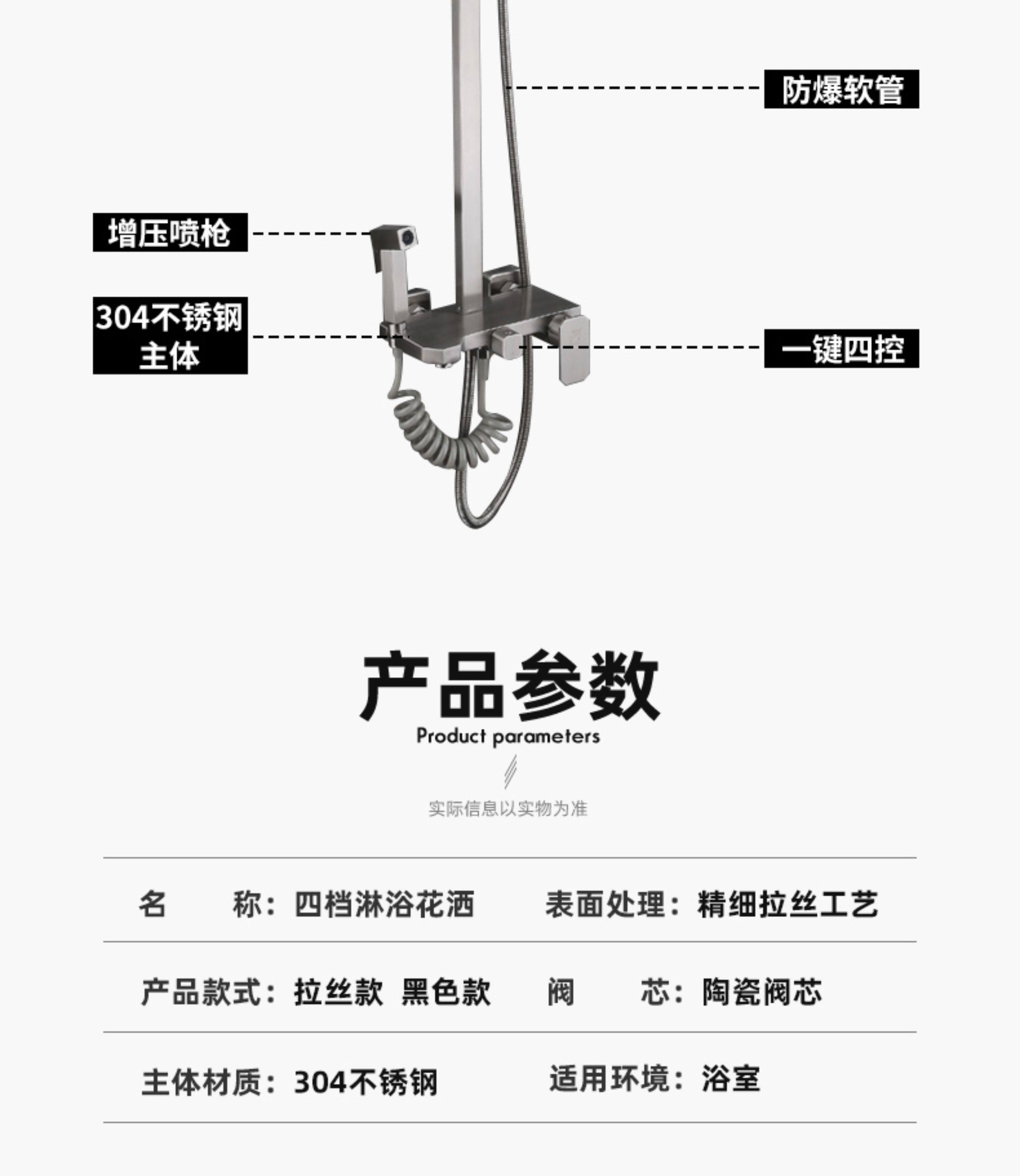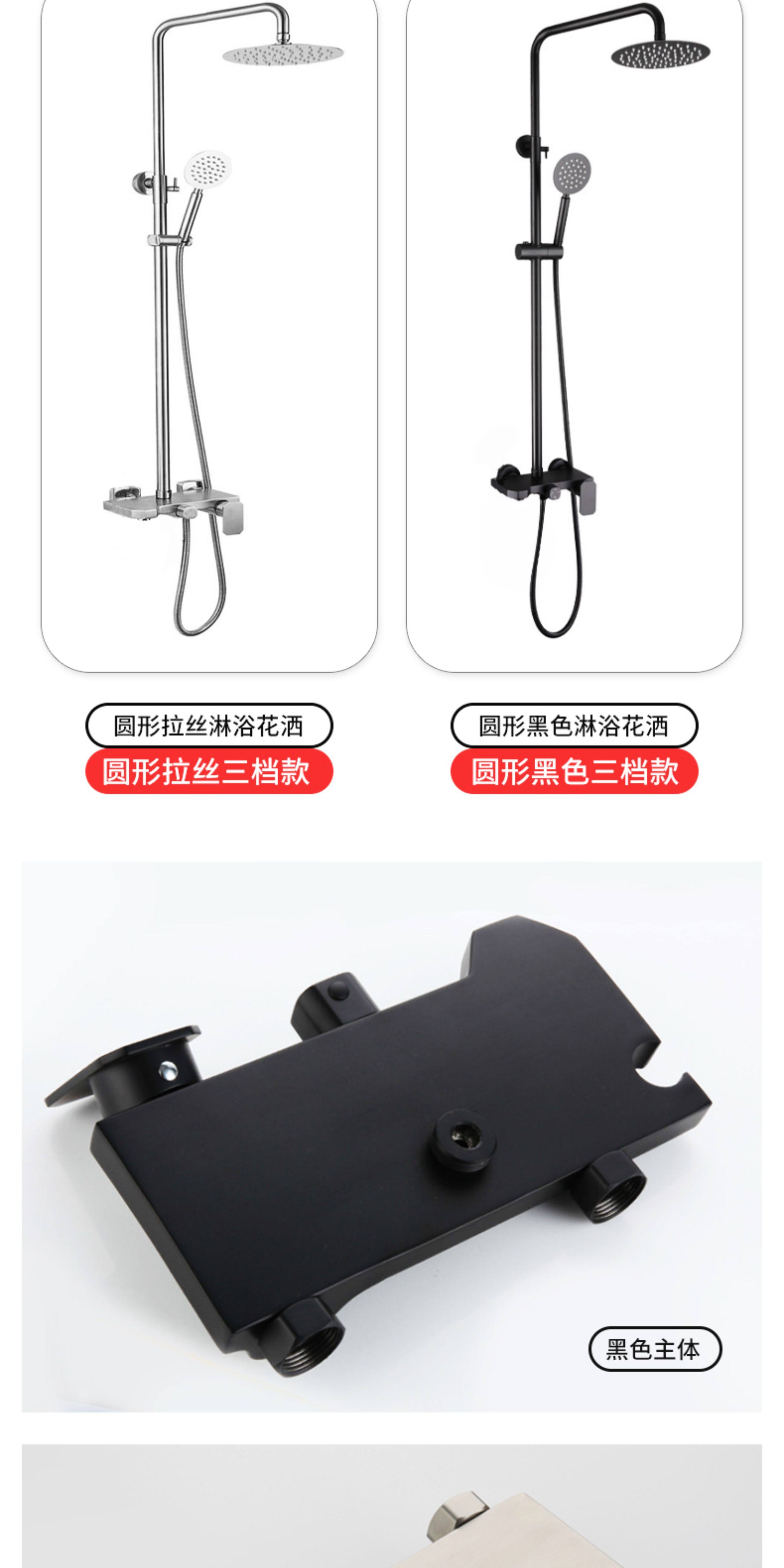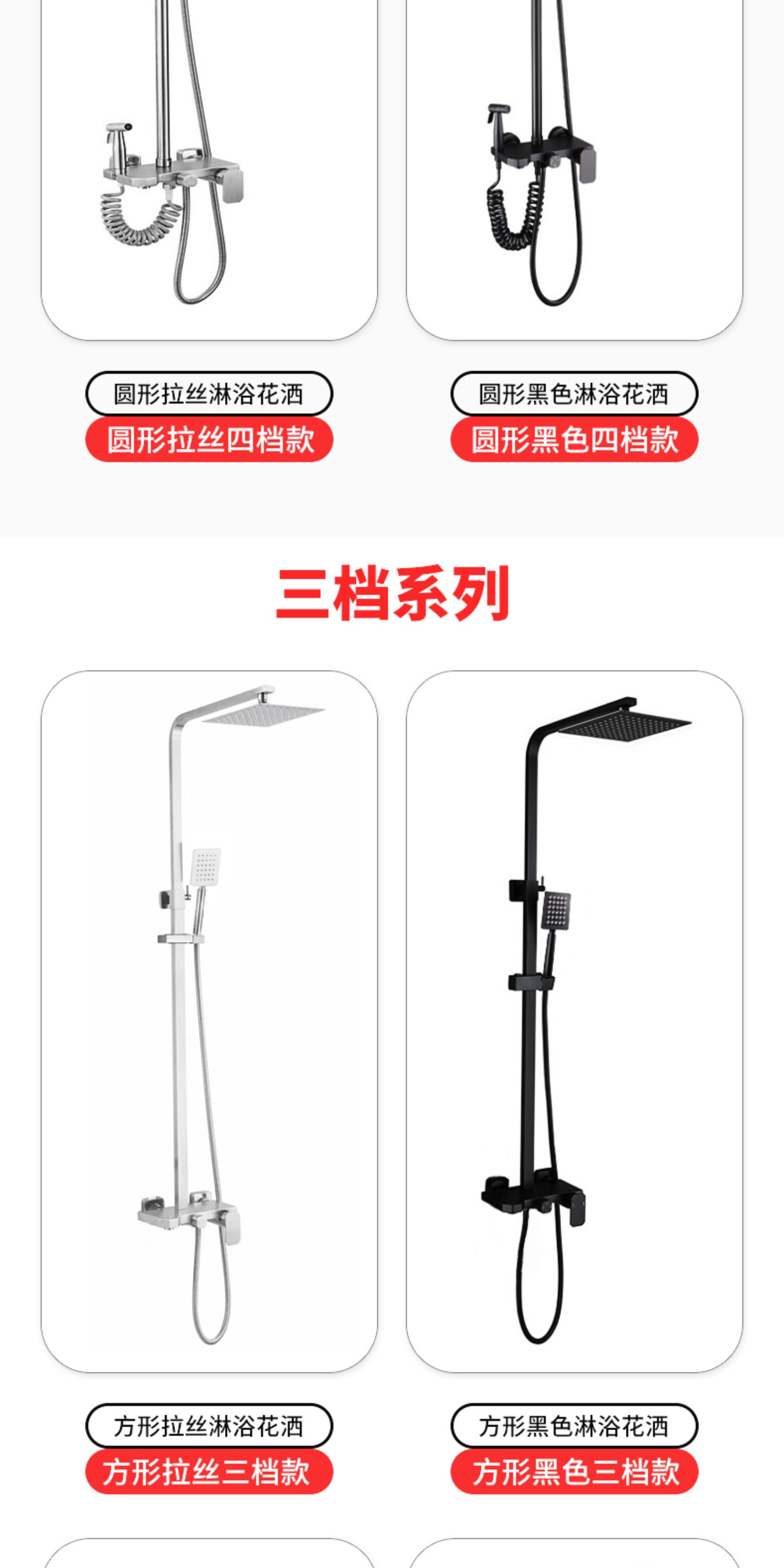 Color Classification Four-Setting Square Brushed Shower Head,Four-Setting Square Black Shower Head,Four-Setting Round Brushed Shower Head,Four-Setting Round Black Shower Head,Three-Setting Square Brushed Shower Head,Three-Setting Square Black Shower Head,Shower Cover Three-Speed Round Brushed,Three-Setting Round Black Shower Head