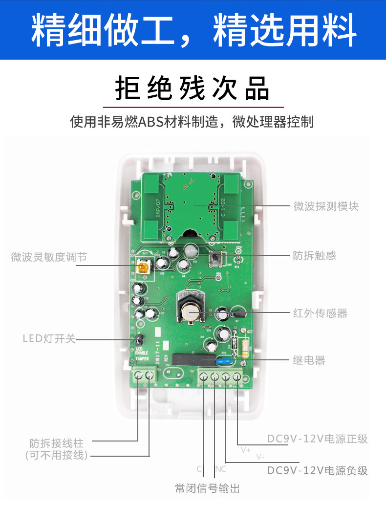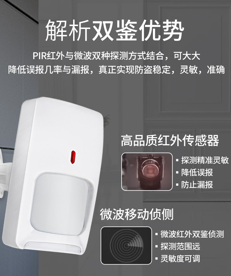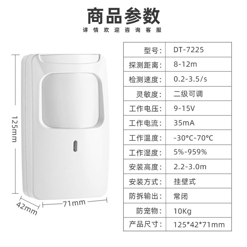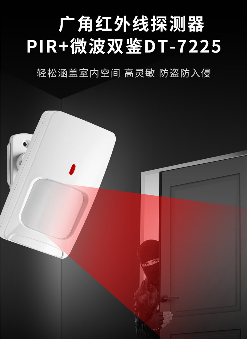 Wired infrared detector infrared microwave dual detection alarm passive sensor probe DT-7225