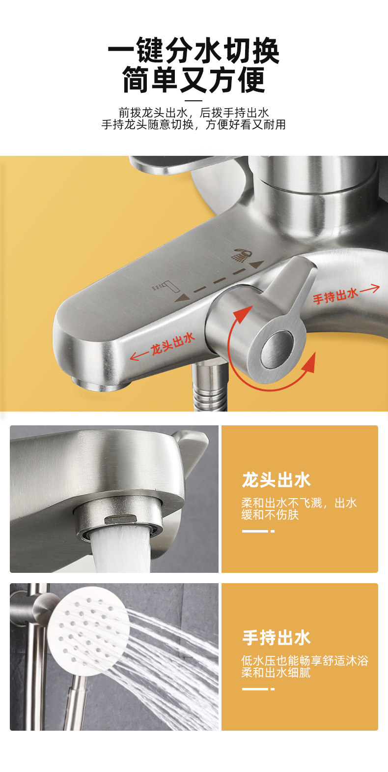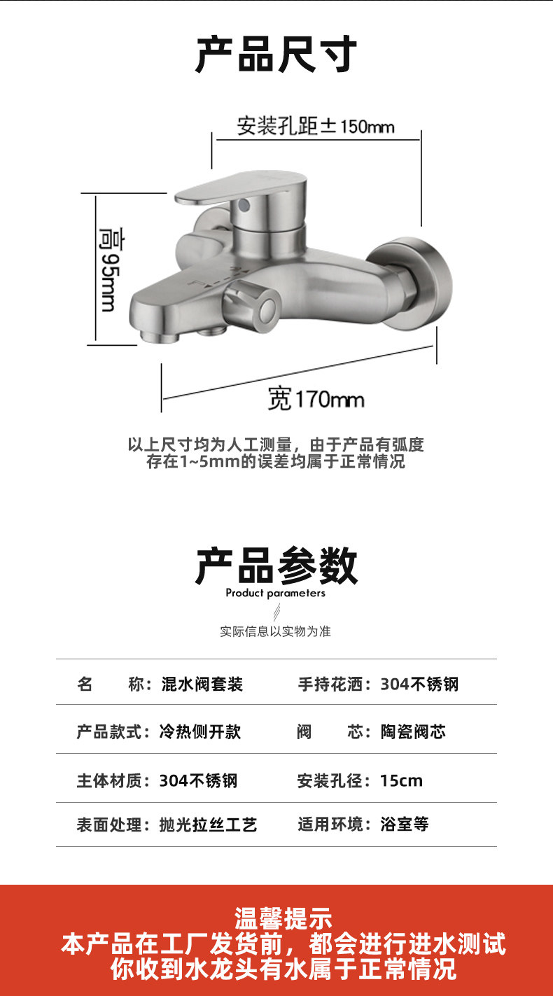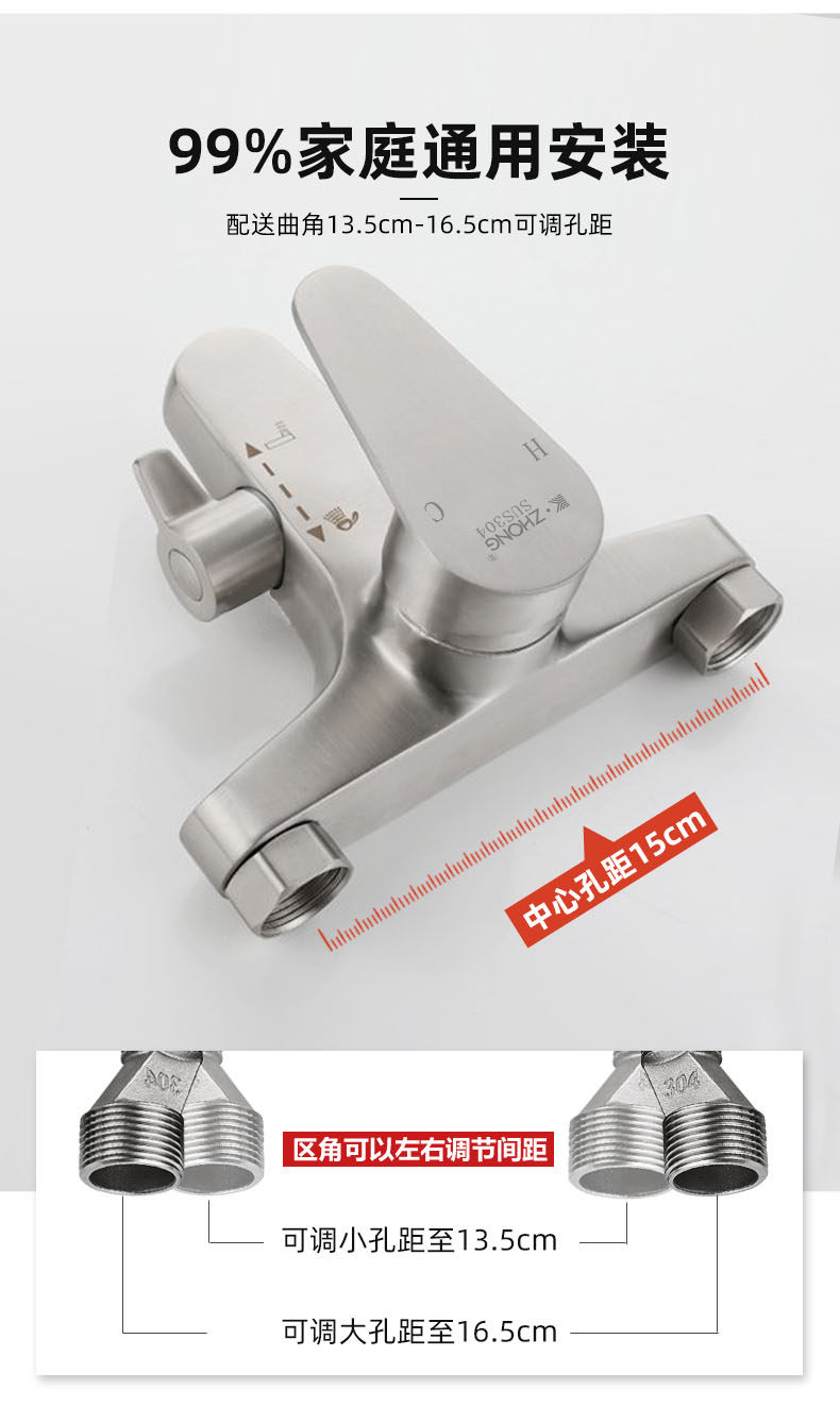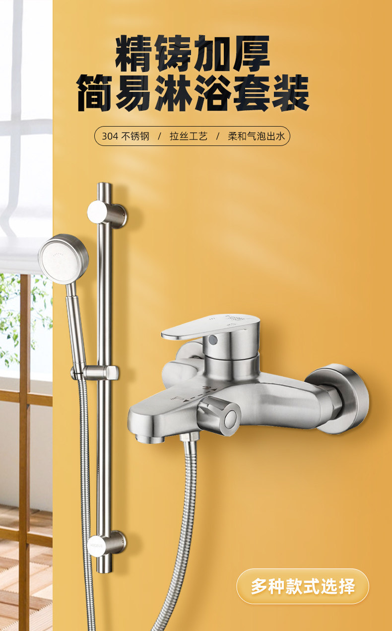 304 Stainless Steel Shower Set Faucet Bathroom Hot and Cold Mixing Valve Adjustable Shower Head Bathtub Wall-Mounted Mixing Valve