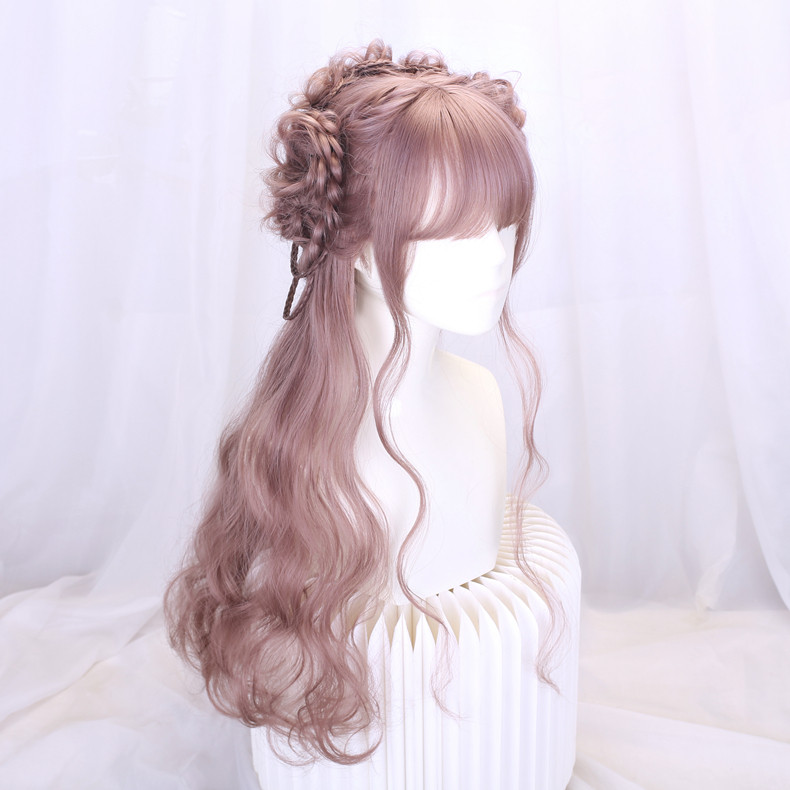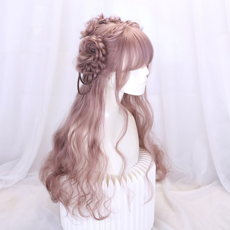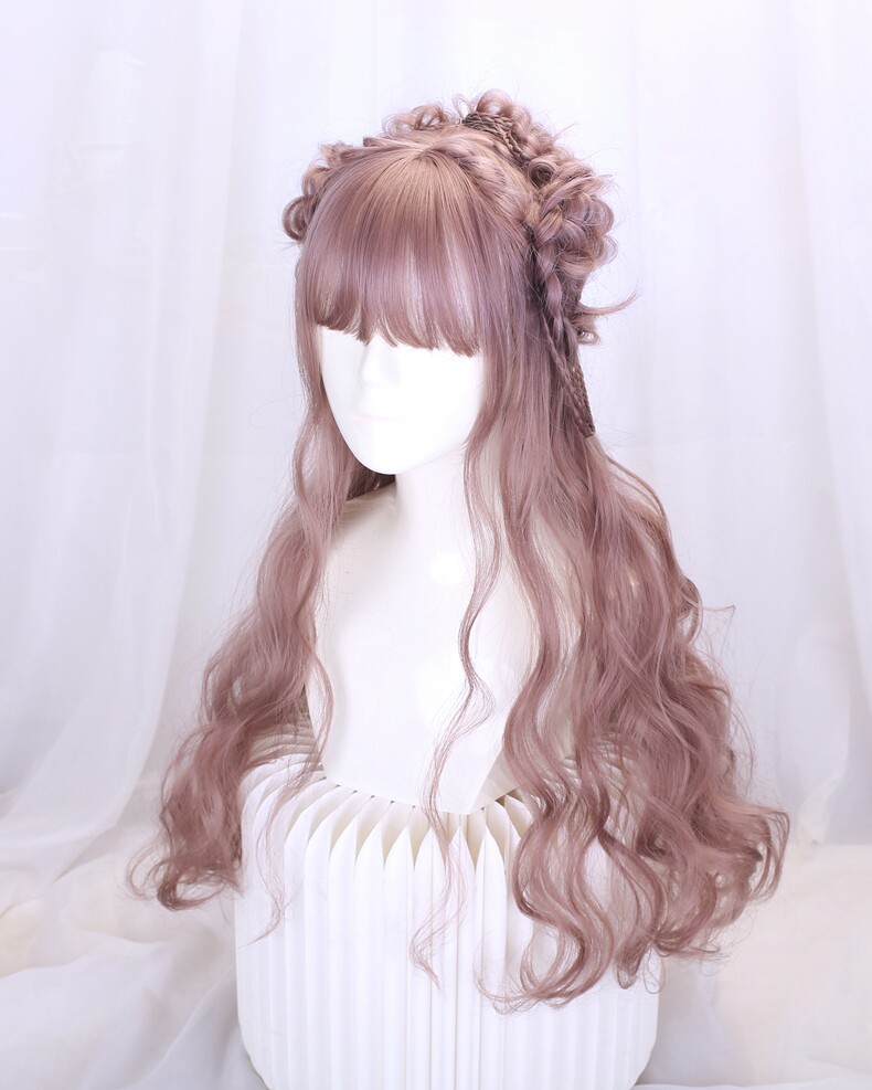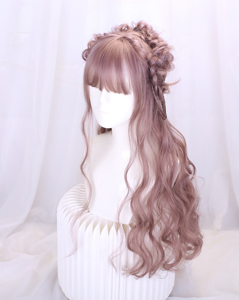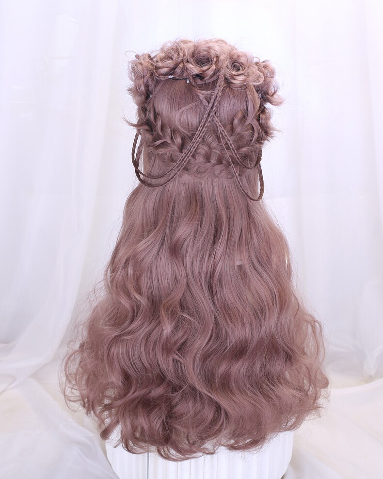 Lolita Wig Style for Women with Long Hair, Long Curly Hair, Lolita Synthetic Hair Full Head Wig, Pink Wig with Braided Hair