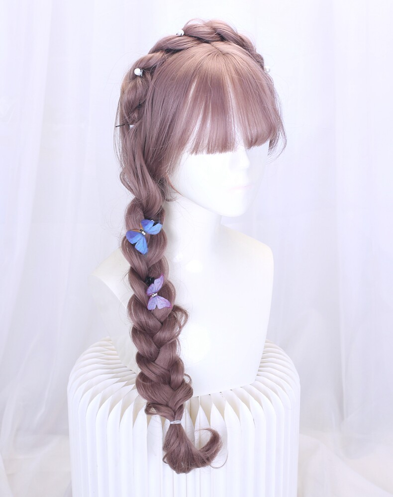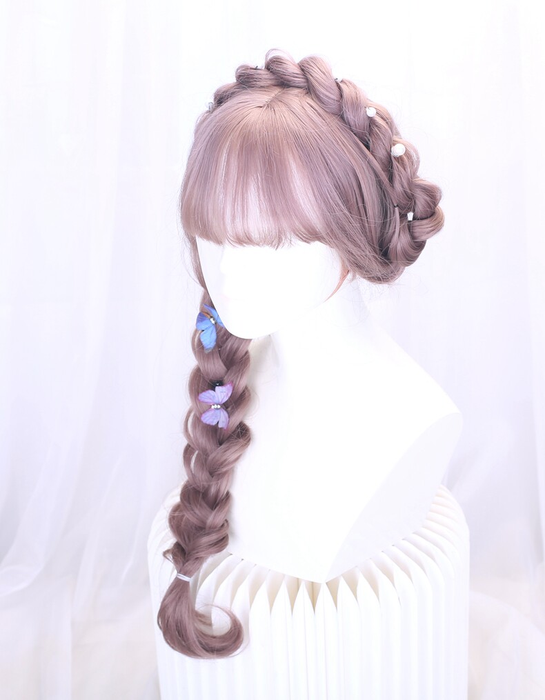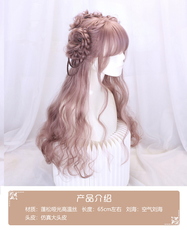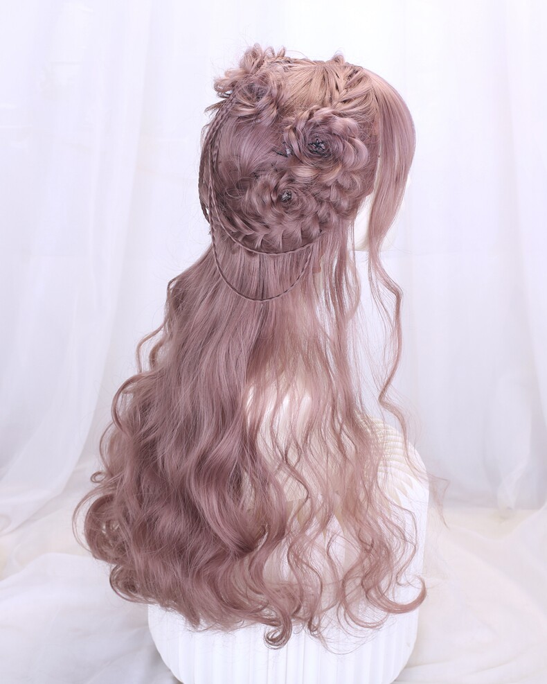 Lolita Wig Style for Women with Long Hair, Long Curly Hair, Lolita Synthetic Hair Full Head Wig, Pink Wig with Braided Hair
