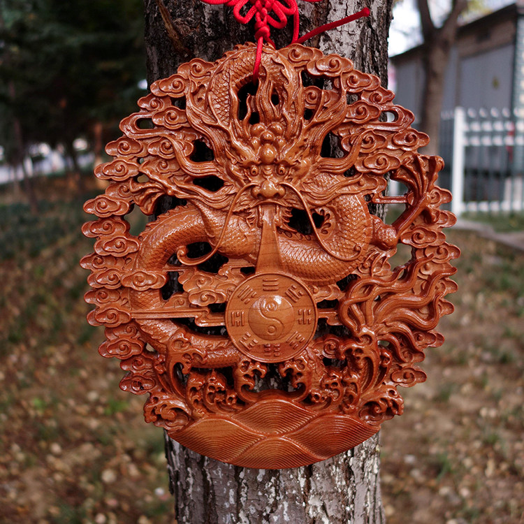 Peach Wood Shenlong Water-Absorbing Dragon Zodiac Dragon Wall Pendant Tai Chi Bagua Picture Decoration Ornaments Crafts