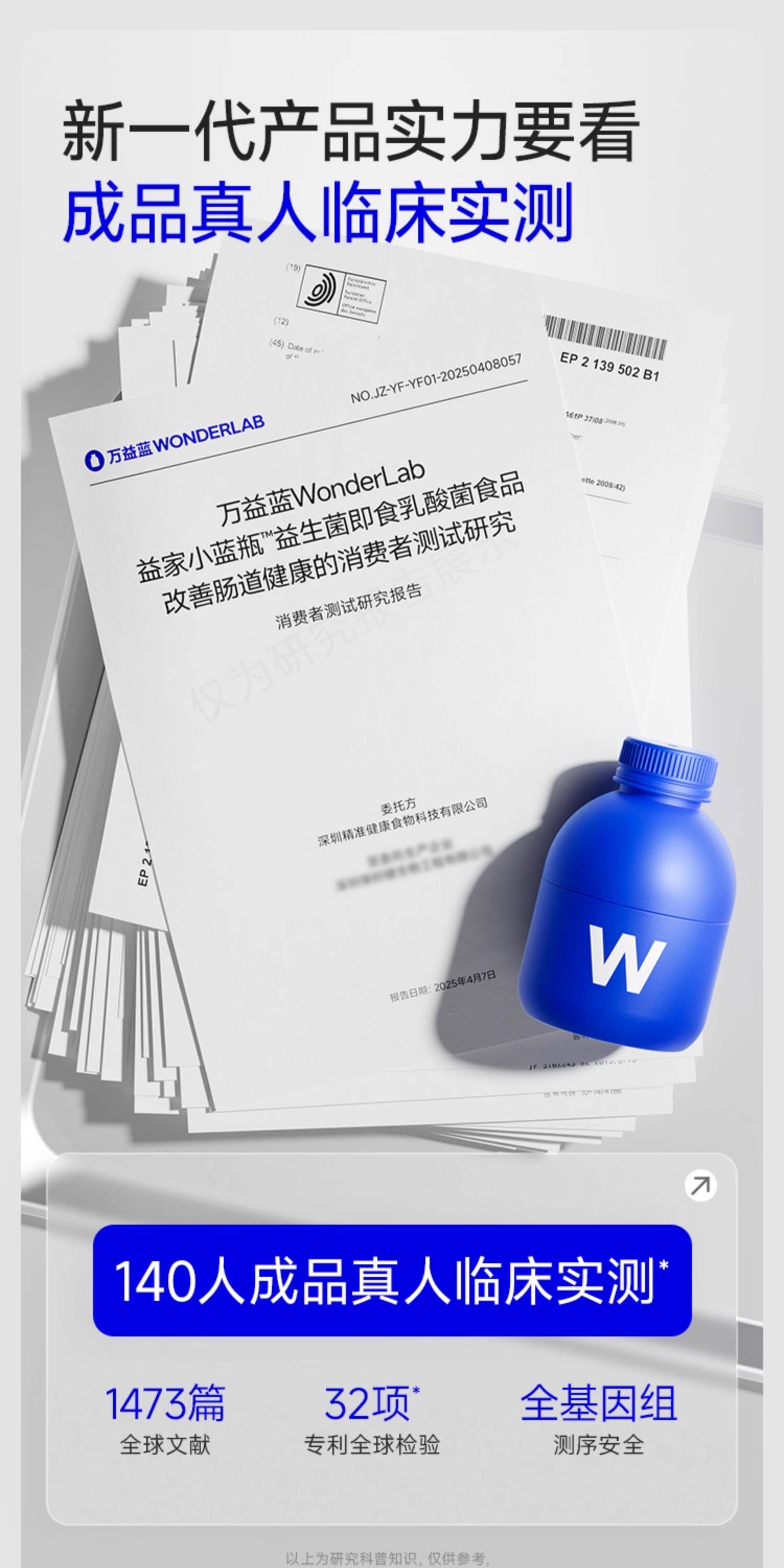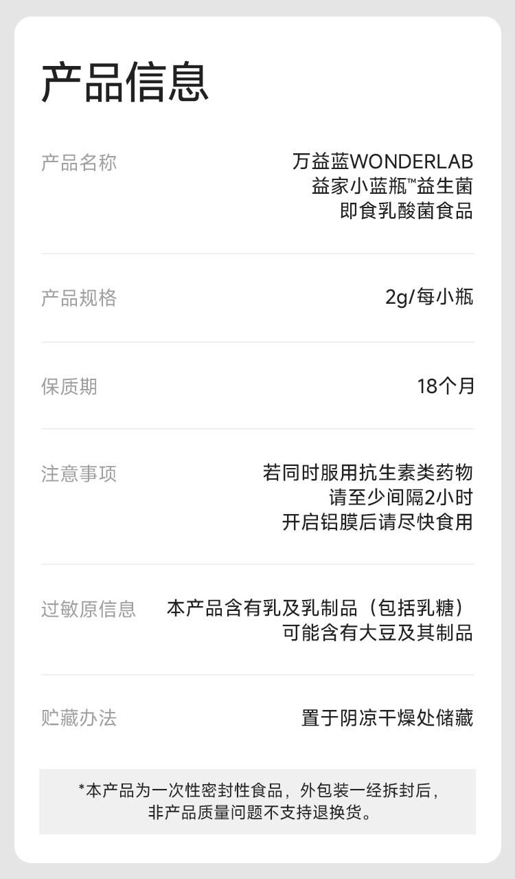 Wonderlab Small Blue Bottle Ready-To-Eat Probiotics for Adults, Kidsren, Women, Gastrointestinal Tract Prebiotics 40 Bottles