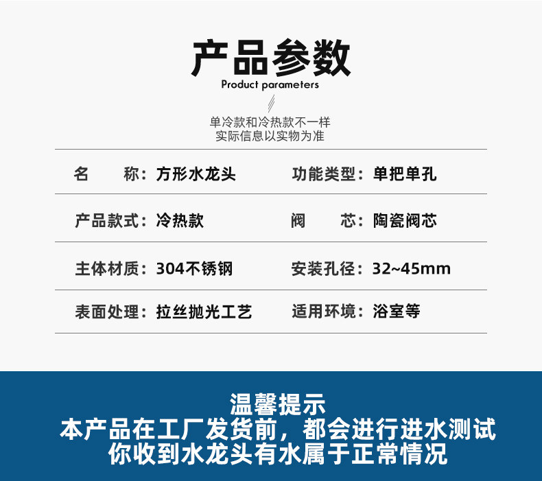 Color Classification Low Profile Mirror Light Hot and Cold Square + 60cm Hose,Low-Profile Brushed Square Faucet with 60cm Flexible Hose,Tall Brushed Hot and Cold Square + 60cm Hose,Mirror Light Hot and Cold Square + 60cm Hose + Angle Valve,Low-Profile Brushed Square Faucet with 60cm Flexible Hose and Angle Valve,Tall Brushed Hot and Cold Square + 60cm Hose + Angle Valve,Low-Profile Mirror-Finish Hot & Cold Square Faucet (Hose Not Included),Low-Profile Brushed Square Hot and Cold Faucet (Hoses Not Included),High-Style Brushed Hot & Cold Square Faucet (Hose Not Included),Low-Profile Brushed Single Cold Water Square Faucet (Hose Not Included),Low Profile Brushed Single Cold Square + 60cm Hose,Low-Profile Brushed Single-Lever Square Faucet with 60cm Flexible Hose and Angle Valve,High-Style Brushed Single Cold Square Faucet (Hose Not Included),Tall Brushed Single Cold Square + 60cm Hose,Tall Brushed Single Cold Square + 60cm Hose + Angle Valve