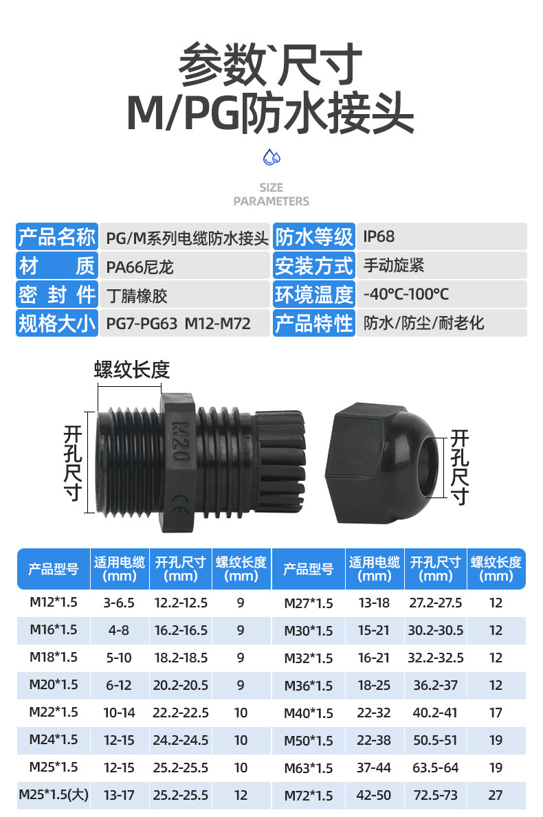 Cable Waterproof Connector Nylon Plastic M10M12M16M27M20M22M24M25M30M32 Fixed Gland