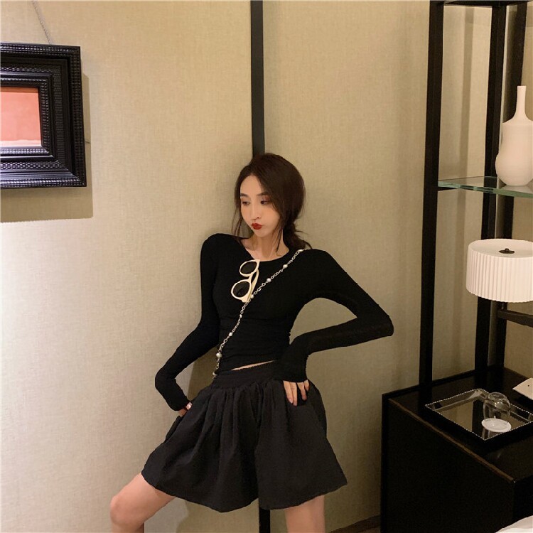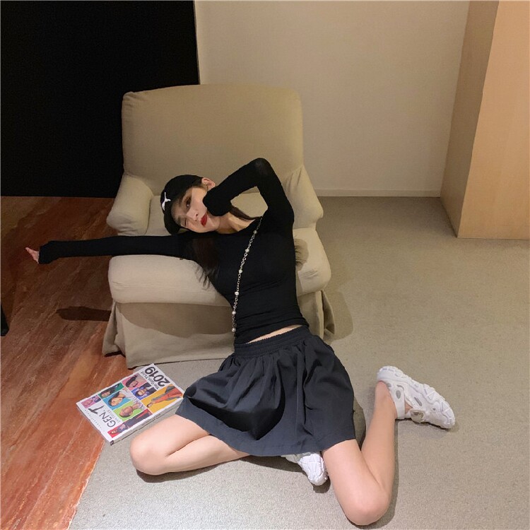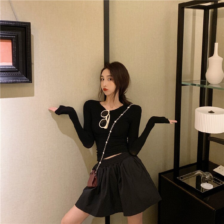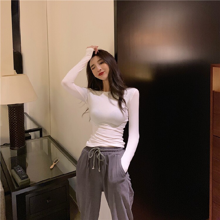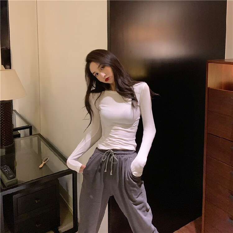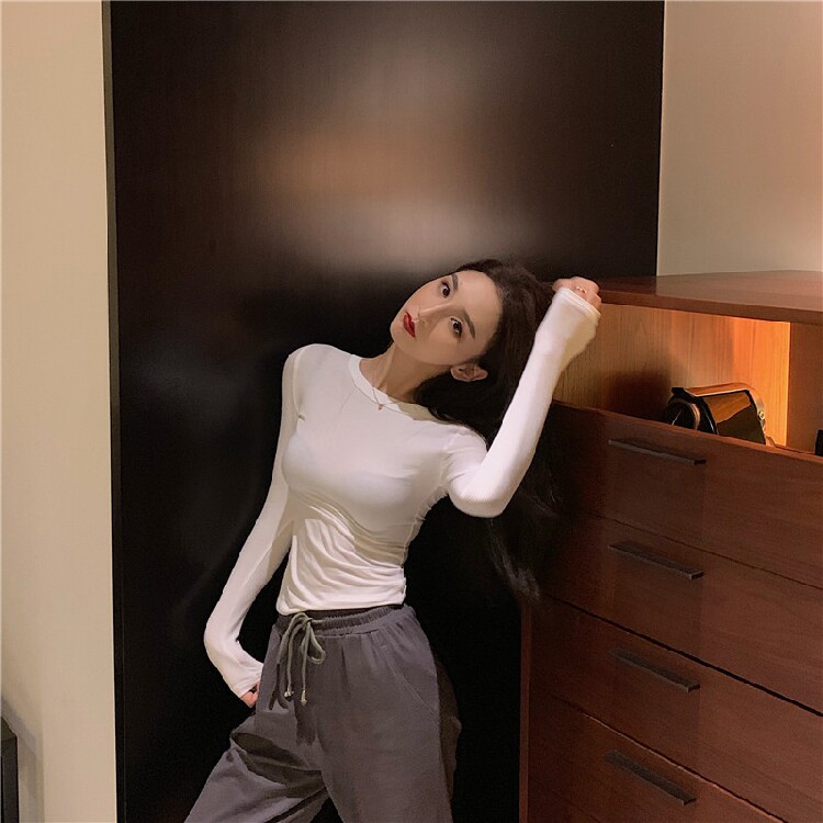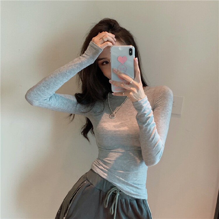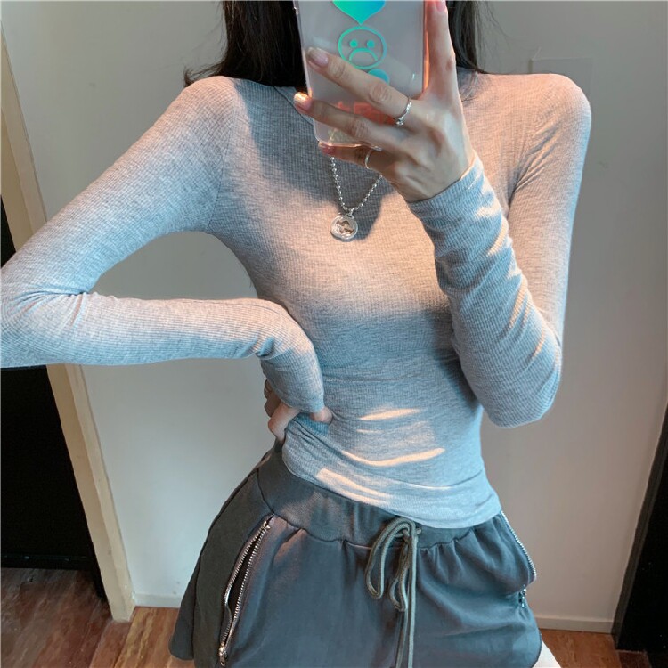 2025 Autumn and Winter Season Stylish Layered Slim-Fit Long-Sleeve T-Shirt for Women with Thin Fleece Lining, Warm and Flattering Base Layer