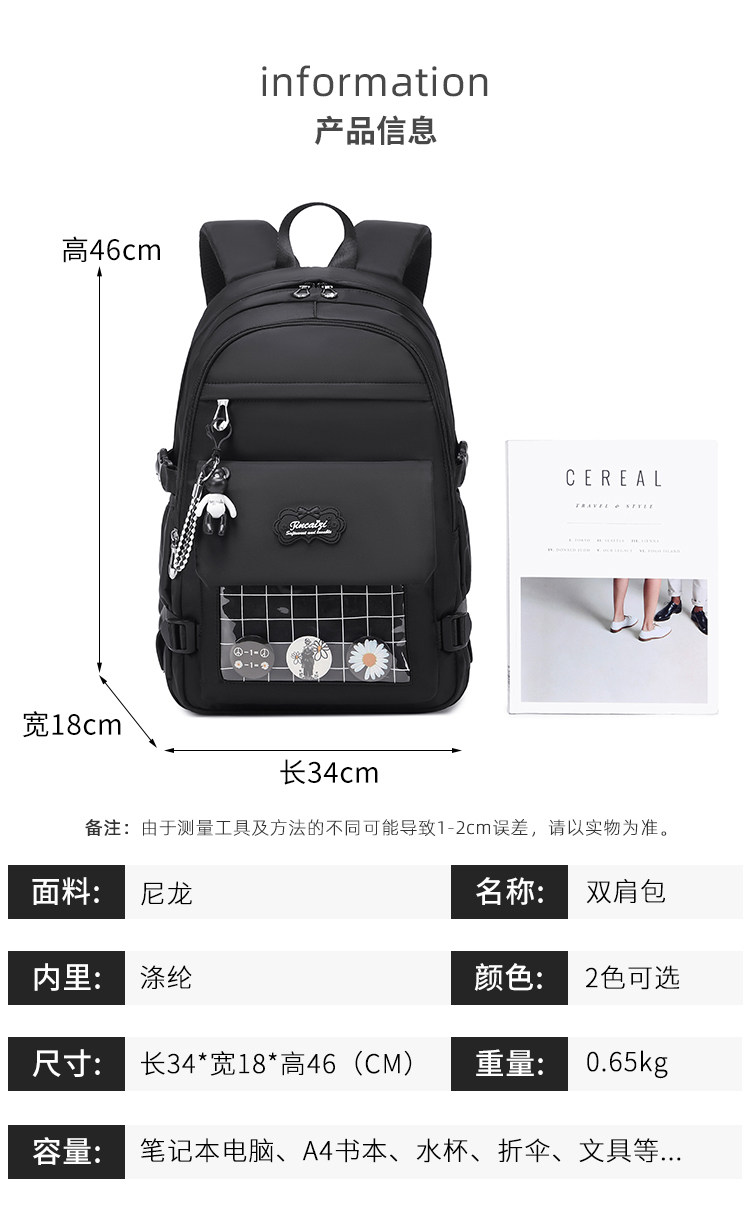 Schoolbags for Girls, Elementary School Students, Junior High School Students, Middle School Students, High School Students, College Students, Large Capacity, Ultra-Light, Spine-Protecting New Style Backpacks