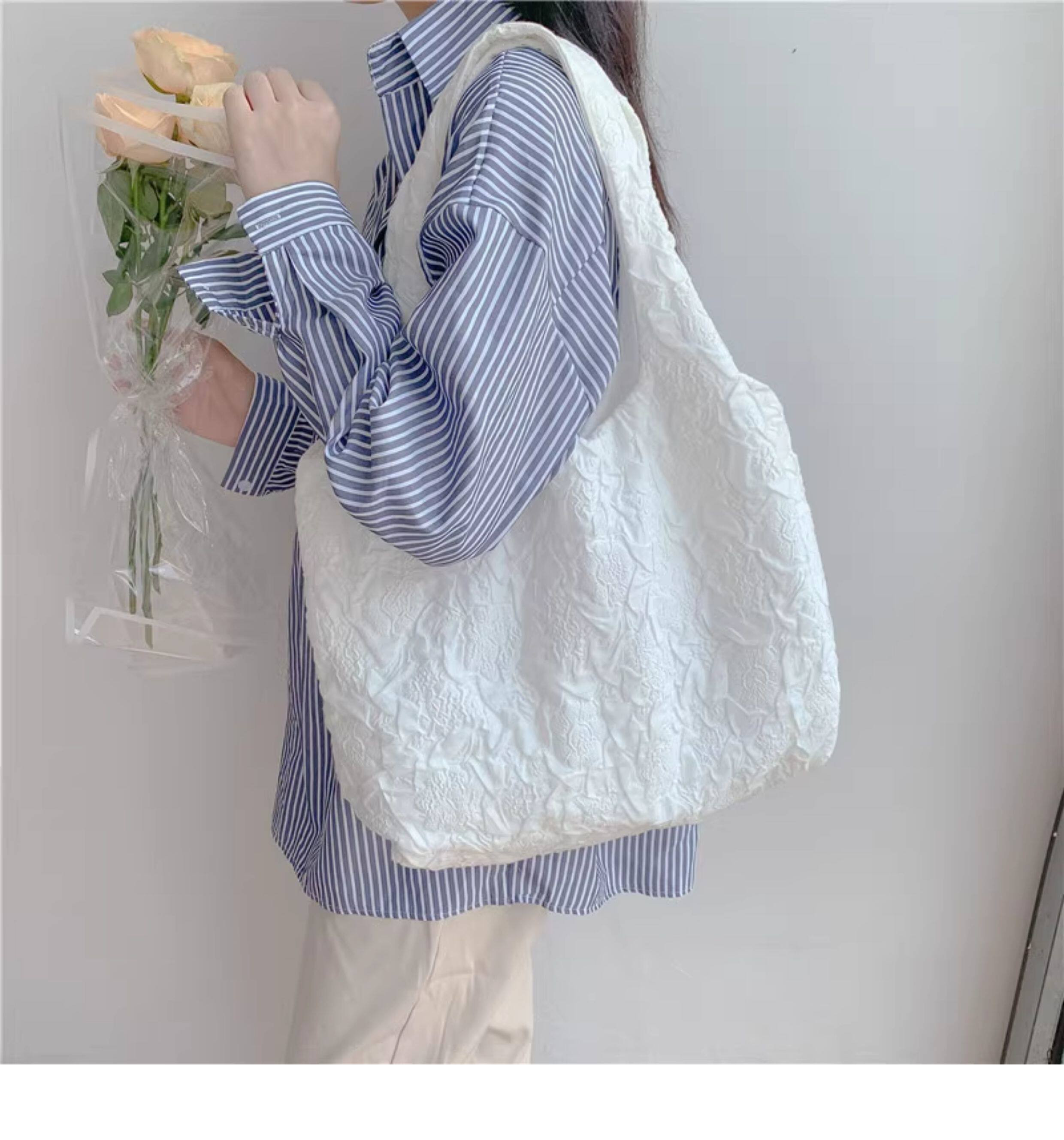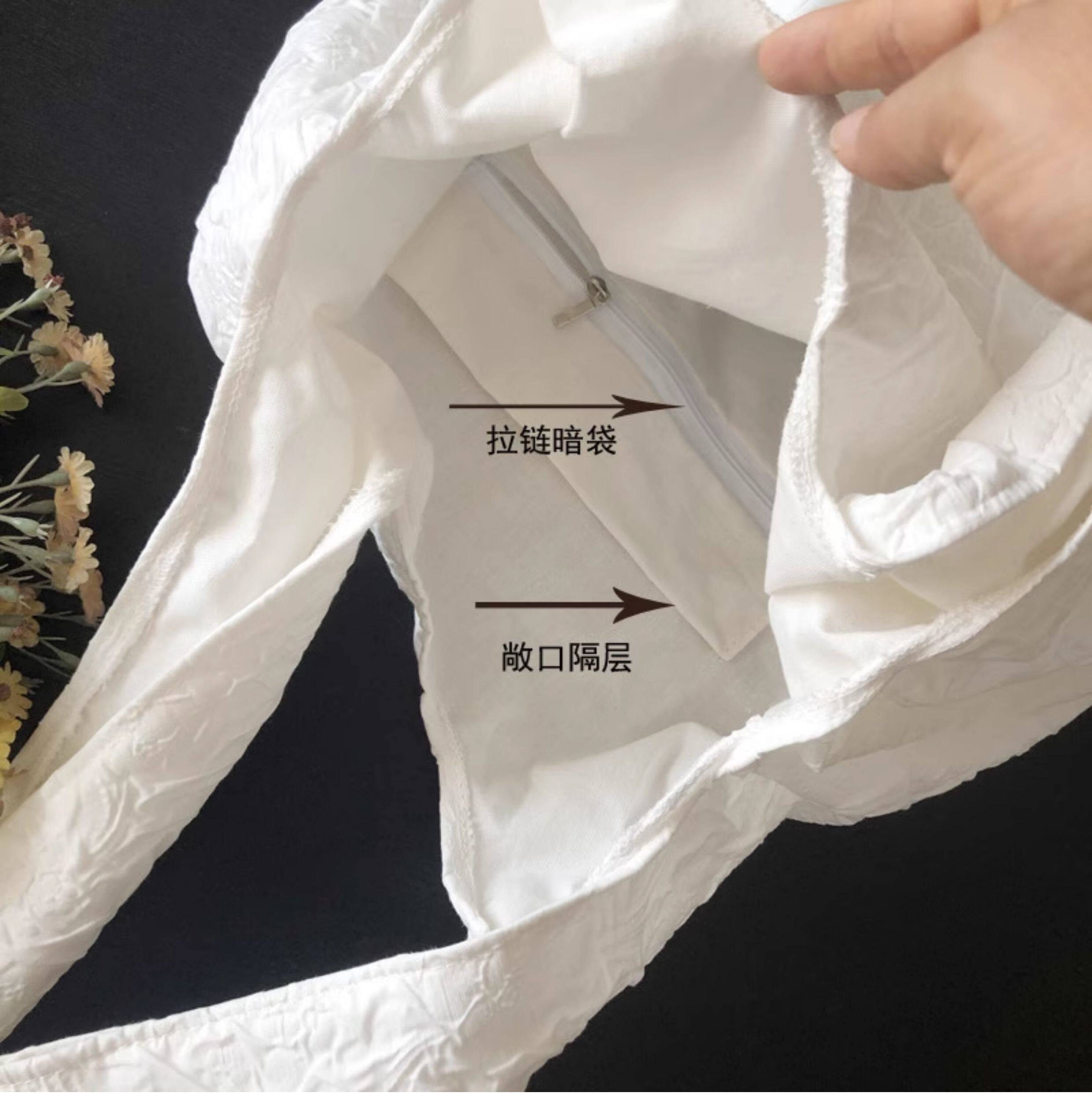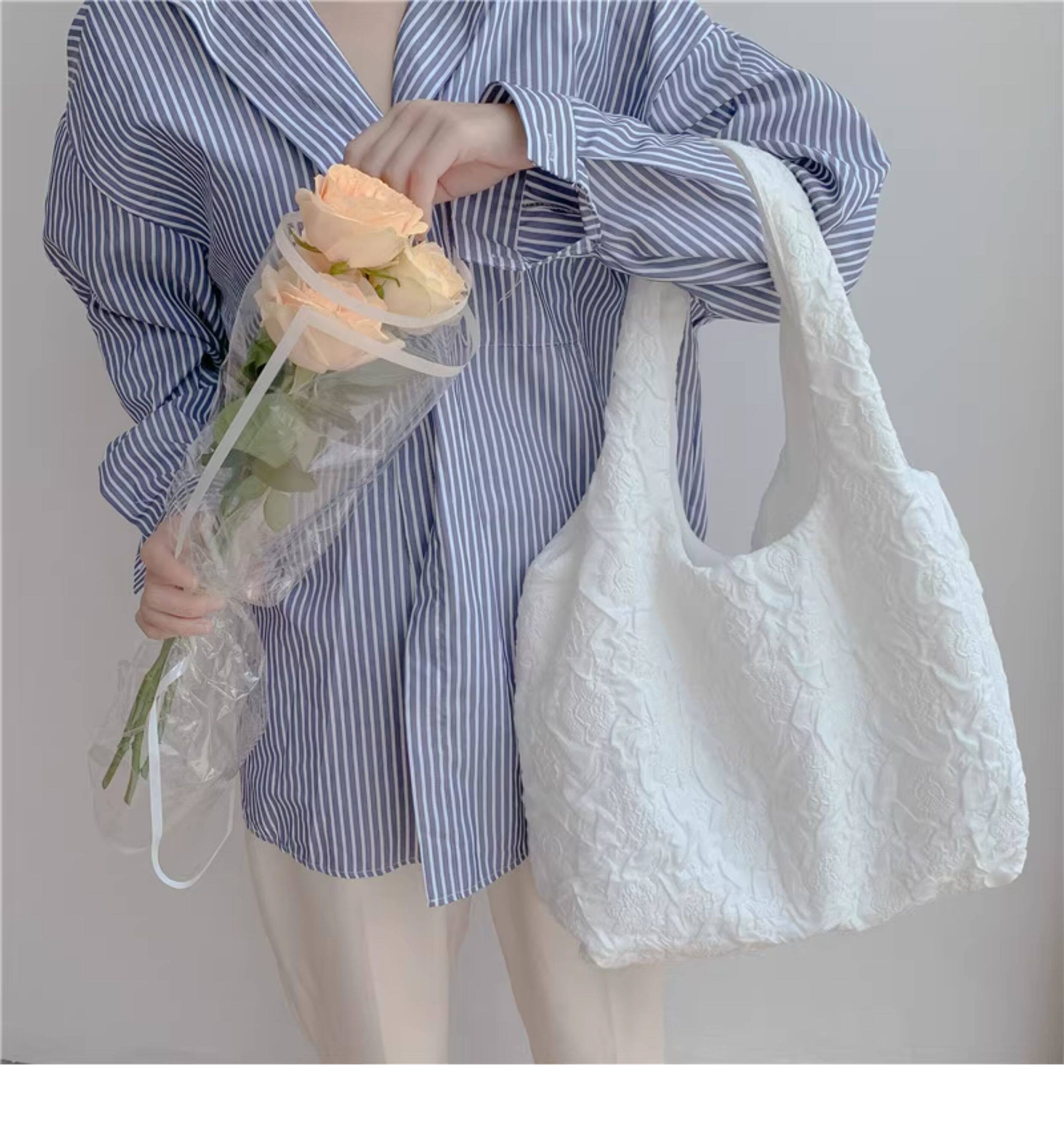 White Camellia Flower French-Style Vest Canvas Bag Embossed Fairy-Like Super Elegant Fresh Summer Shoulder Bag