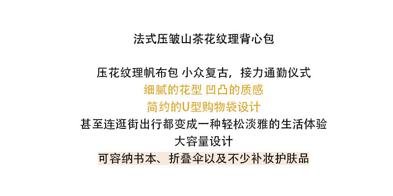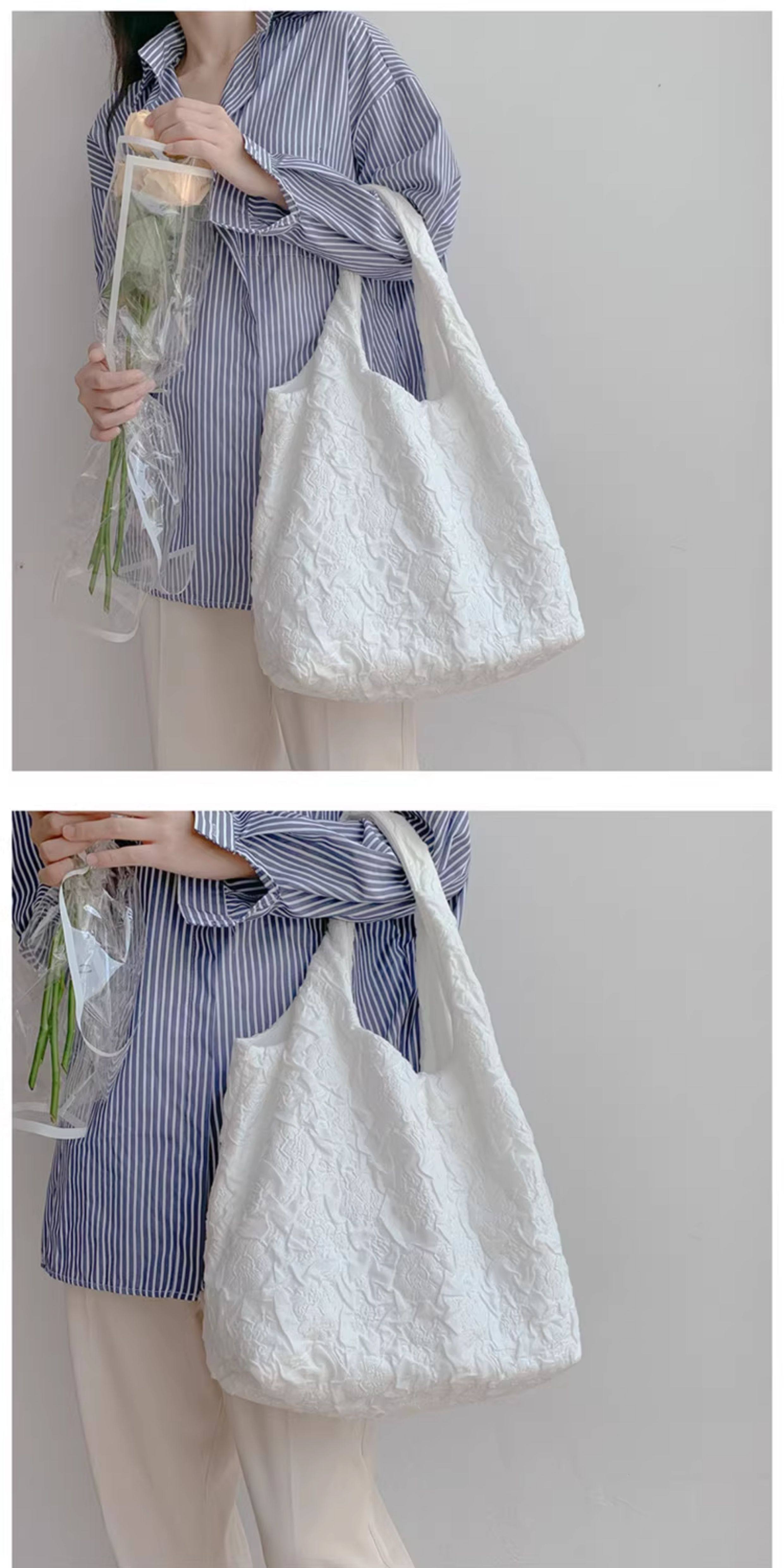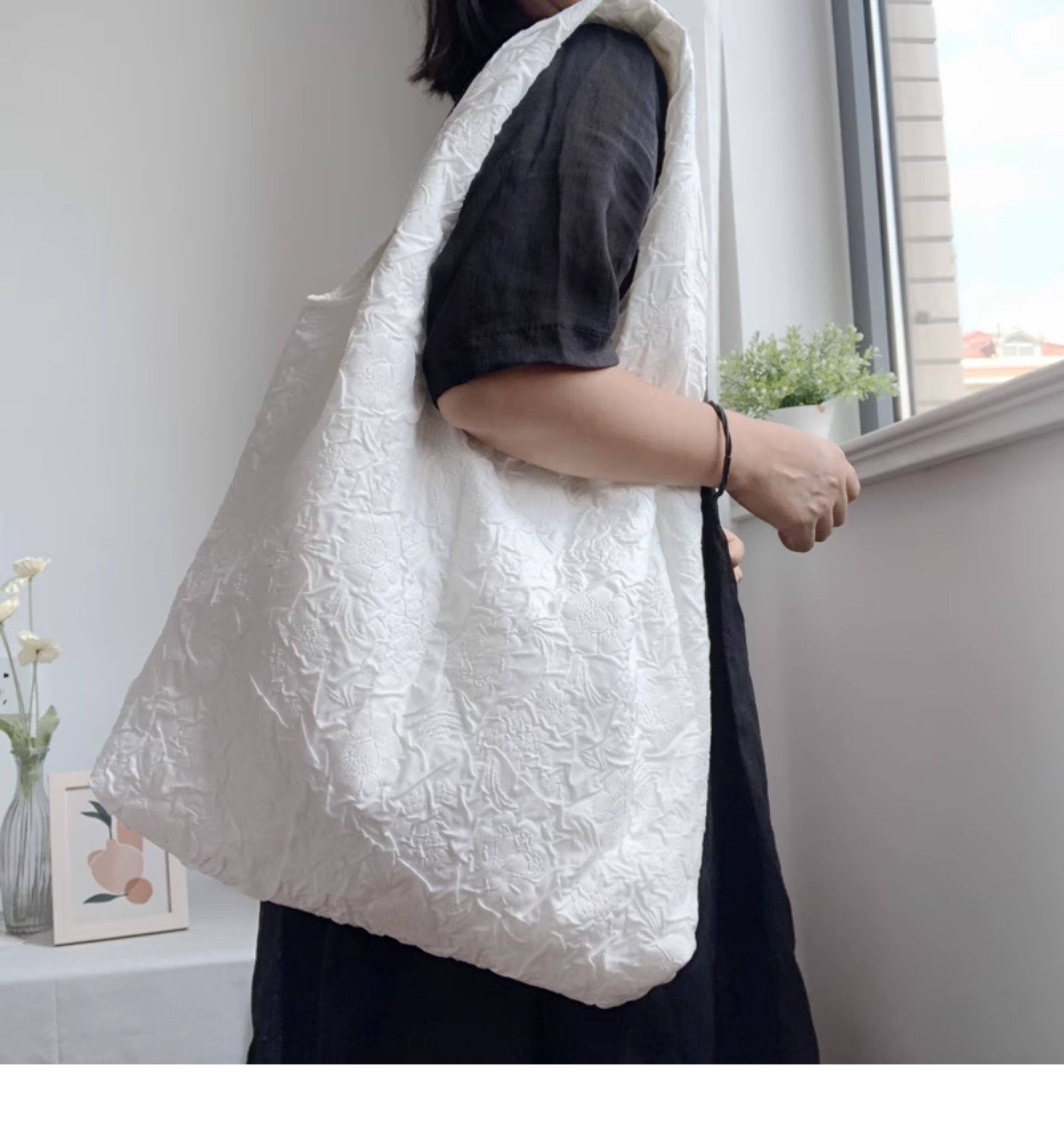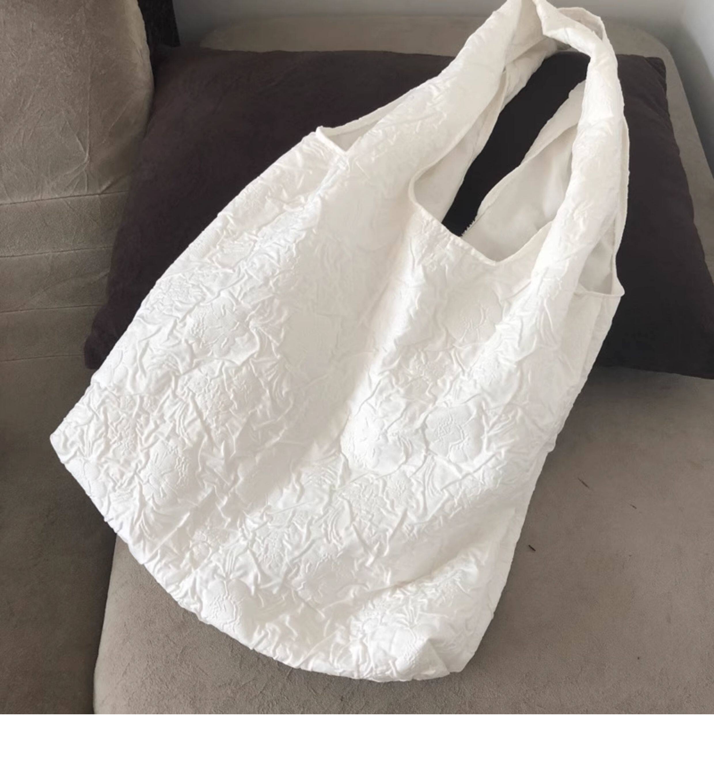 White Camellia Flower French-Style Vest Canvas Bag Embossed Fairy-Like Super Elegant Fresh Summer Shoulder Bag