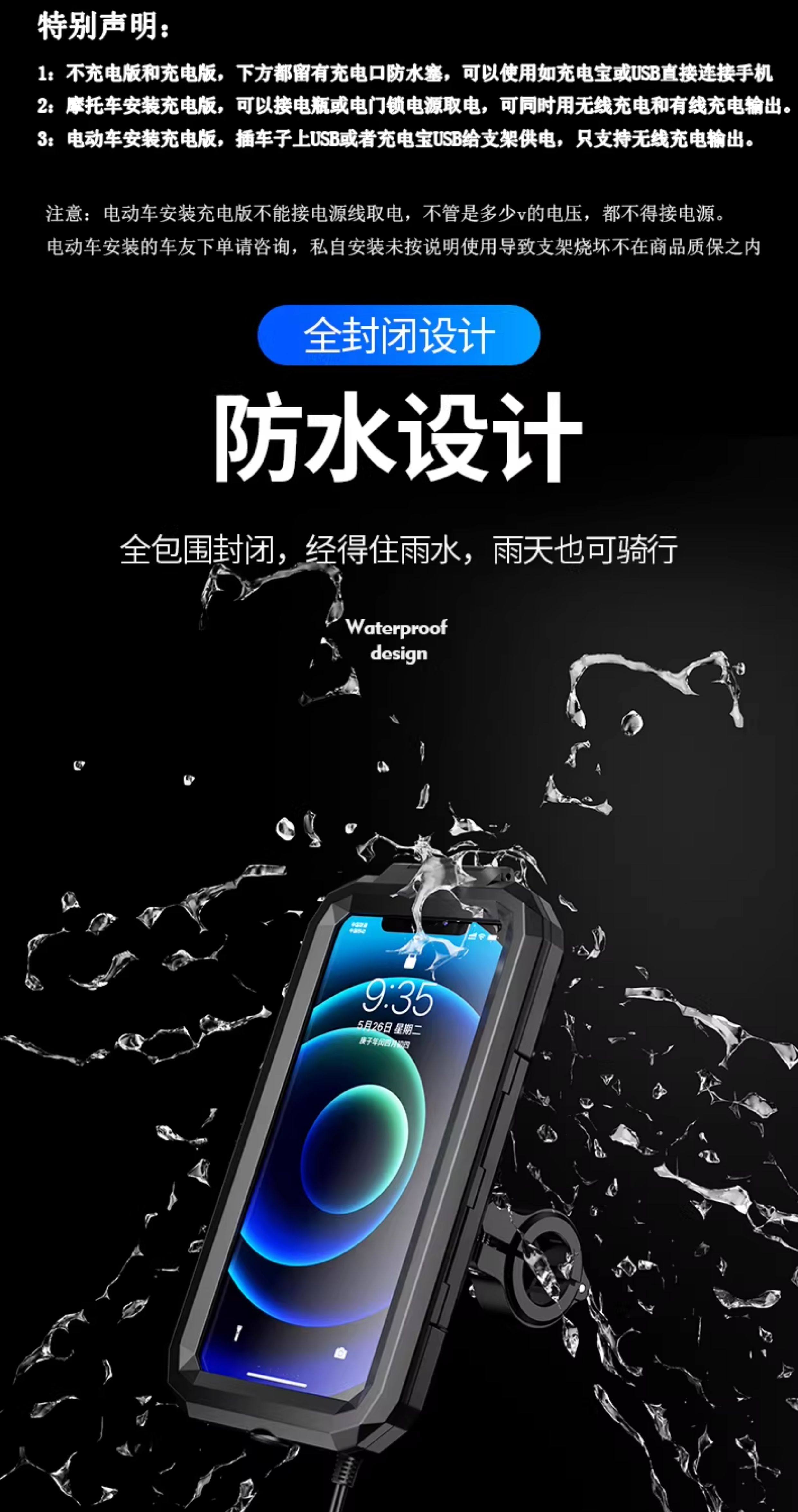 Kaiweige rainproof mobile phone holder motorcycle rechargeable takeaway navigation shockproof battery car electric car holder waterproof