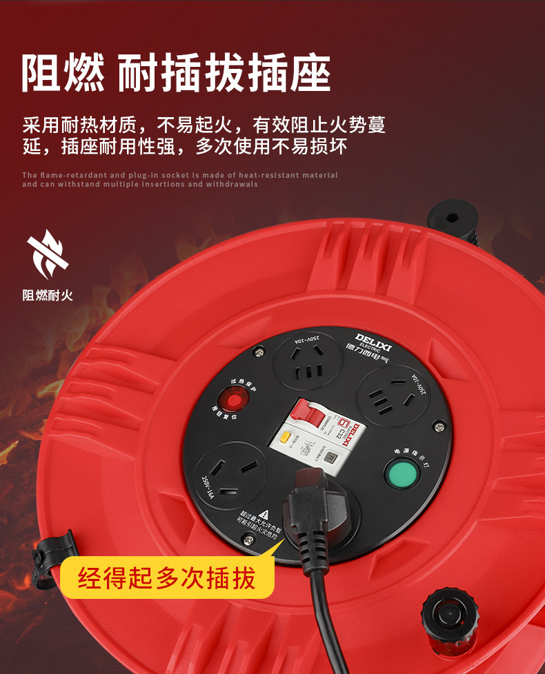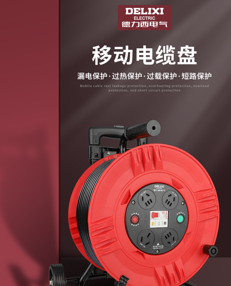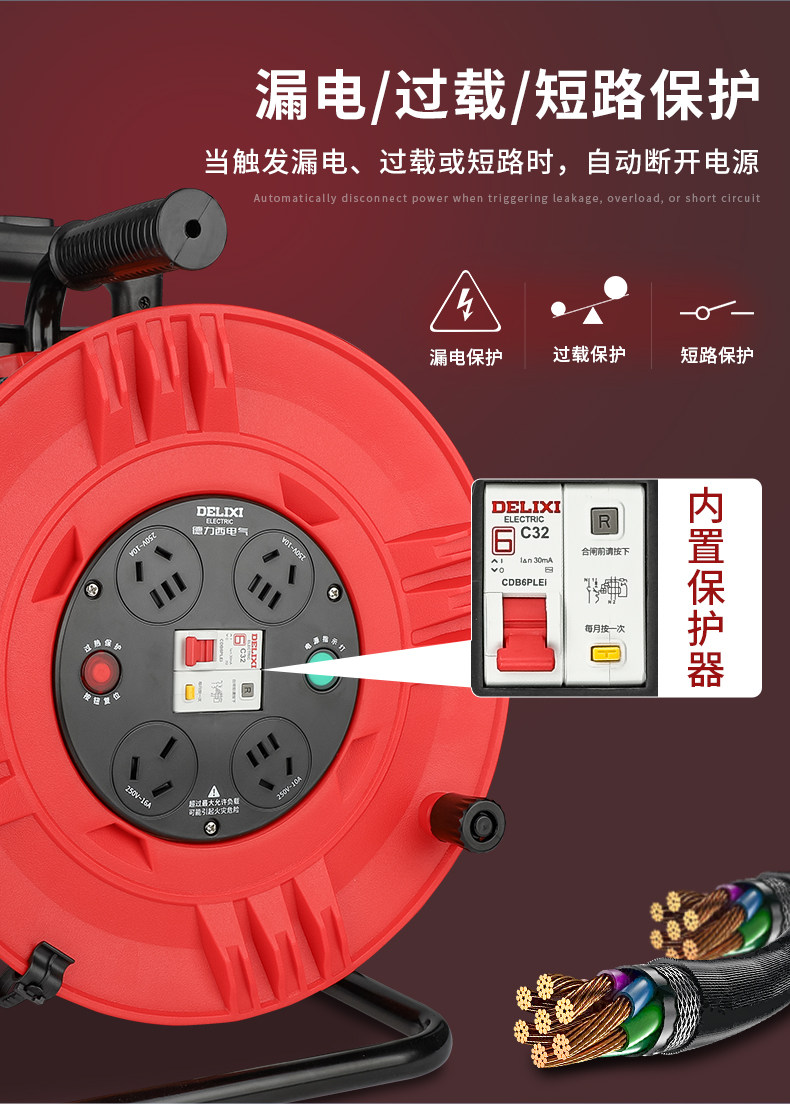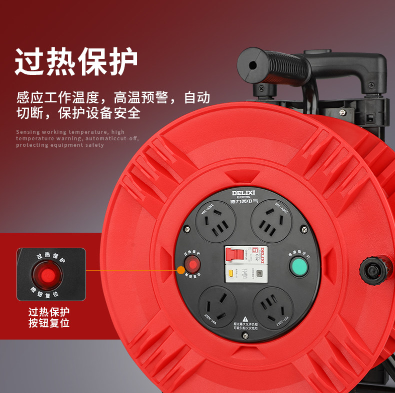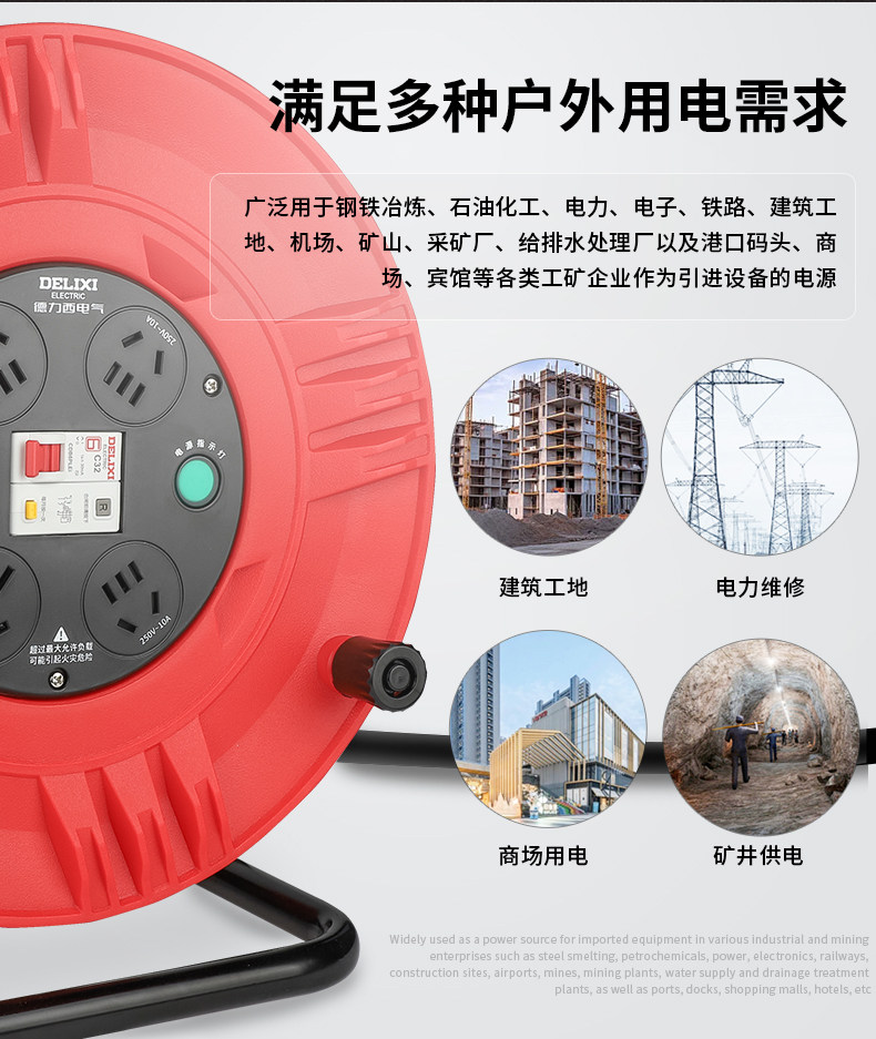 Delixi Mobile Cable 50m Socket Reel with Cable Spool, Engineering Extension Cord Reel, Empty with Cable 20m30m