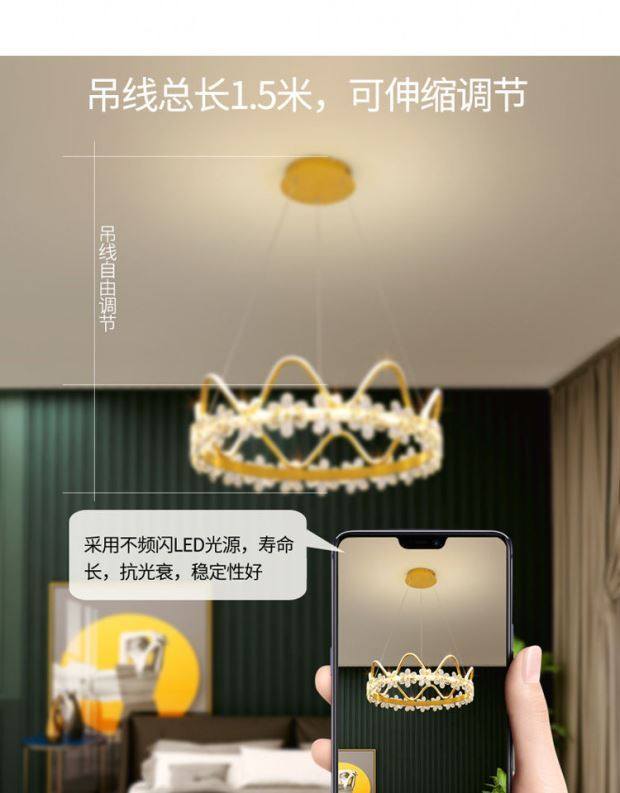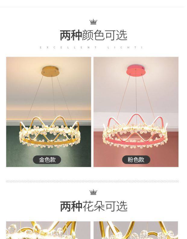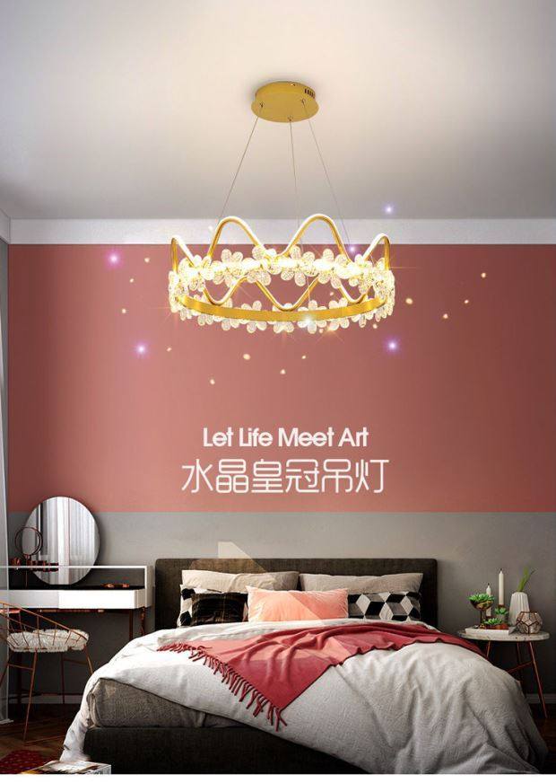 Light Luxury New Post-Modern Living Room Lighting Fixtures, Creative Girl Princess Children's Room Lamp, Crystal Crown Bedroom Chandelier