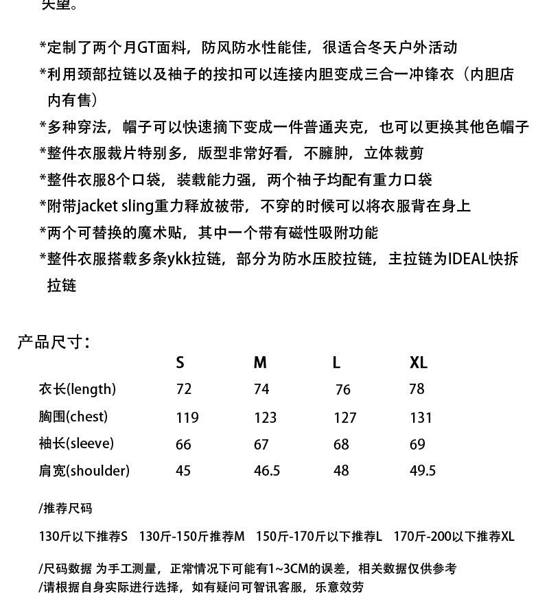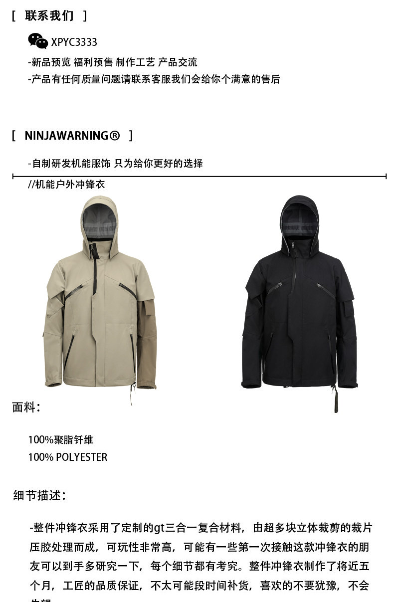 Njwn J1B-Gt 3-in-1 Functional Outdoor Ski Taped Windproof and Waterproof Hooded Jacket, Not Acronym