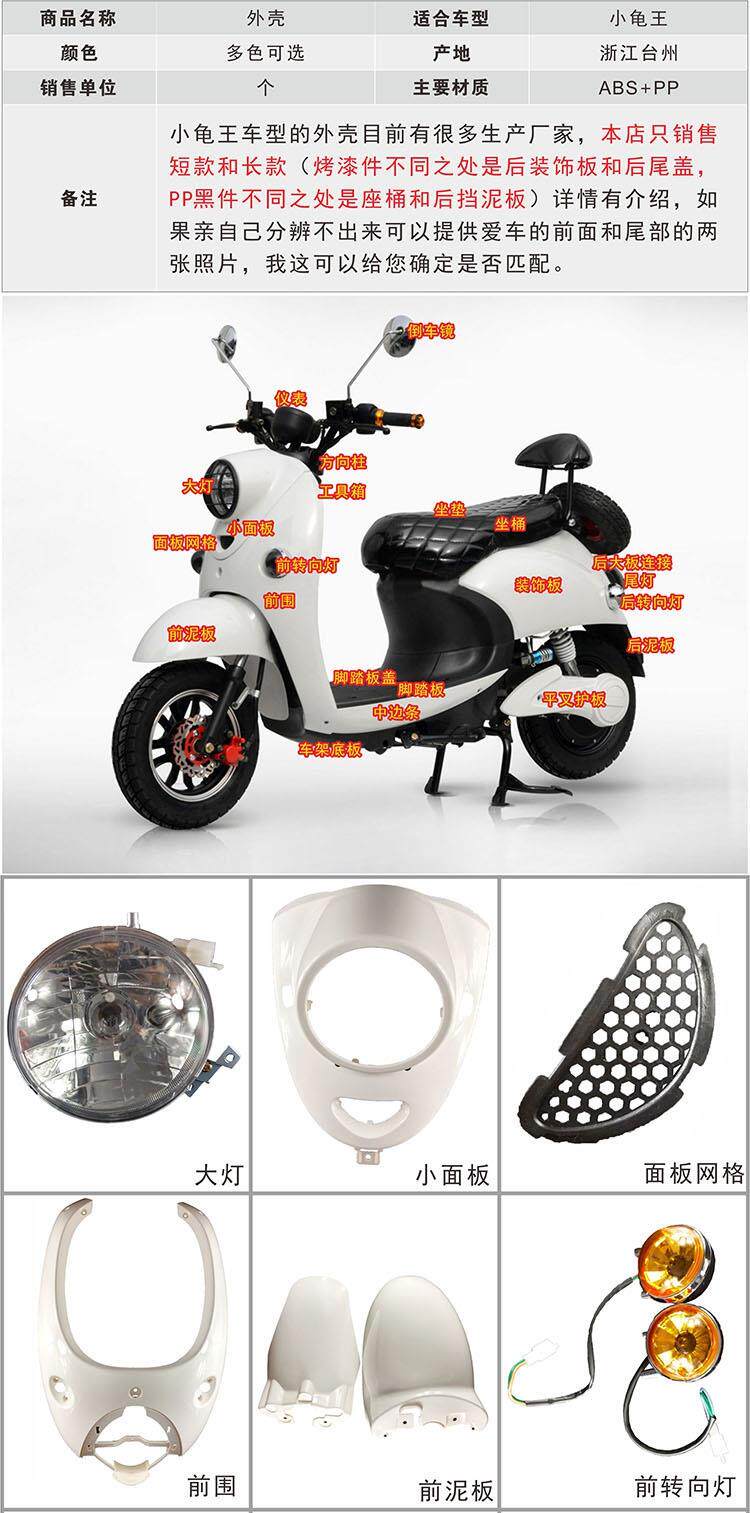 Color Classification Front,Panel,Front Fender,Middle Strip,Decorative Panels,Flat Fork Guard,10-Piece Paint Set,11-Piece Set of Painted Parts,Tool Box,Rear Mudguard (Short),Foot Pedal (Short),Foot Pedal (Extended),Frame Bottom Plate,Headlight,Tail Light,Sit on the Bucket,Seat Cushion,Back Hanger,Complete Vehicle Shell (Excluding Lights, Seat Bucket, Seat Cushion,Reflective Mirror,Flat Tail Box (with Bracket Backrest),Front Turn Signal,Rear Turn Signal