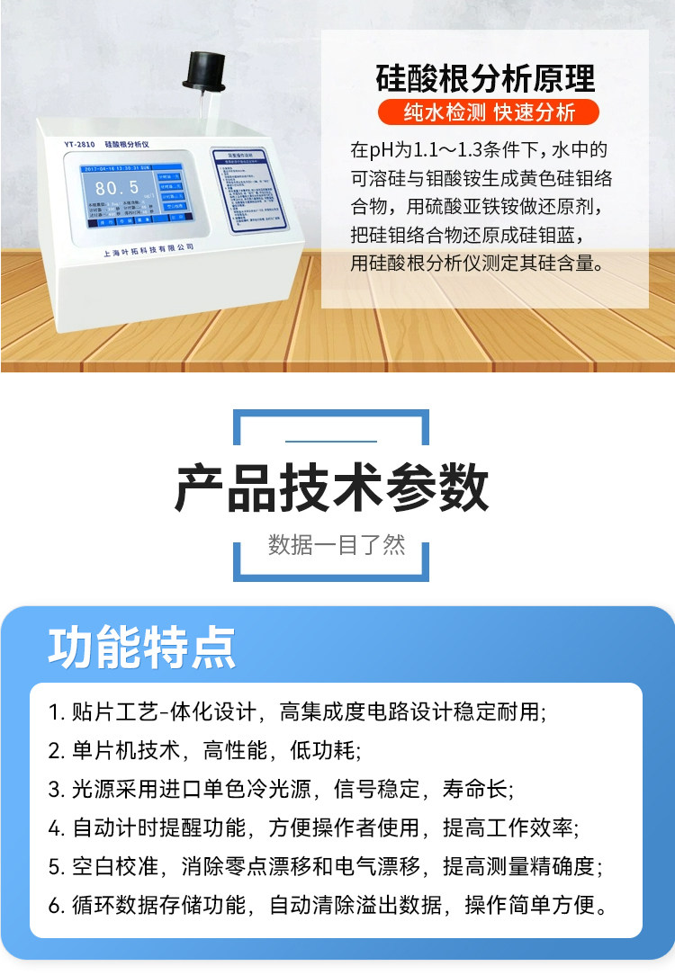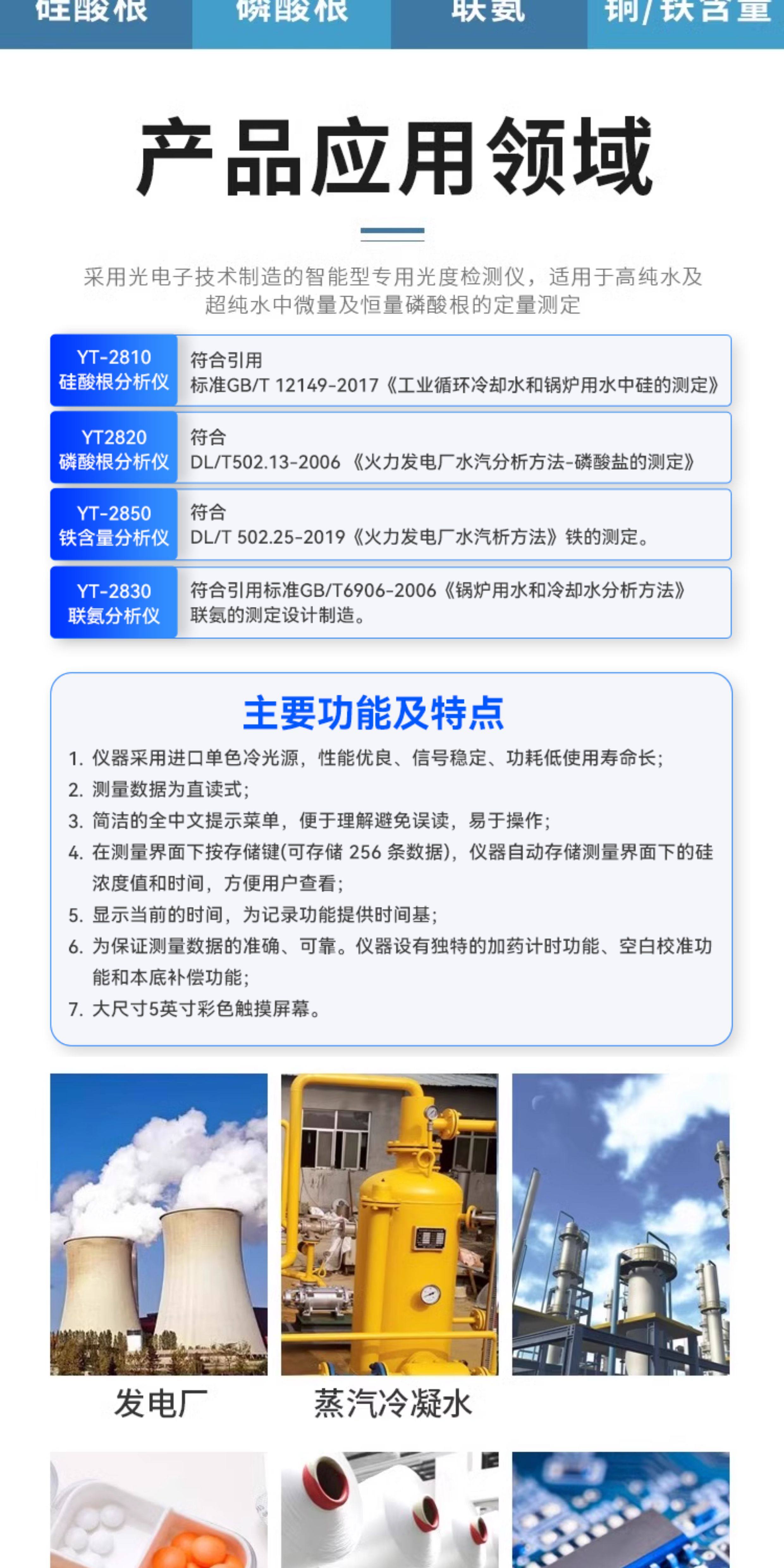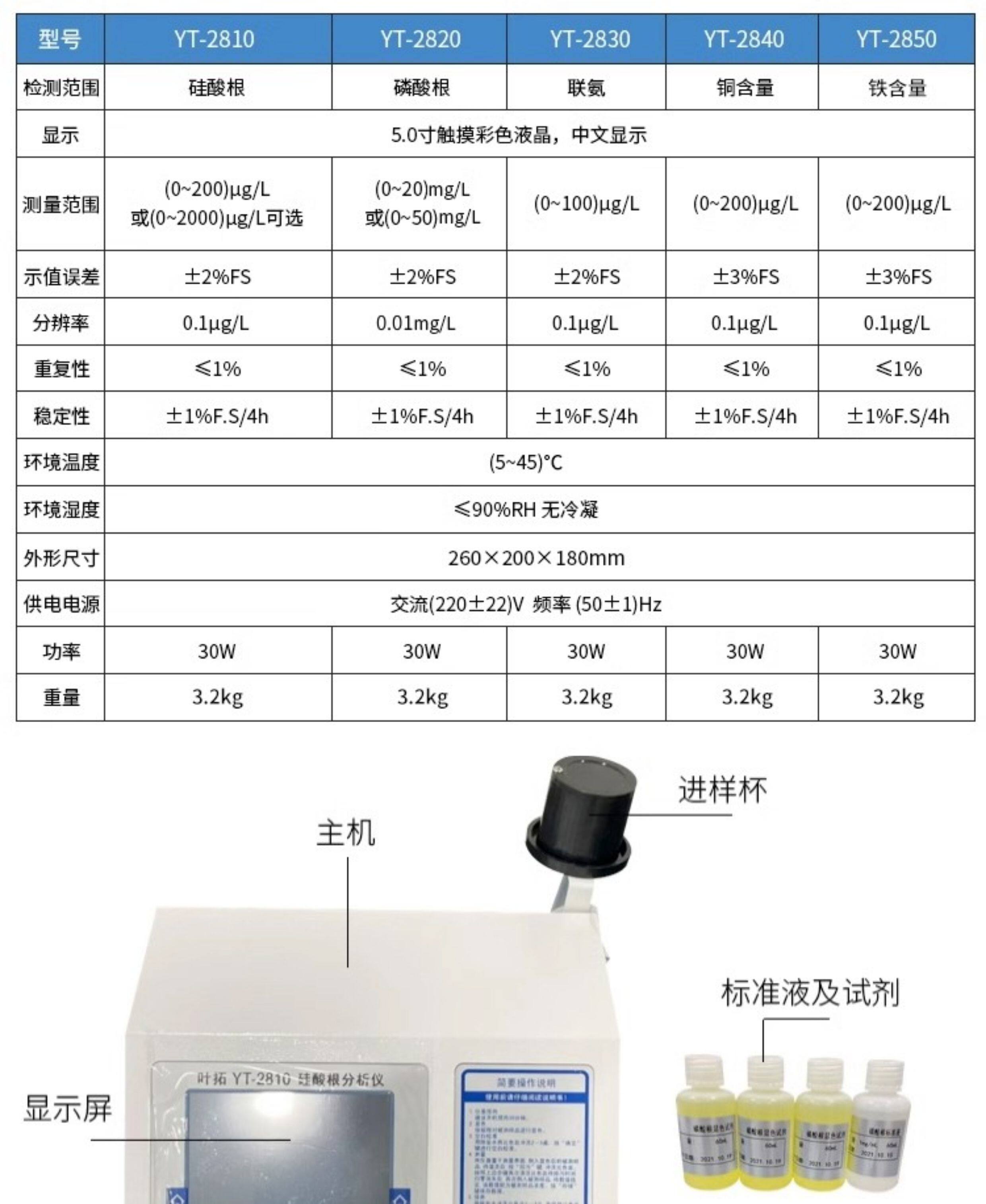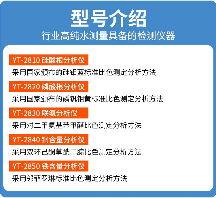 Color Classification Yt-2810 (Silicate),Yt-2830 (Hydrazine),Yt-2820 (Phosphate),Yt-2850 (Iron Content),Yt-2840 (Copper Content),Yt-2810 Silicate Analyzer
