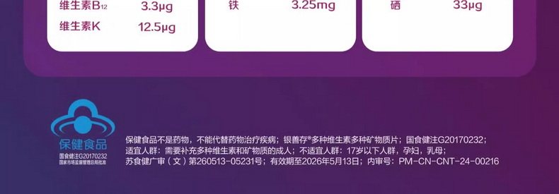 Yincancun middle-aged and elderly men's multi-vitamin genuine mineral supplement vitamin BVC multi-vitamin