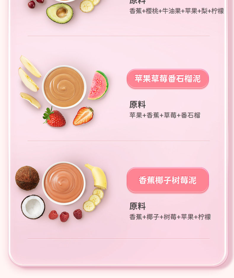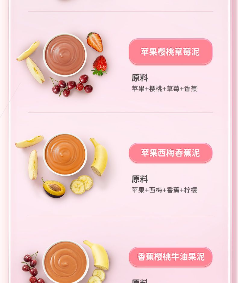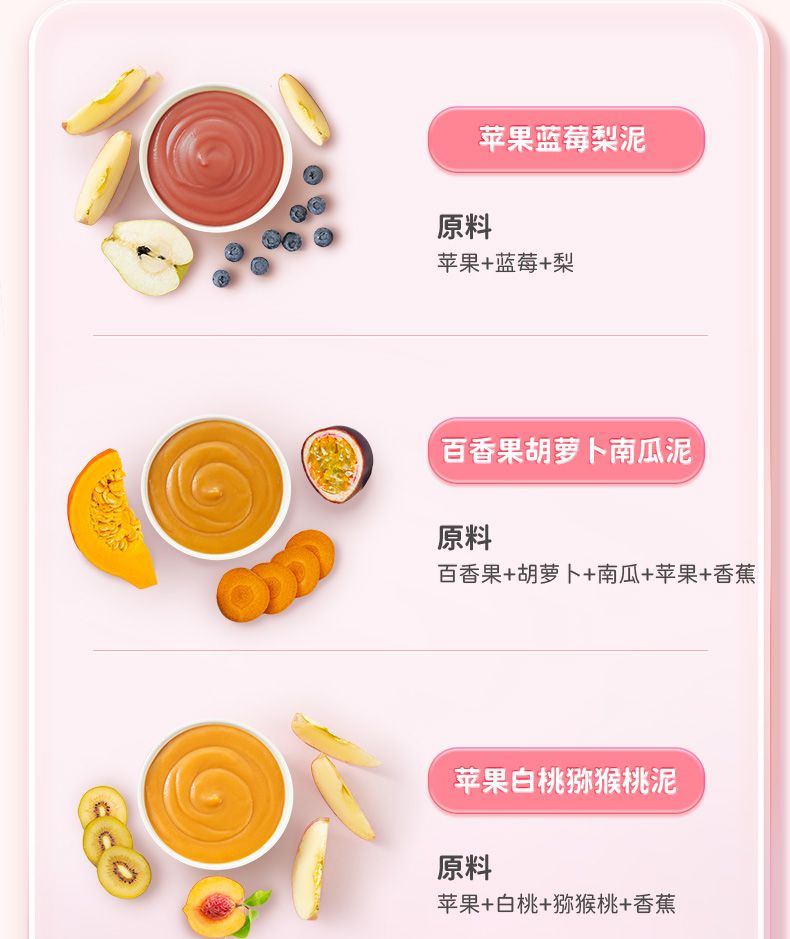 Taste Apple, Strawberry, and Guava Flavored Fruit Puree 80g X 1,Apple, Strawberry, and Guava Flavored Fruit Puree 80g X 2,Apple, Strawberry, and Guava Flavored Fruit Puree 80g X 3,Apple, Banana & Strawberry Fruit Puree 108g X 1,Apple, Banana & Strawberry Fruit Puree 108g X 2,Apple, Banana & Strawberry Fruit Puree 108g X 3,Apple, Yellow Peach, and Blackcurrant Fruit Puree 108g X 1,Apple, Yellow Peach, and Blackcurrant Fruit Puree 108g X 2,Apple, Yellow Peach, and Blackcurrant Fruit Puree 108g X 3,Apple, Prune & Blueberry Fruit Puree 108g X 1,Apple, Prune & Blueberry Fruit Puree 108g X 2,Apple, Prune & Blueberry Fruit Puree 108g X 3,Apple Cherry Raspberry Kiwi 108Gx1,Apple Cherry Raspberry Kiwi 108Gx2,Apple Cherry Raspberry Kiwi 108Gx3,Pulp Apple Banana Avocado Kiwi 108Gx1,Pulp Apple Banana Avocado Kiwi 108Gx2,Pulp Apple Banana Avocado Kiwi 108Gx3,One Bag Each of 6 Flavors of Fruit Puree (Can Be Noted)