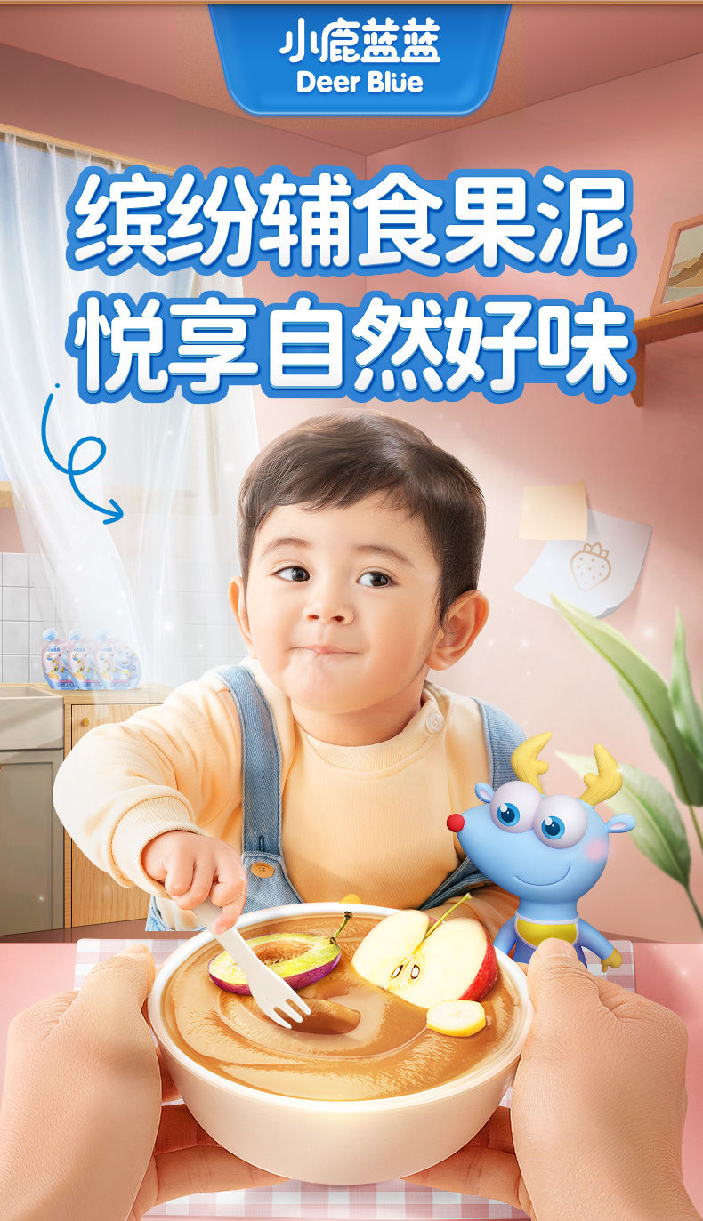 [Little Deer Lanlan_Fun Baby Fruit Puree X3]Children's Fruit 6-Month-Old Baby Food Complementary Food Prune Puree