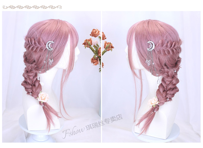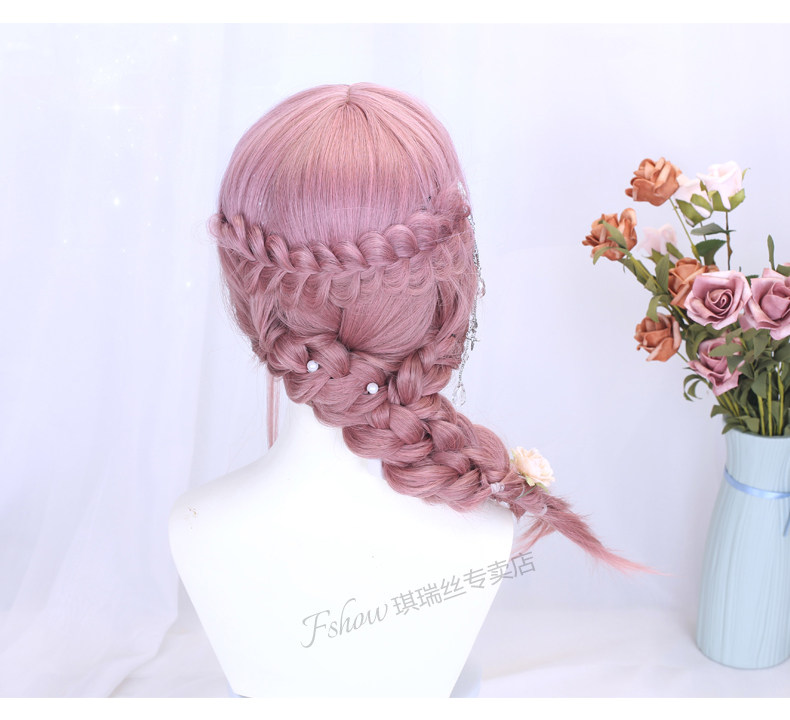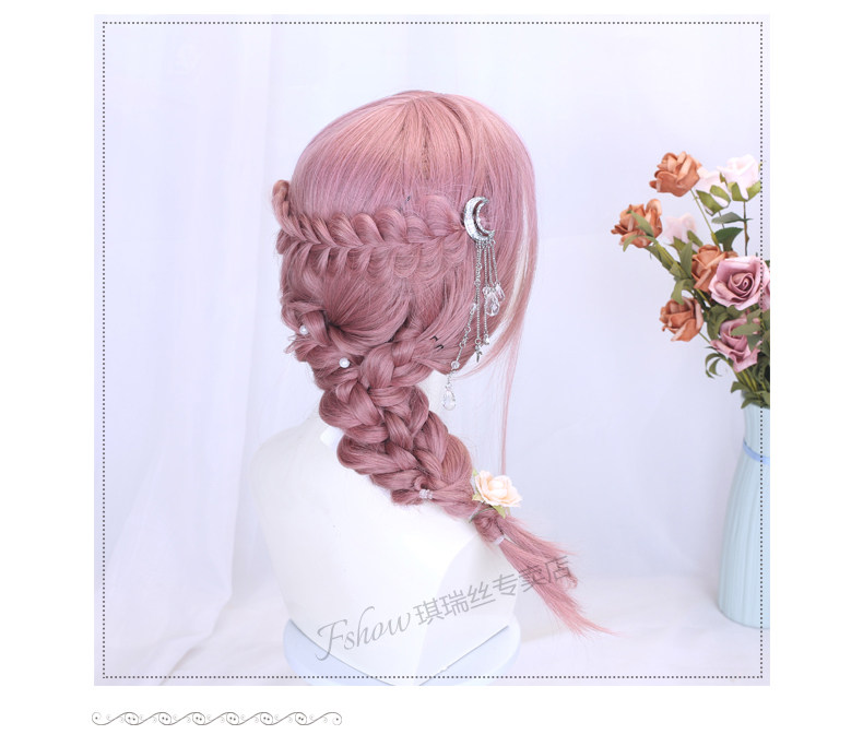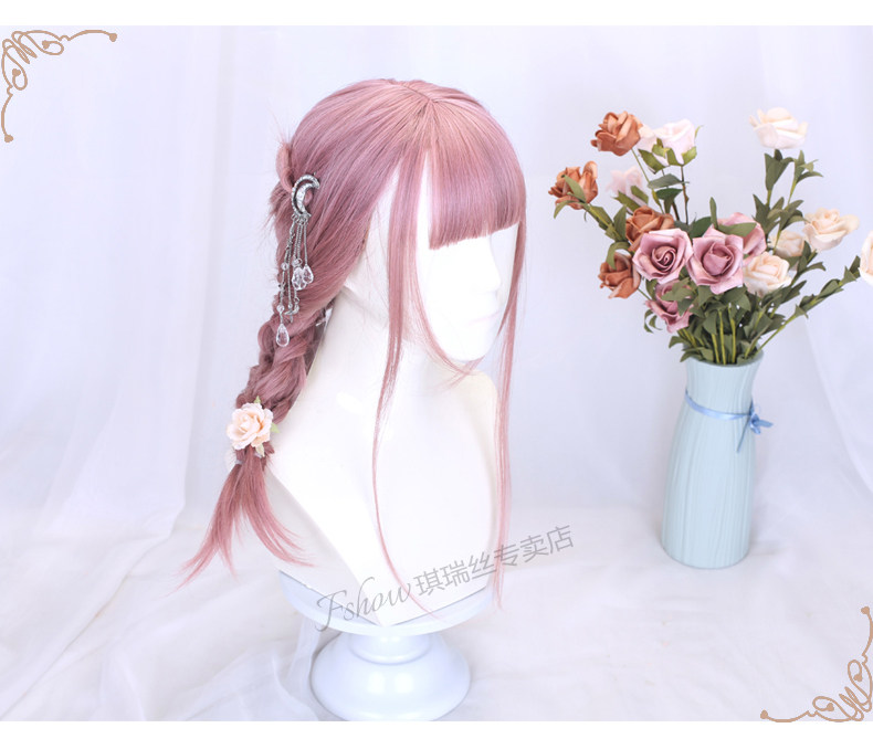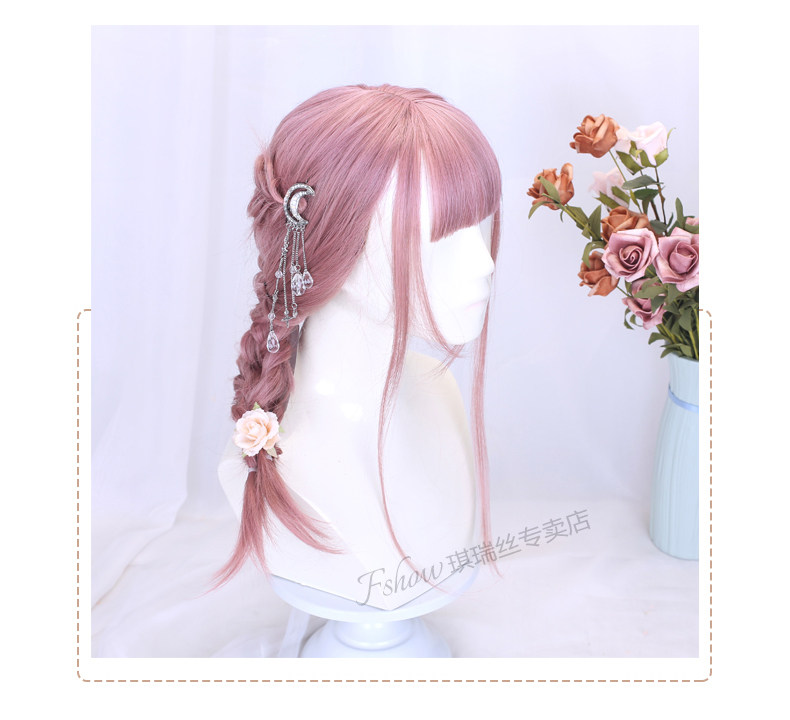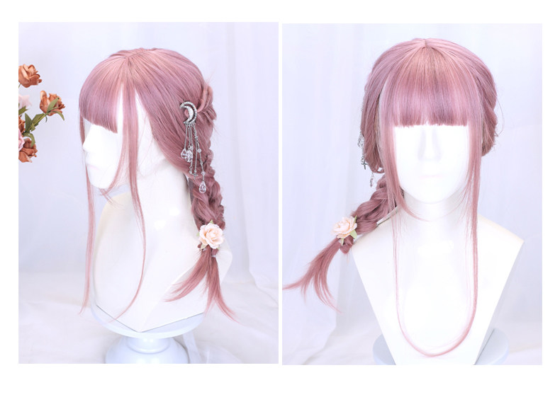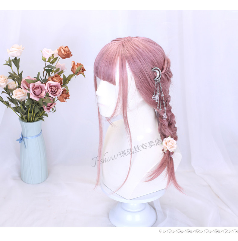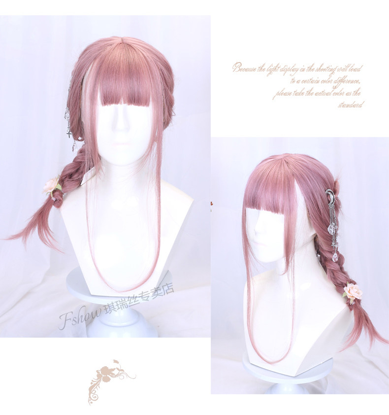 Lolita Wig for Women, Medium-Length Hair Style, Lolita Braided Hair, Internet Celebrity Hairstyle, Student Face-Shaping Pink Short Hair Full Wig