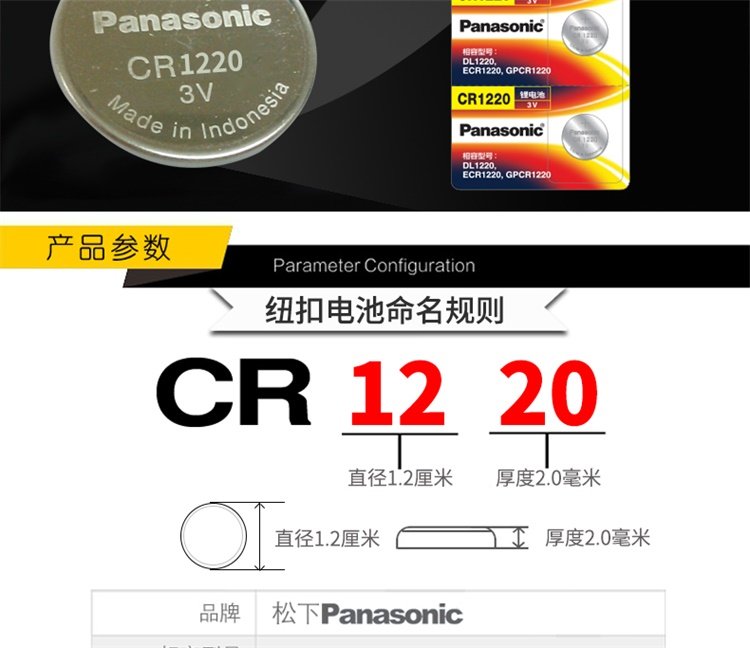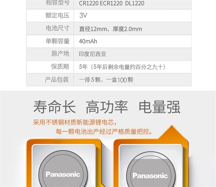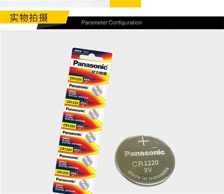 Panasonic Original Imported Cr1220 Button Lithium Battery for Car Remote Control, Dongfeng Yueda Kia, Qianlima, Accent, Casio Watch, Digital Caliper, Hikvision Motherboard, Hard Drive, 5 Pieces