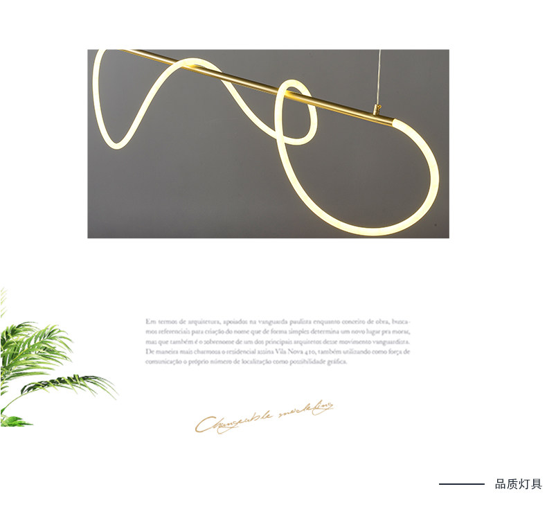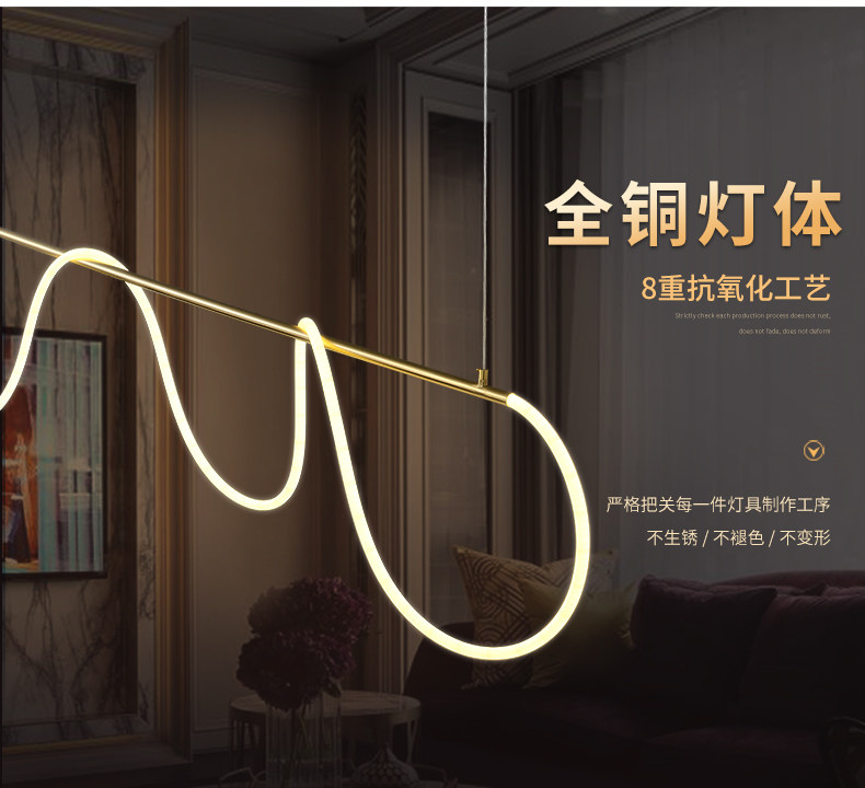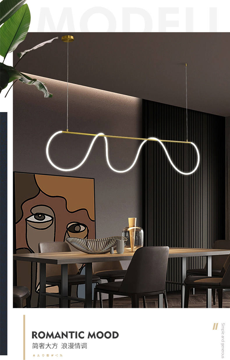 Postmodern Art DIY Long Strip Pendant Light Nordic Light Luxury Minimalist Bar Counter Restaurant Creative Personality Flexible Tube Dining Table Lamp