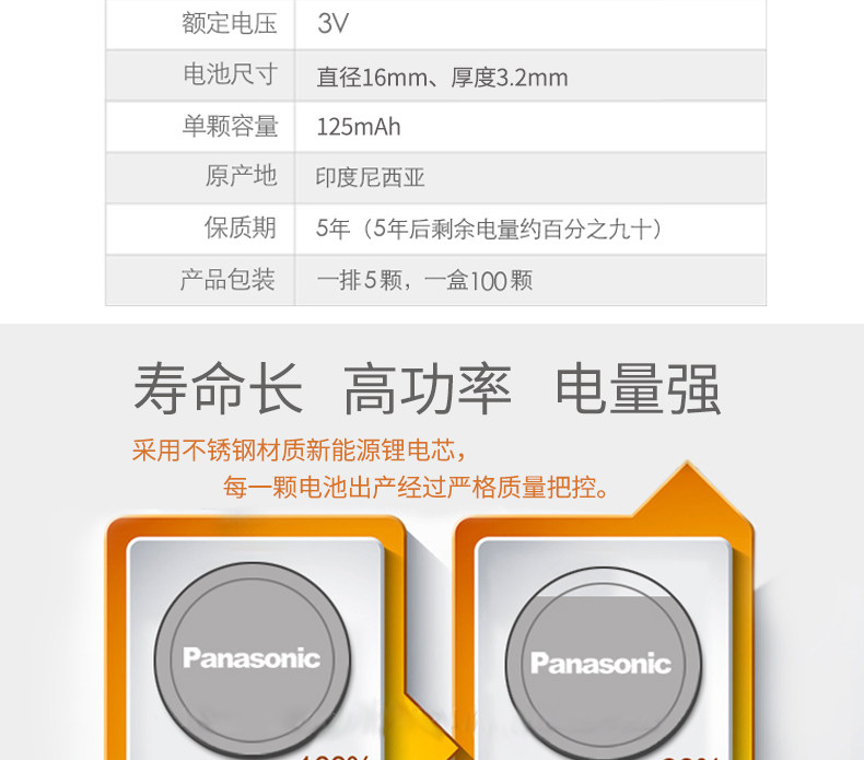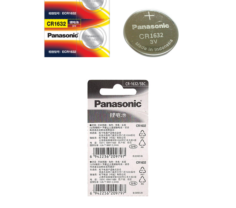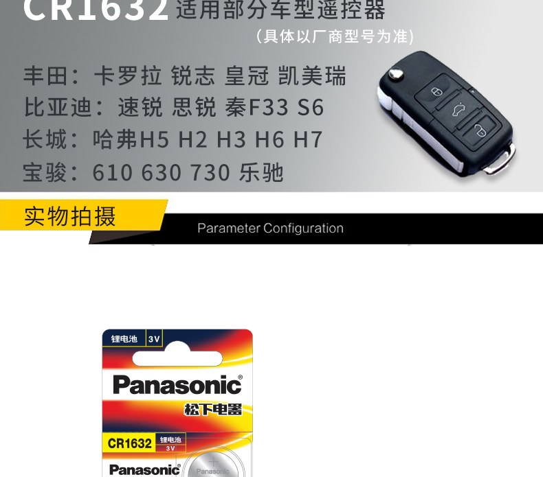 Panasonic Original Imported Cr1632 Button Lithium Battery 3V for Byd, Toyota Corolla, Crown, Reiz, Zhijie, Grand 7, S5, Baojun, Great Wall, Haval, Etc. Car Key Remote Control, 2 Pieces