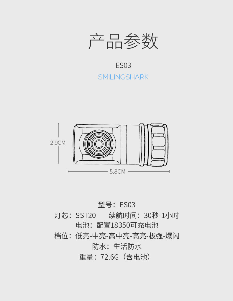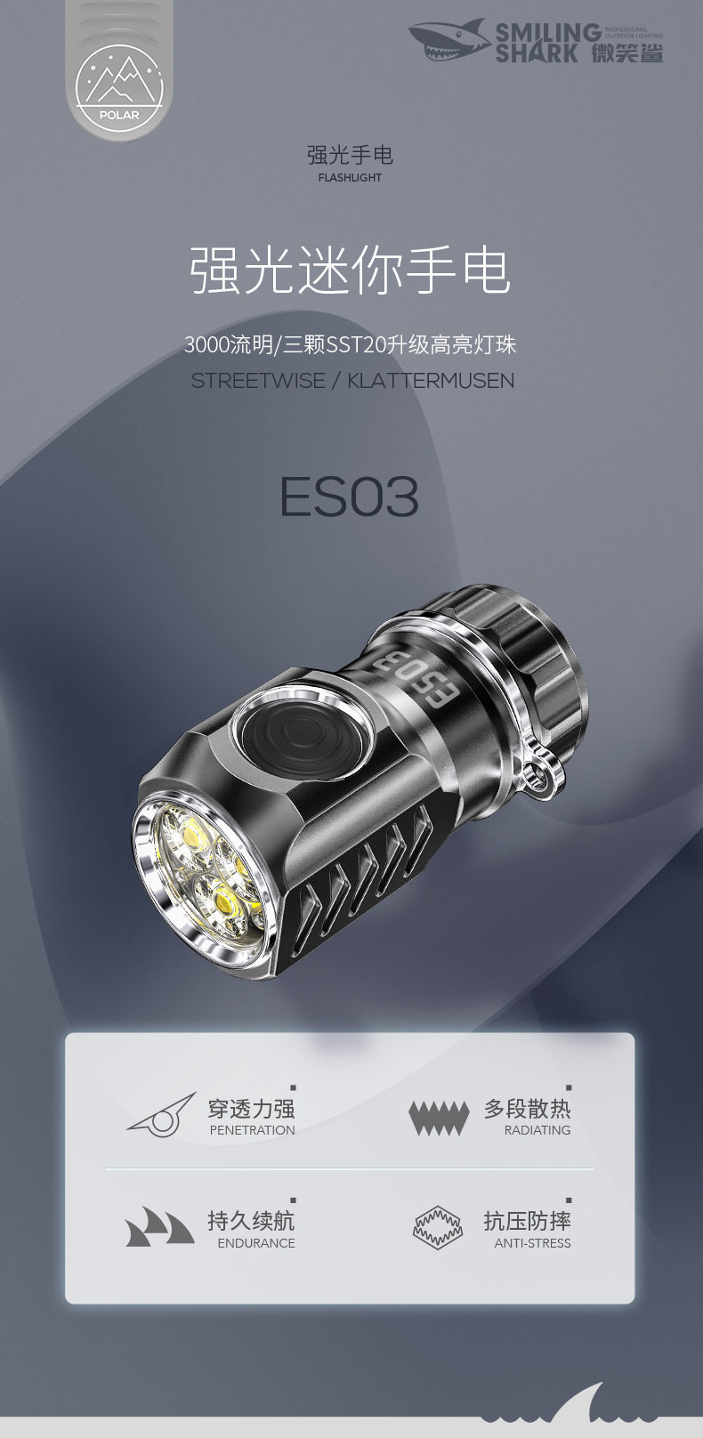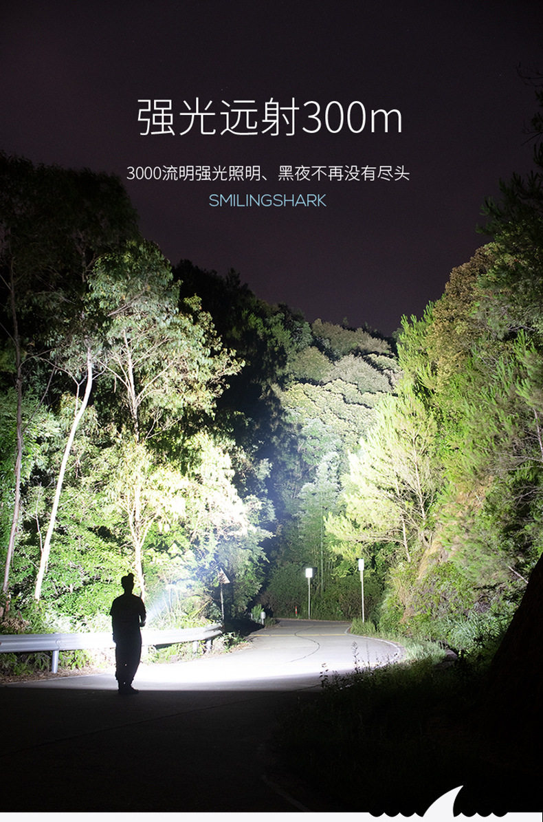 Smiling Shark Mini High-Light 3000Lm Flashlight High-Power Small Flashlight Aluminum Alloy Outdoor Lighting Portable