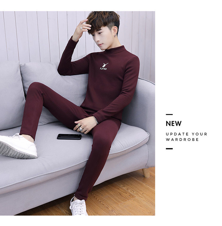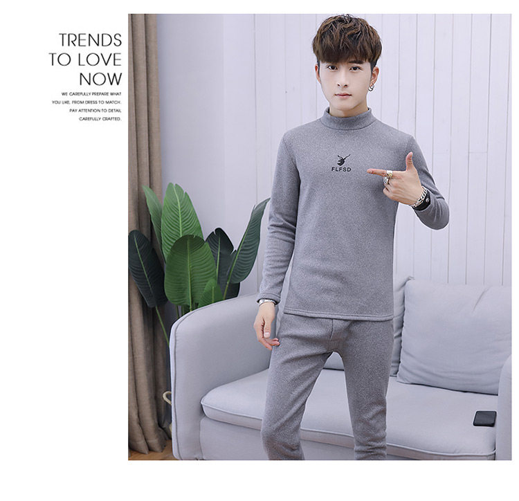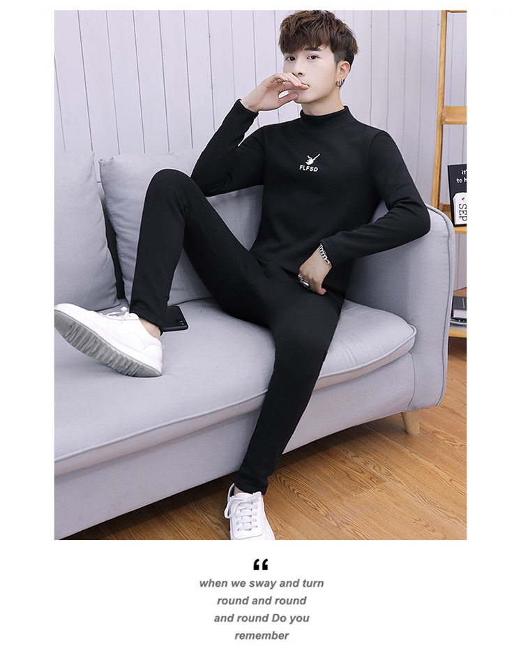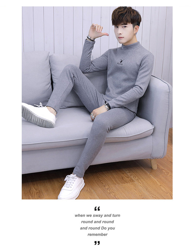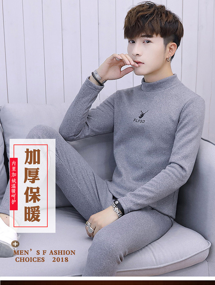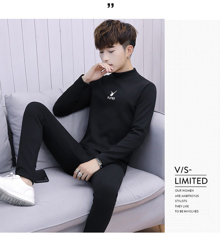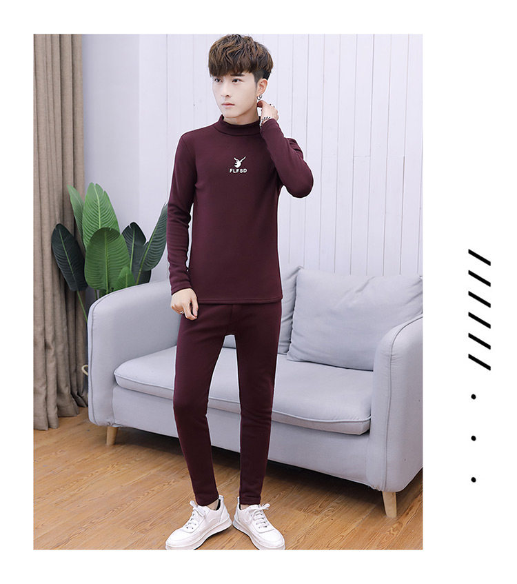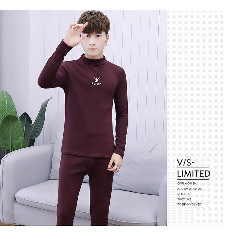 Woodpecker men's new winter velvet thickened autumn clothes and autumn pants half turtleneck youth thermal underwear set