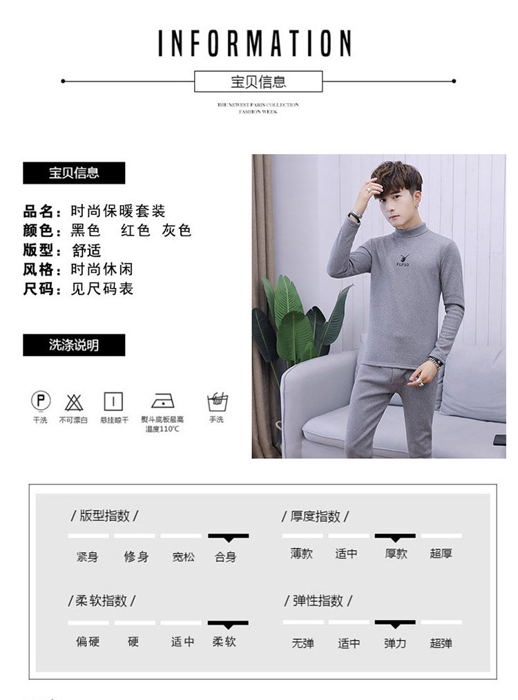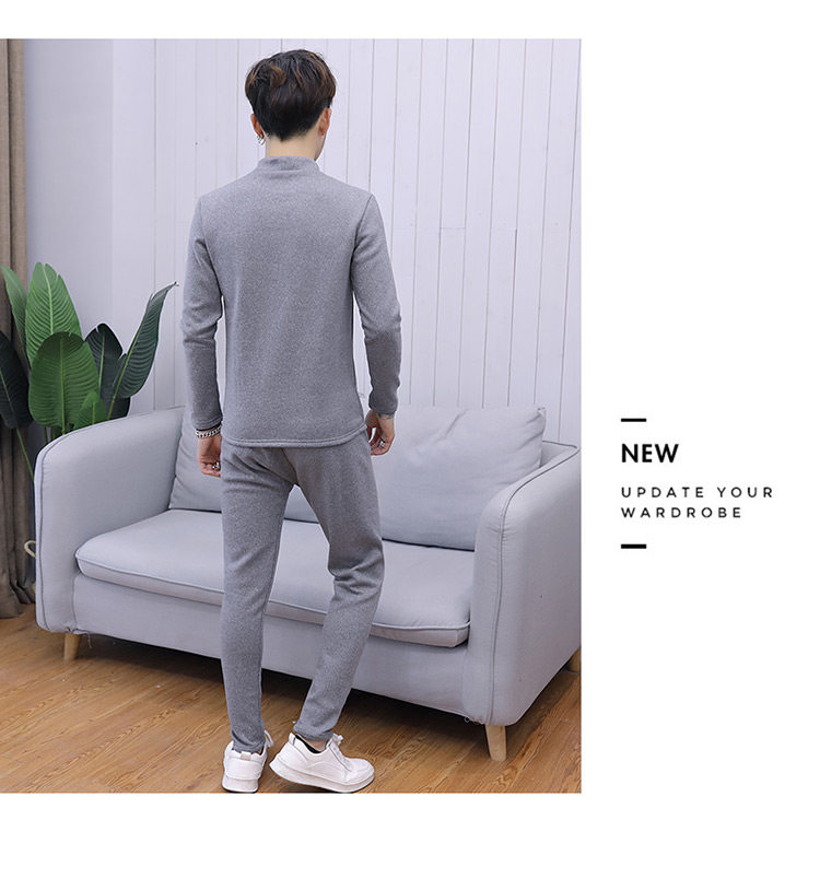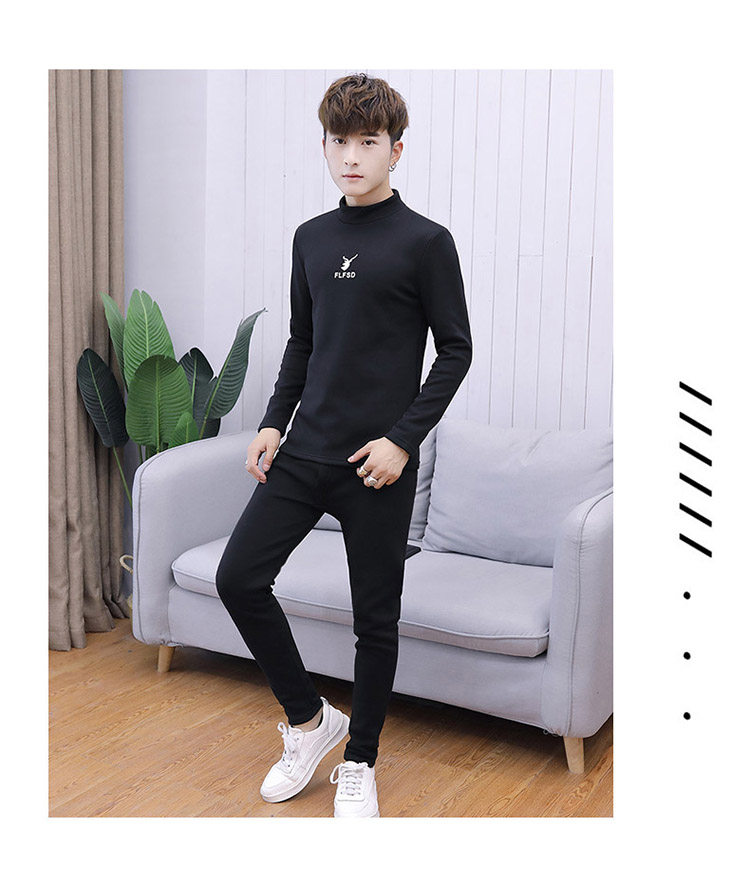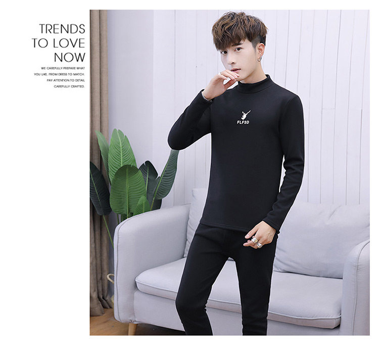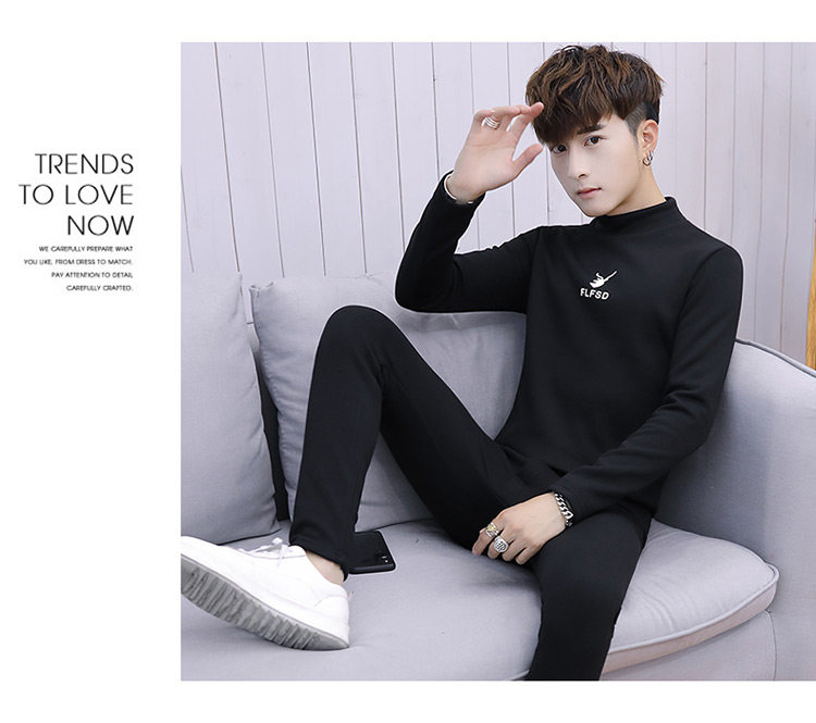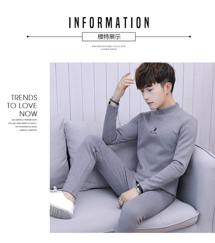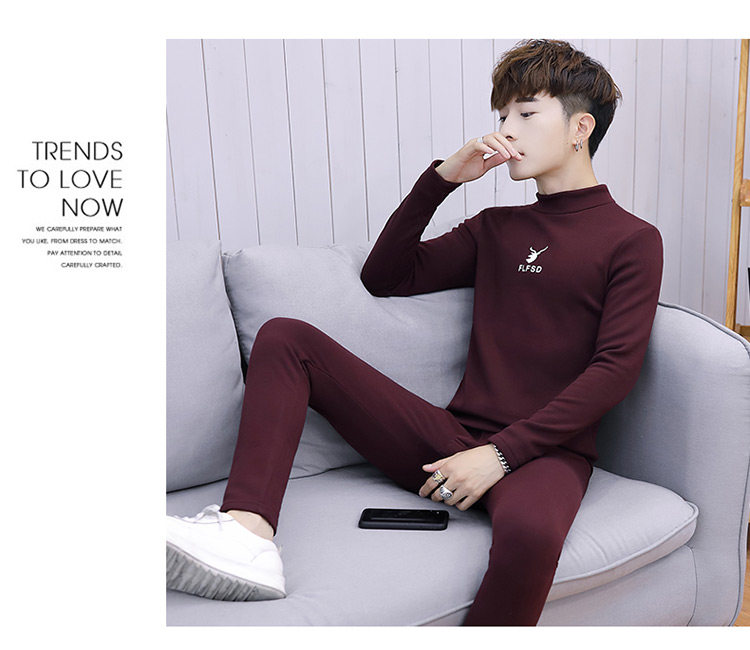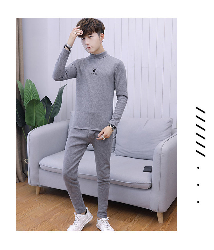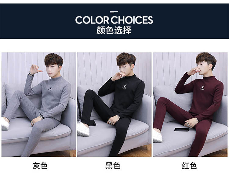Woodpecker men's new winter velvet thickened autumn clothes and autumn pants half turtleneck youth thermal underwear set
