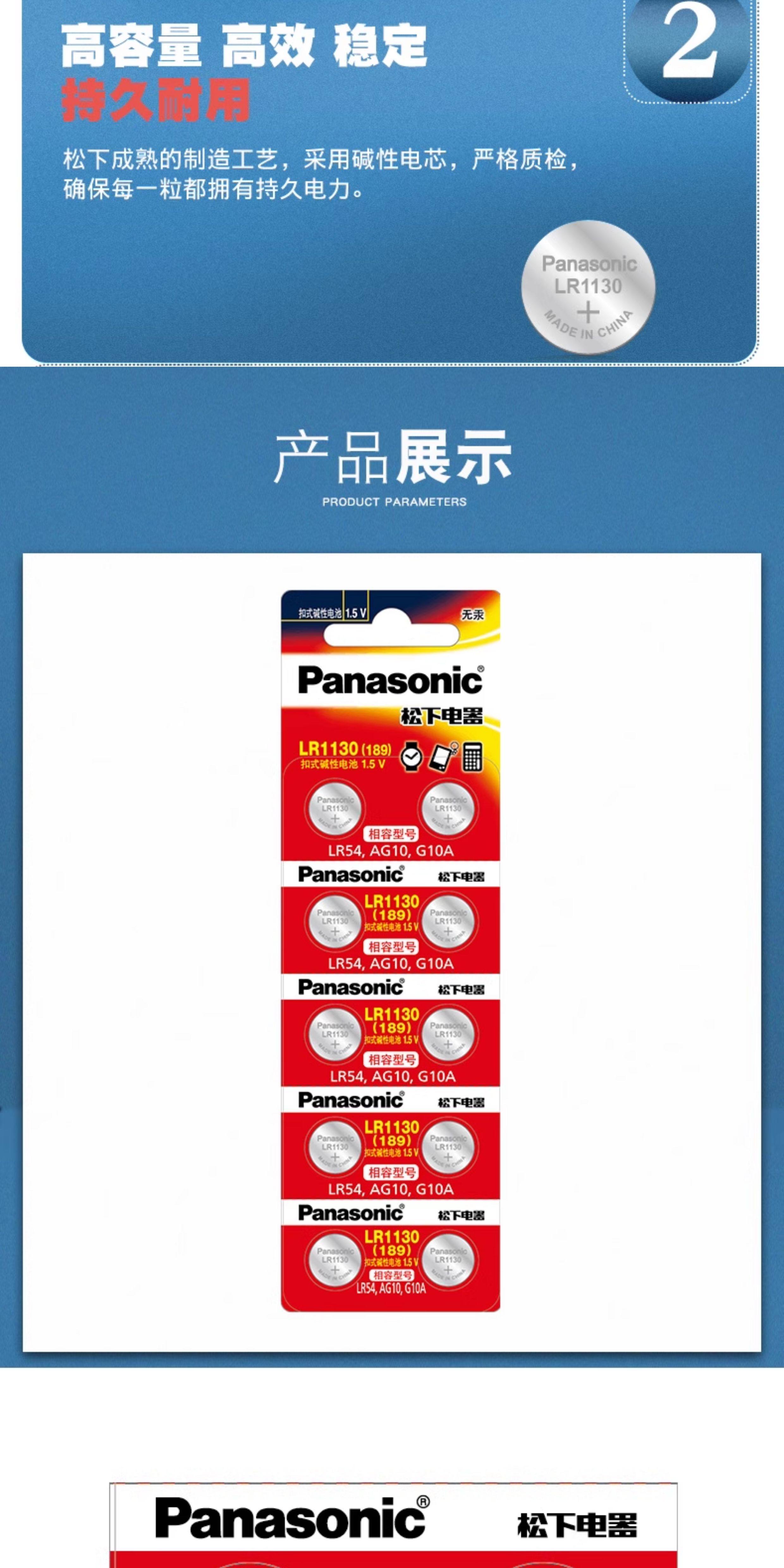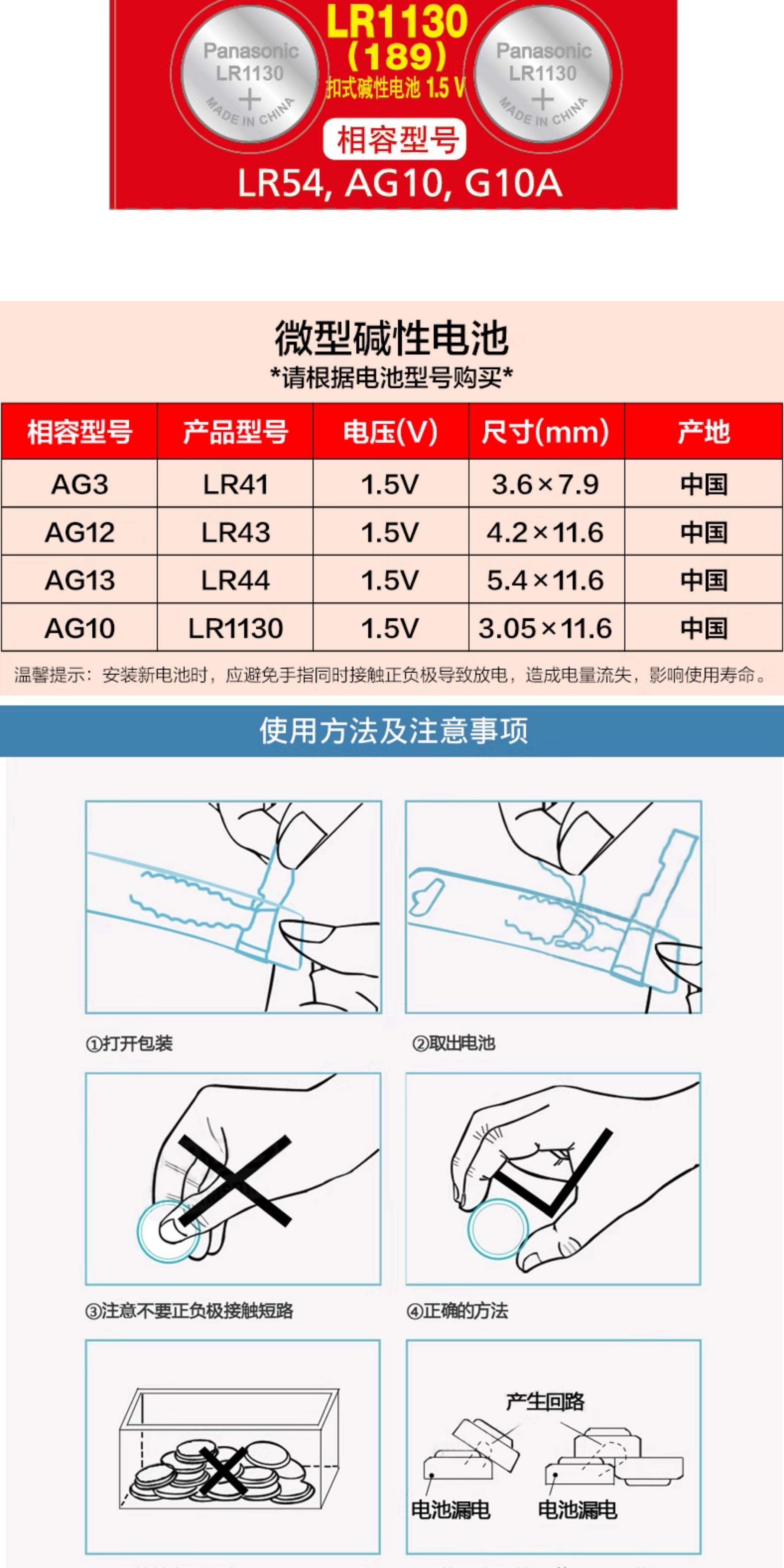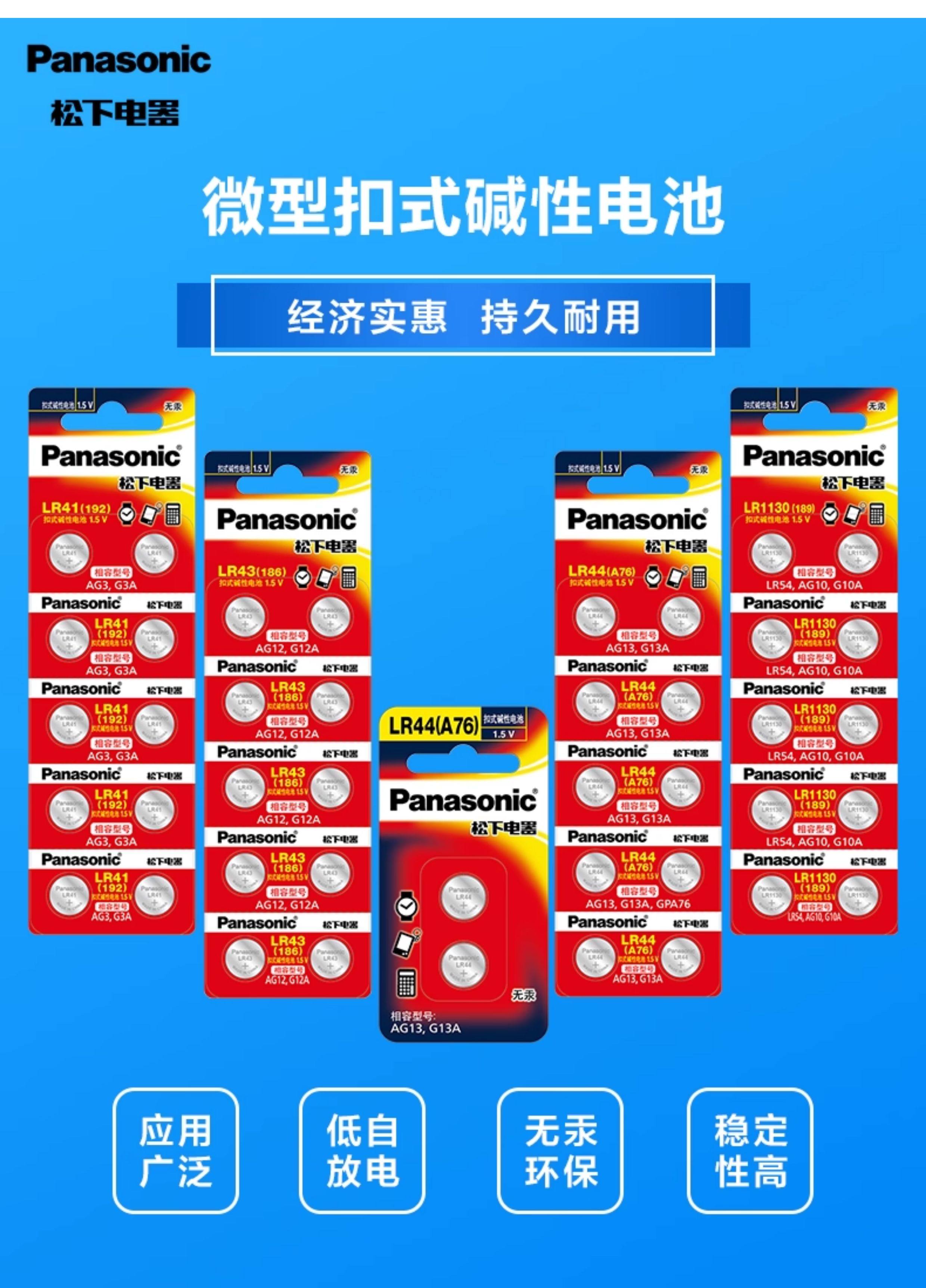 Panasonic Lr44/Lr43/Lr41/Lr1130 Alkaline Button Batteries for Watches, Toys, Remote Controls, Calipers, Ag13/A76/L1154/357A/Ag10/L1131/Lr54/189, Etc