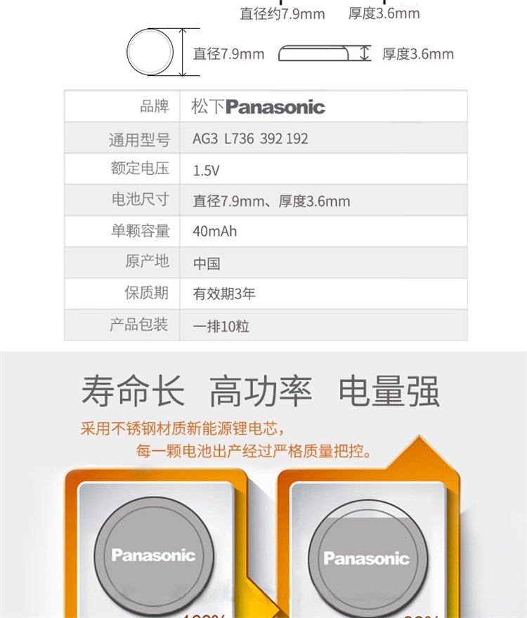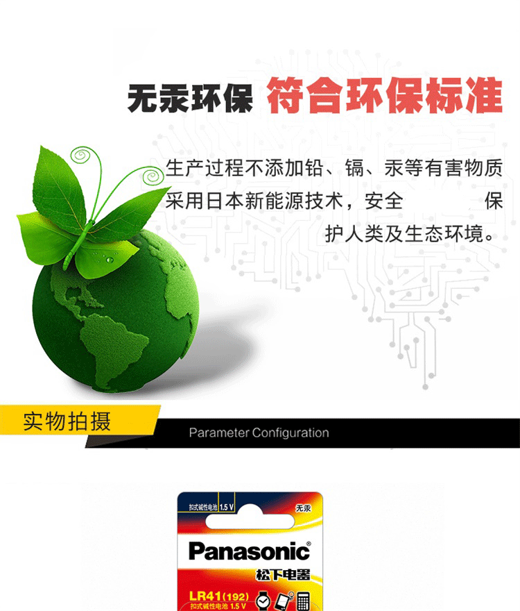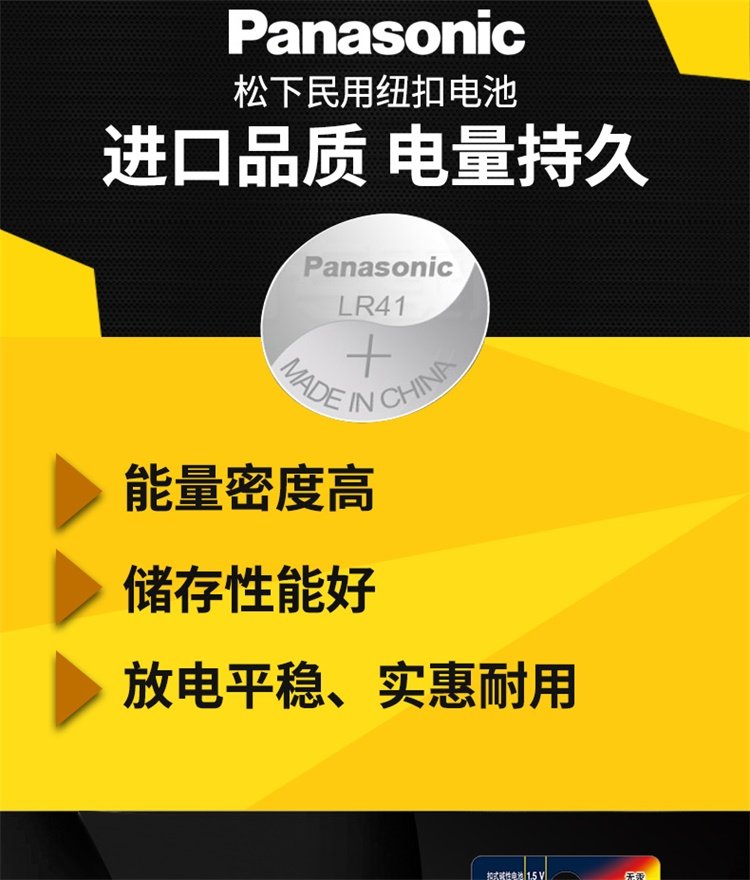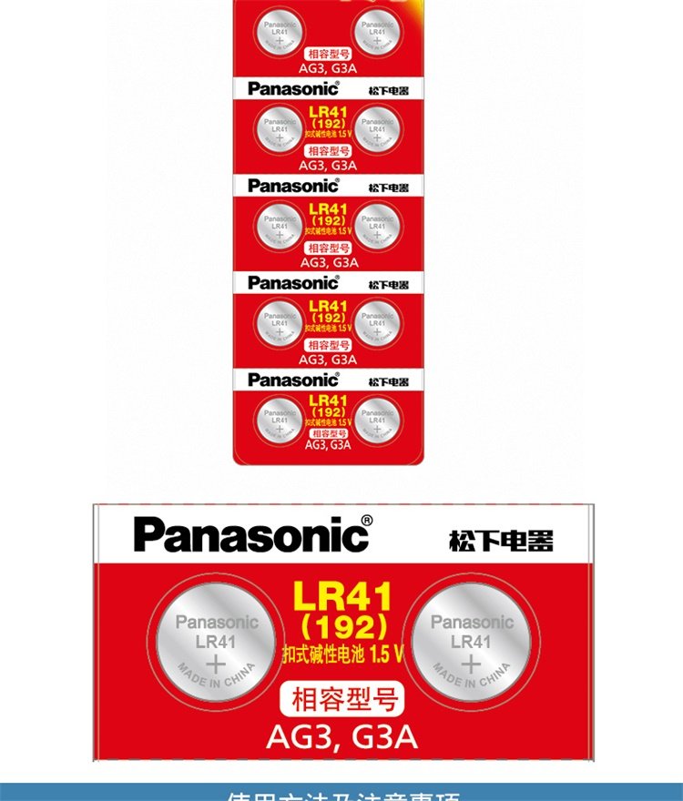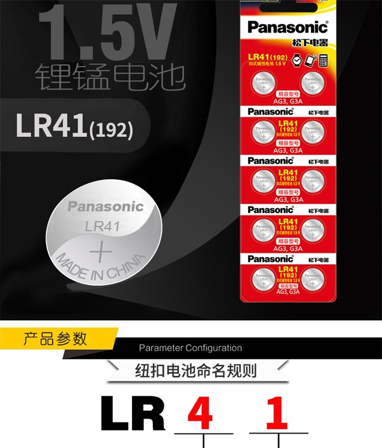 Panasonic Lr41 Alkaline Button Battery 192/Ag3/L736/392 Suitable for Electronic Watches, Thermometers, Calculators