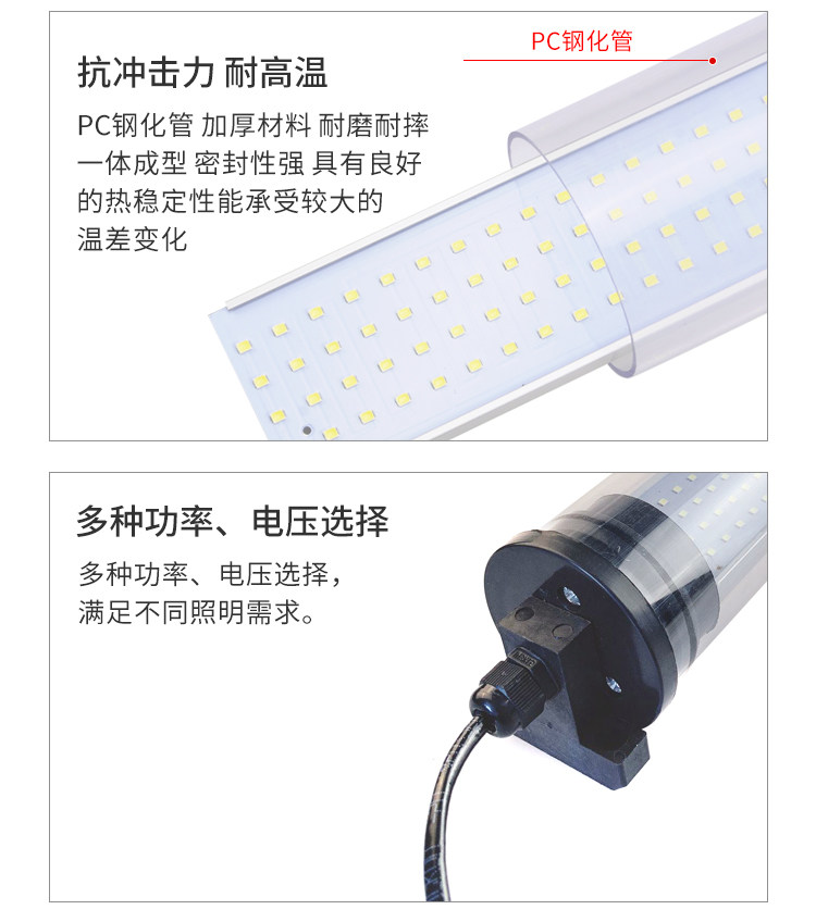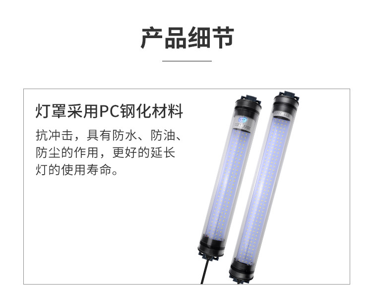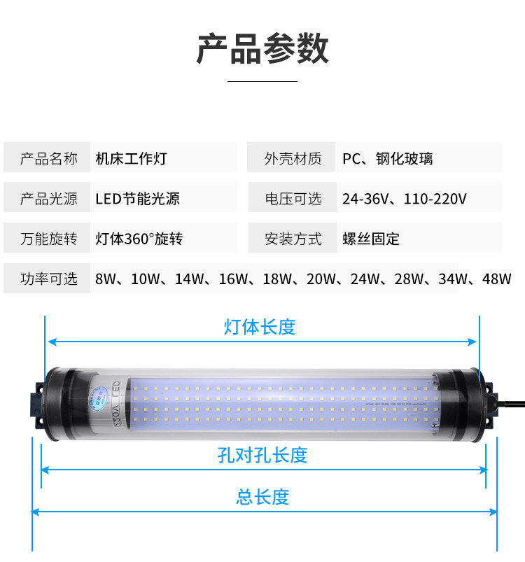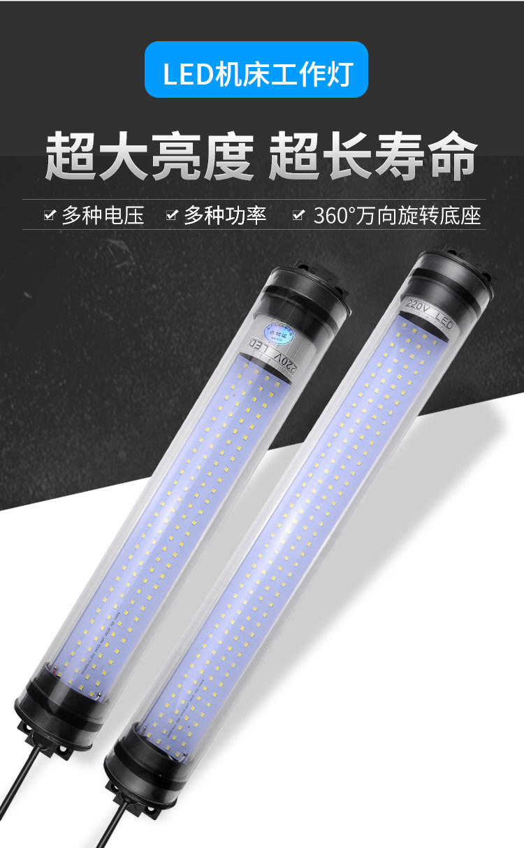 Machine Tool Work Light Led Cnc Lathe Work Light Round Tube Type Three-Proof Light 24V Lighting Oil-Proof and Waterproof 220V