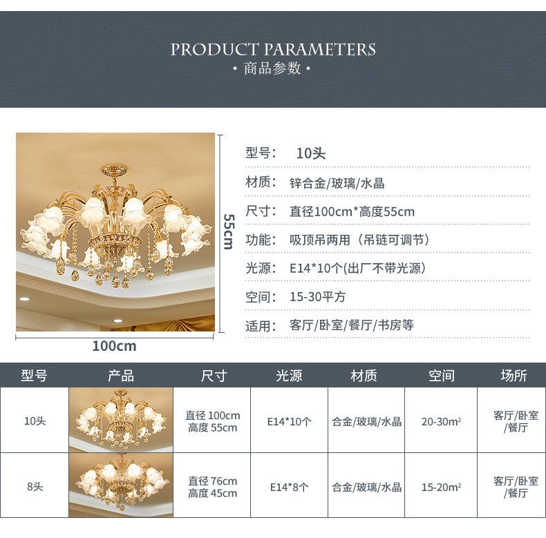 Color Classification 10 Heads-Three-Color Light Diameter 100*Height 55cm,10 Heads-Warm Light Diameter 100*Height 55cm,8 Heads-Warm Light Diameter 76*Height 45cm,8 Heads - Three-Color Light Diameter 76*Height 45cm