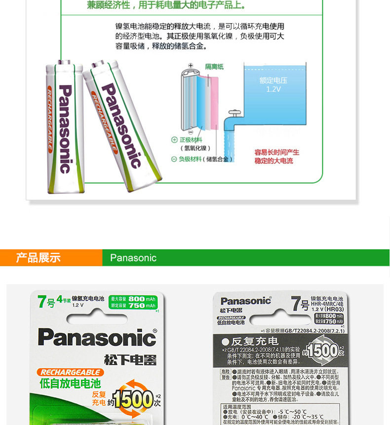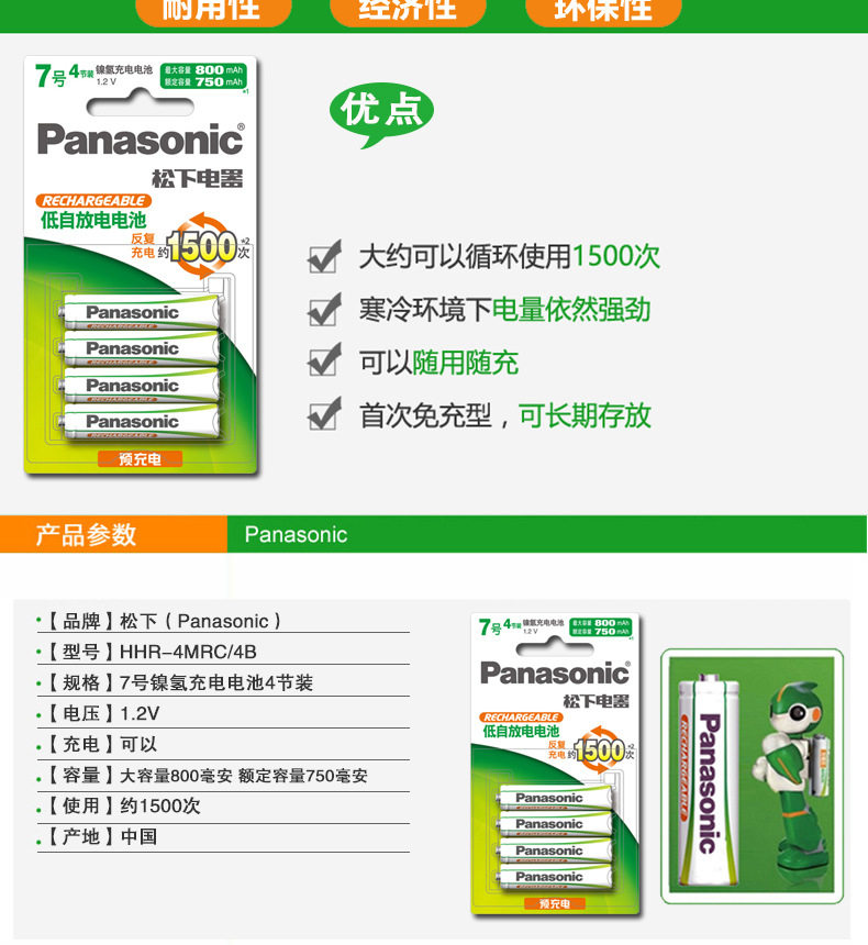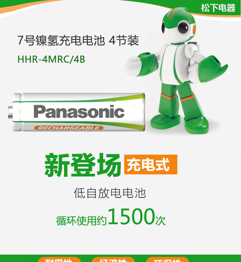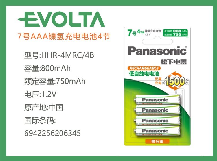 Panasonic Nickel-Metal Hydride Evolta Rechargeable Battery Hhr-4Mrc/4B Contains 4 Aa Batteries 1.2V 800Mah
