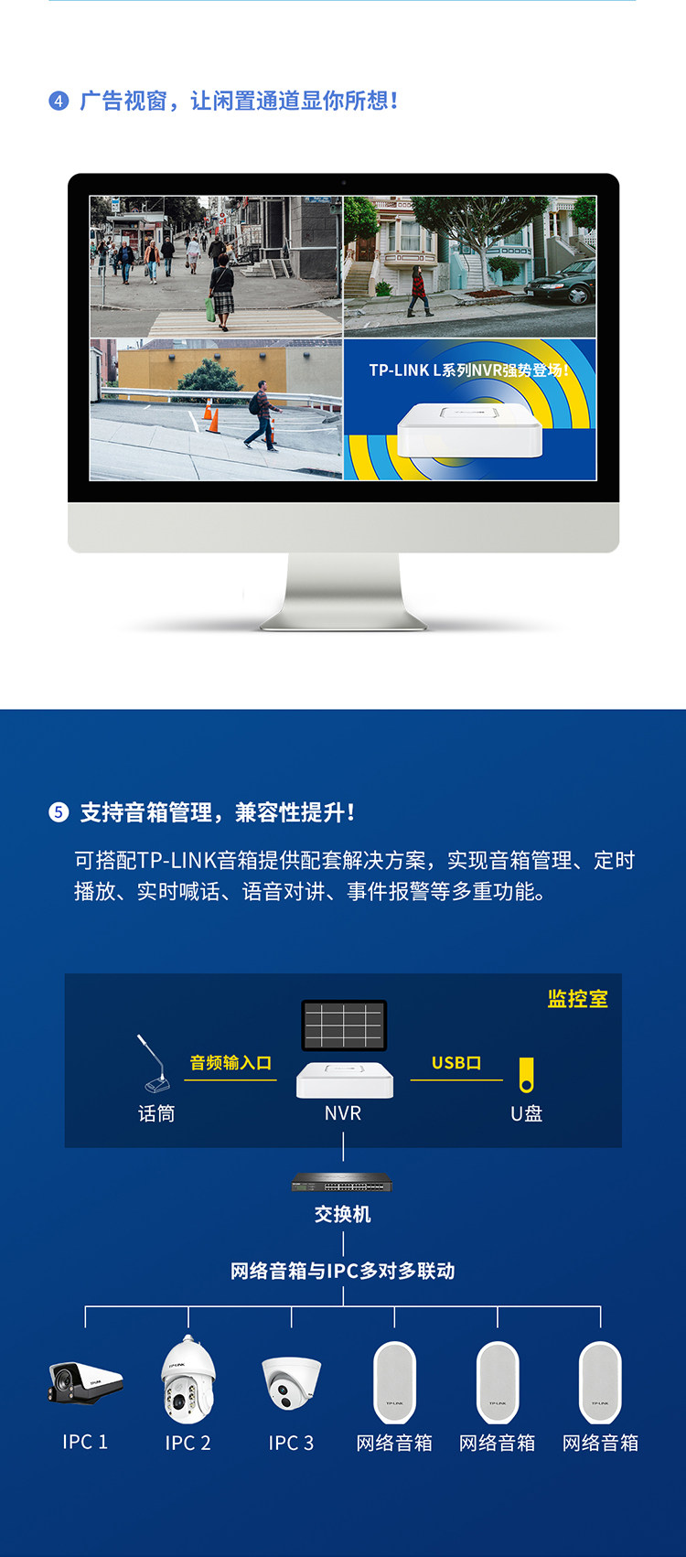 TP-LINK network hard disk video recorder 8-channel surveillance camera recording host home commercial high-definition H265+