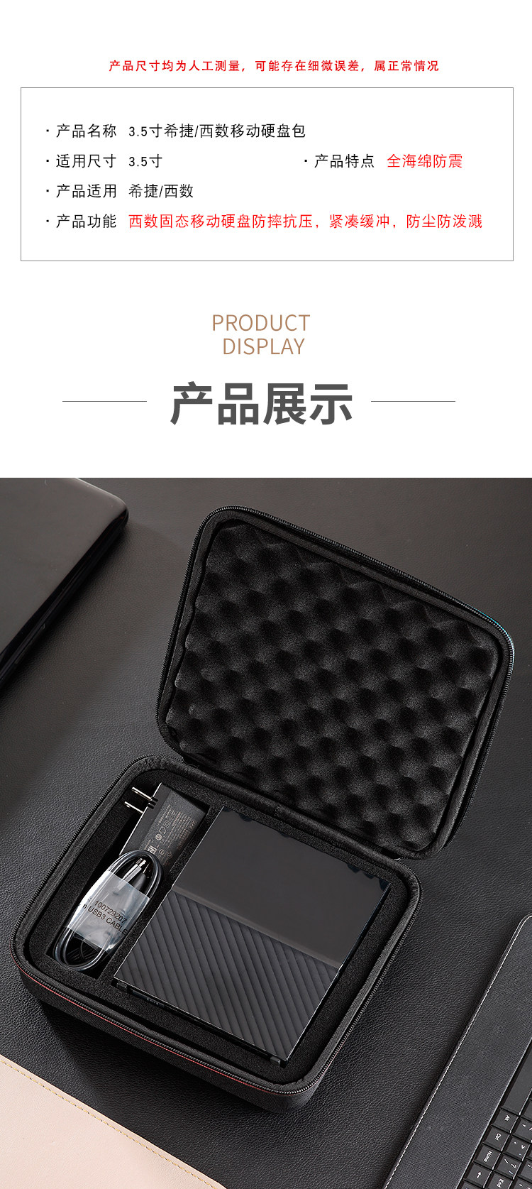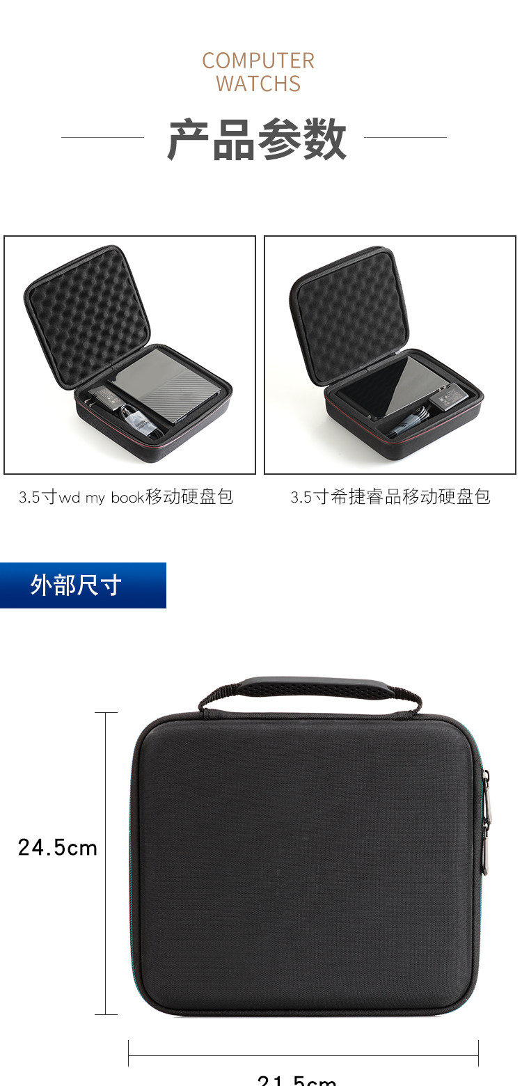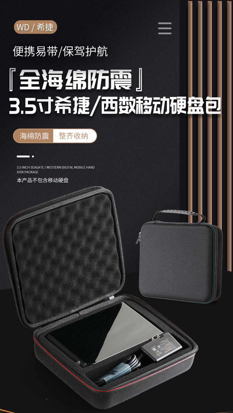 Suitable for 3.5inch Western Digital Mybook Seagate 6t 8t 10t 12t Desktop Mobile Hard Drive Storage Bag Shockproof