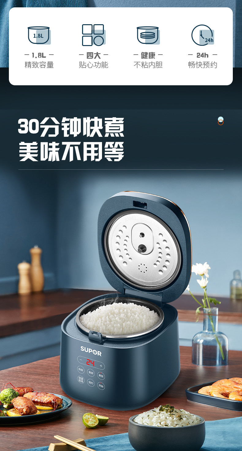 Supor rice cooker 2-3 people home dormitory small fully automatic multifunction intelligent 1.8L mini rice cooker