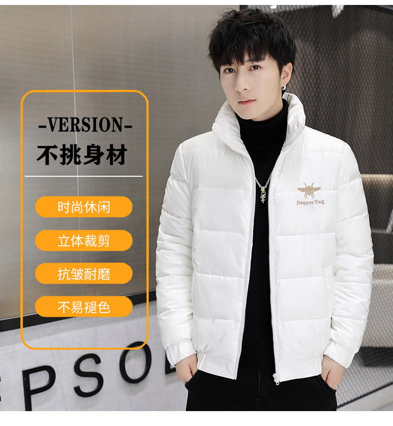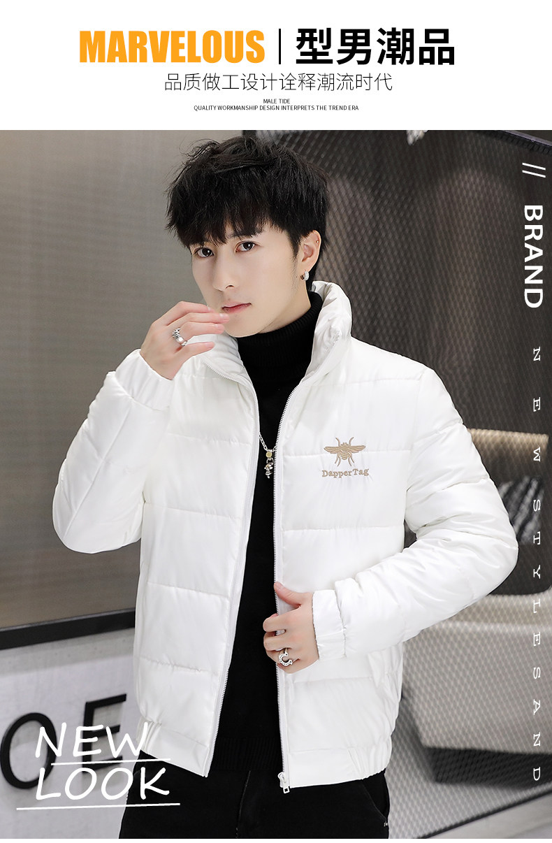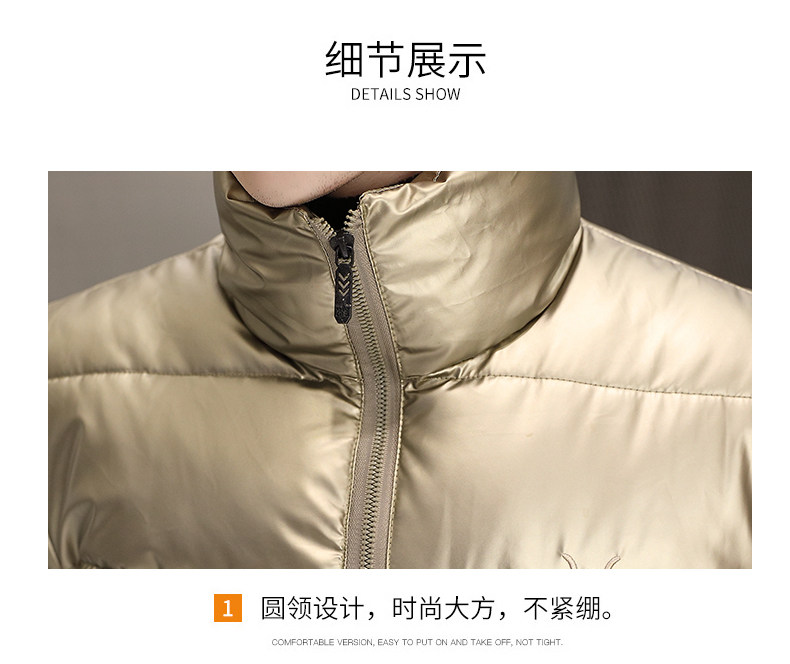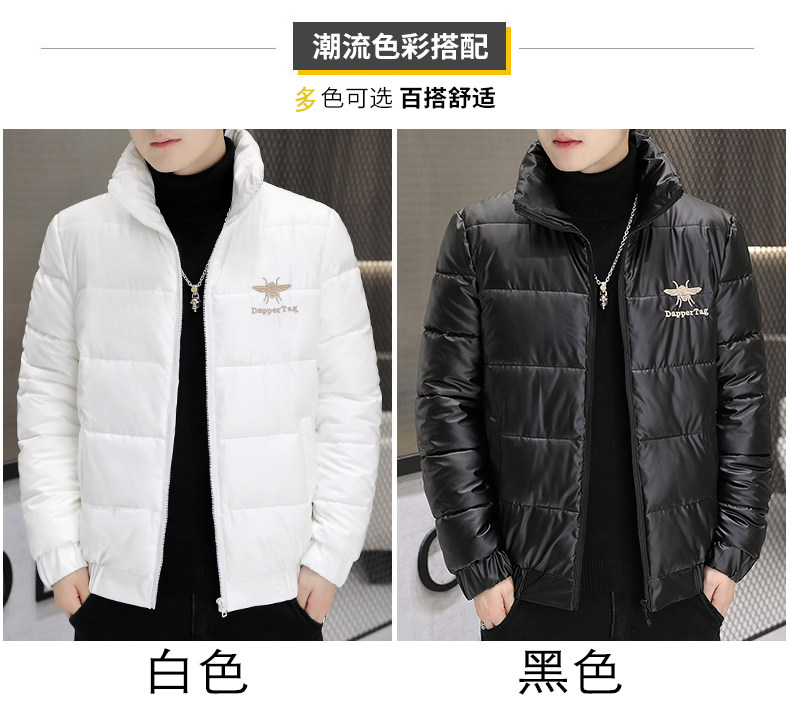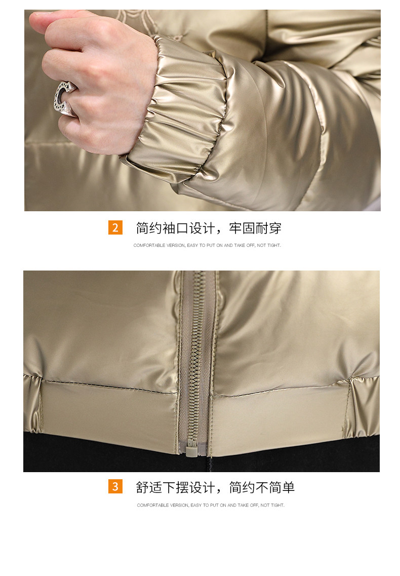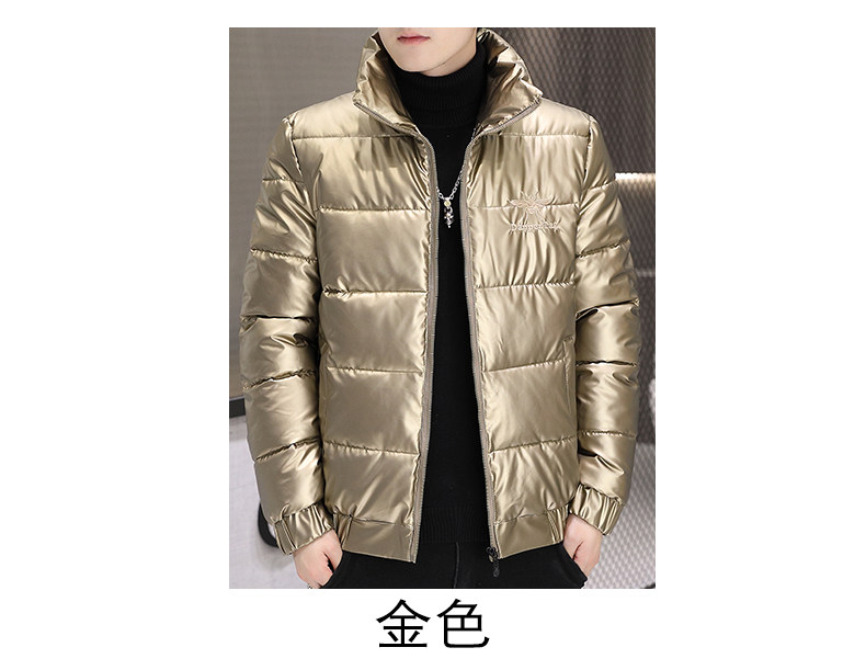 New Men's Cotton Coat with Shiny Leather, Winter Jacket, Trendy Stand-Up Collar, Waterproof, Thick, Short down Cotton Jacket, Youth Cotton-Padded Jacket