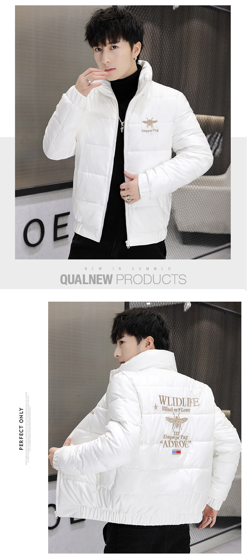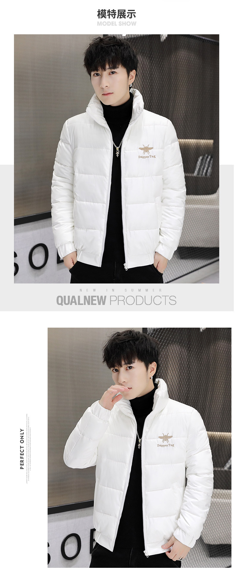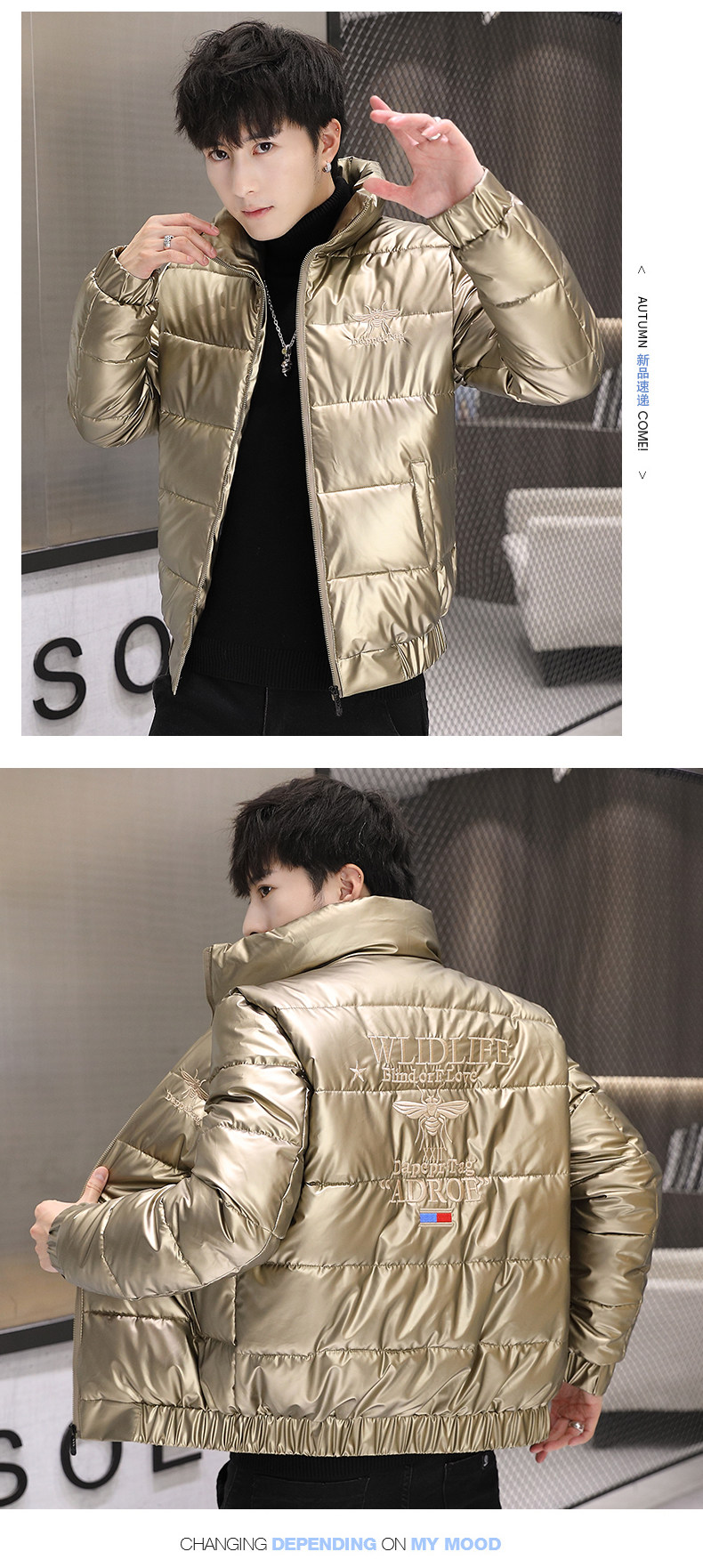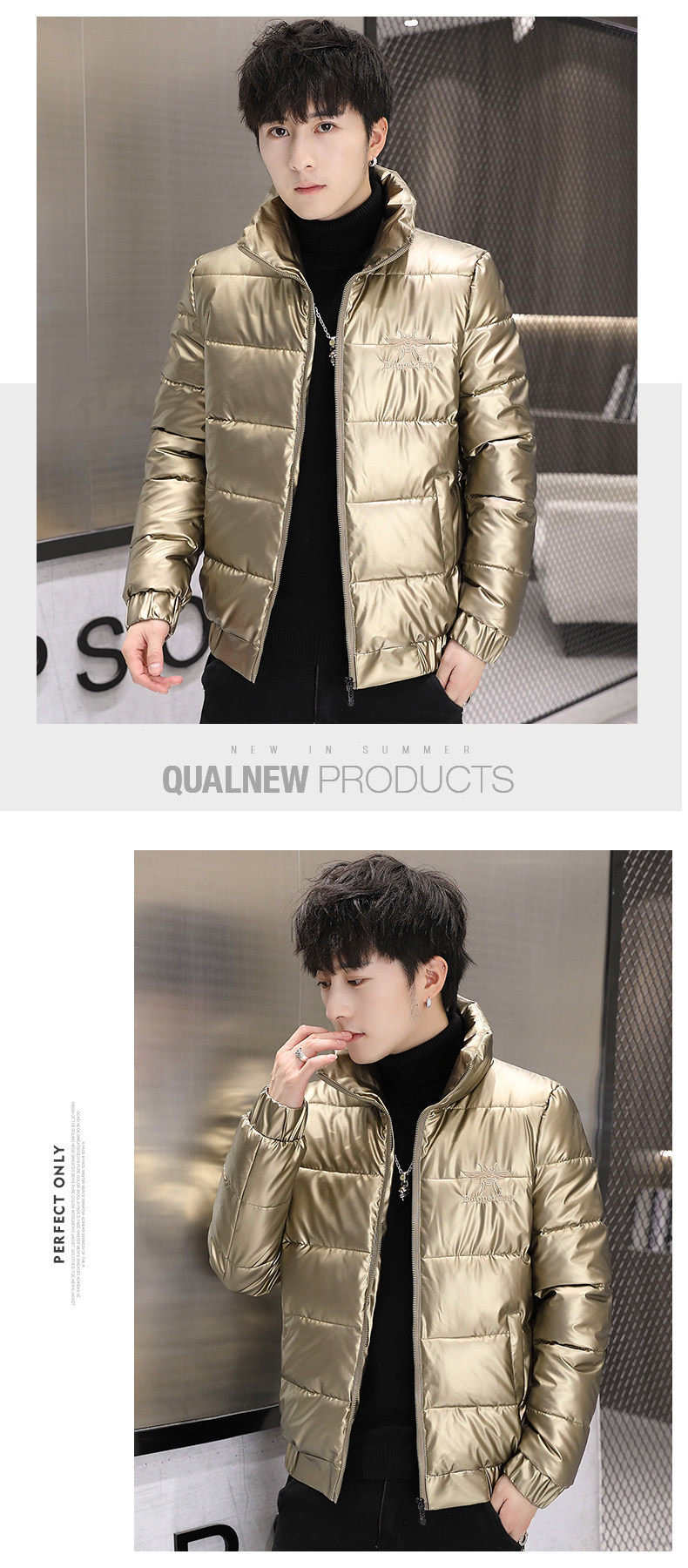 New Men's Cotton Coat with Shiny Leather, Winter Jacket, Trendy Stand-Up Collar, Waterproof, Thick, Short down Cotton Jacket, Youth Cotton-Padded Jacket