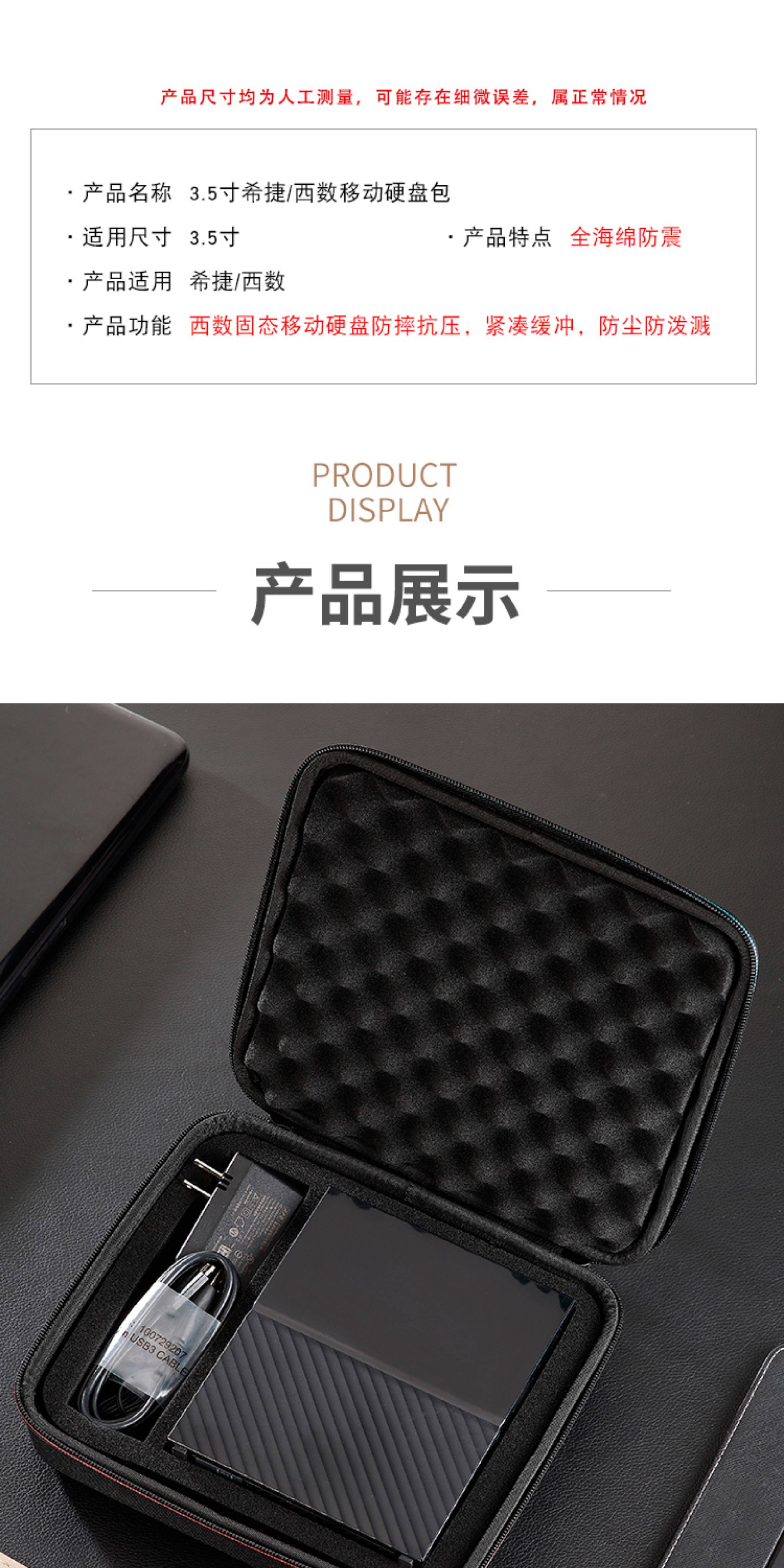 Sort by color Suitable for 3.5-inch WD portable hard drive,Suitable for 3.5-inch Seagate Ruipin series mobile hard drives,Universal style inner length 23.5*15*5CM