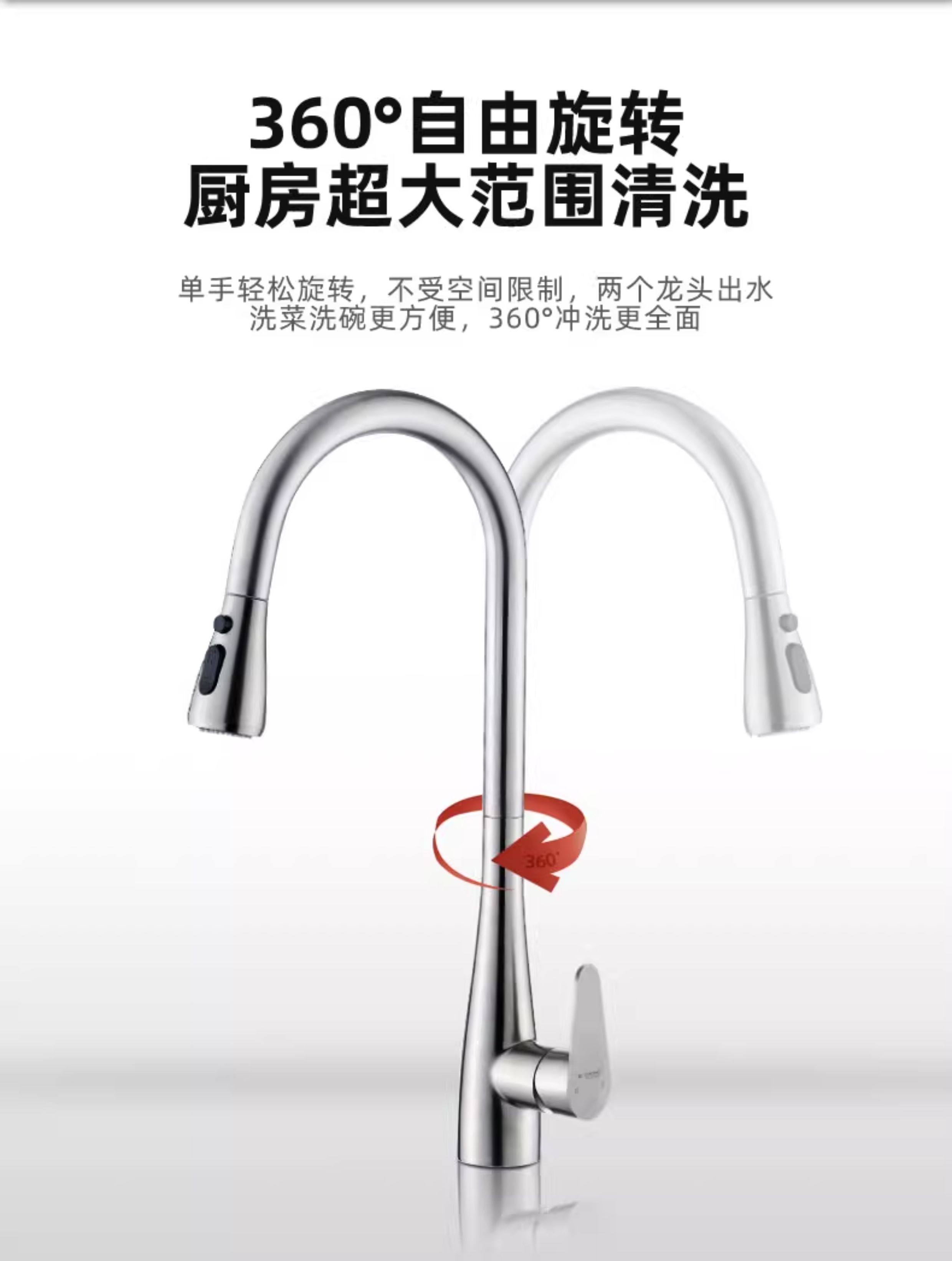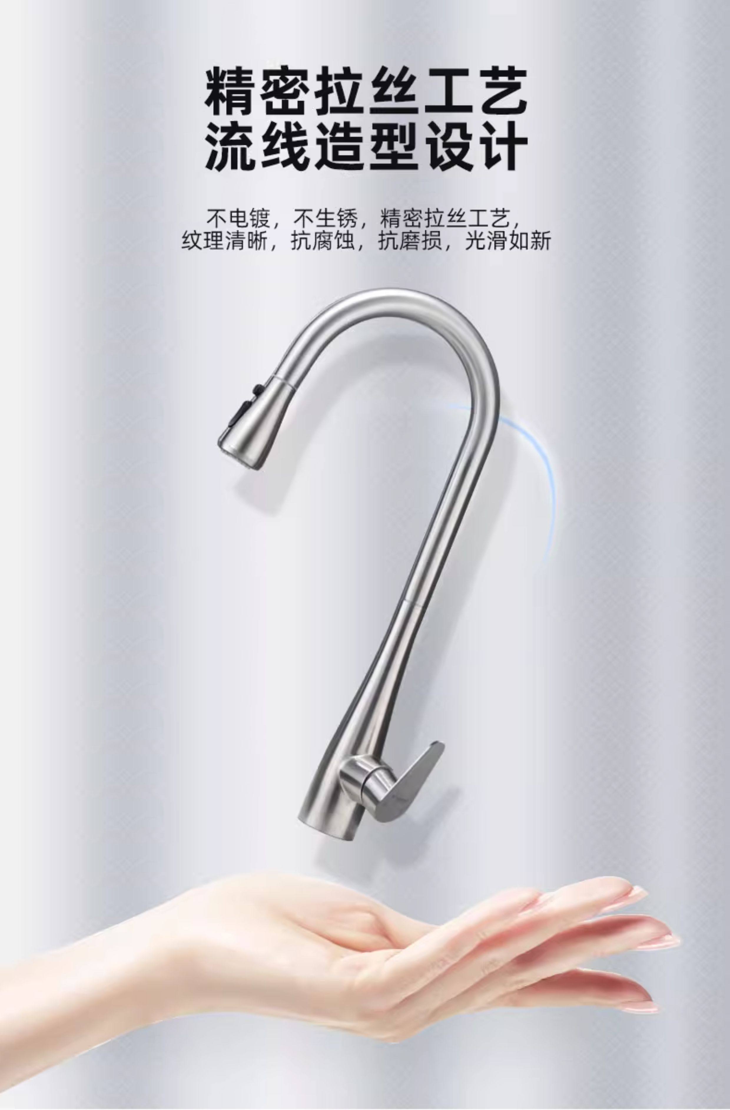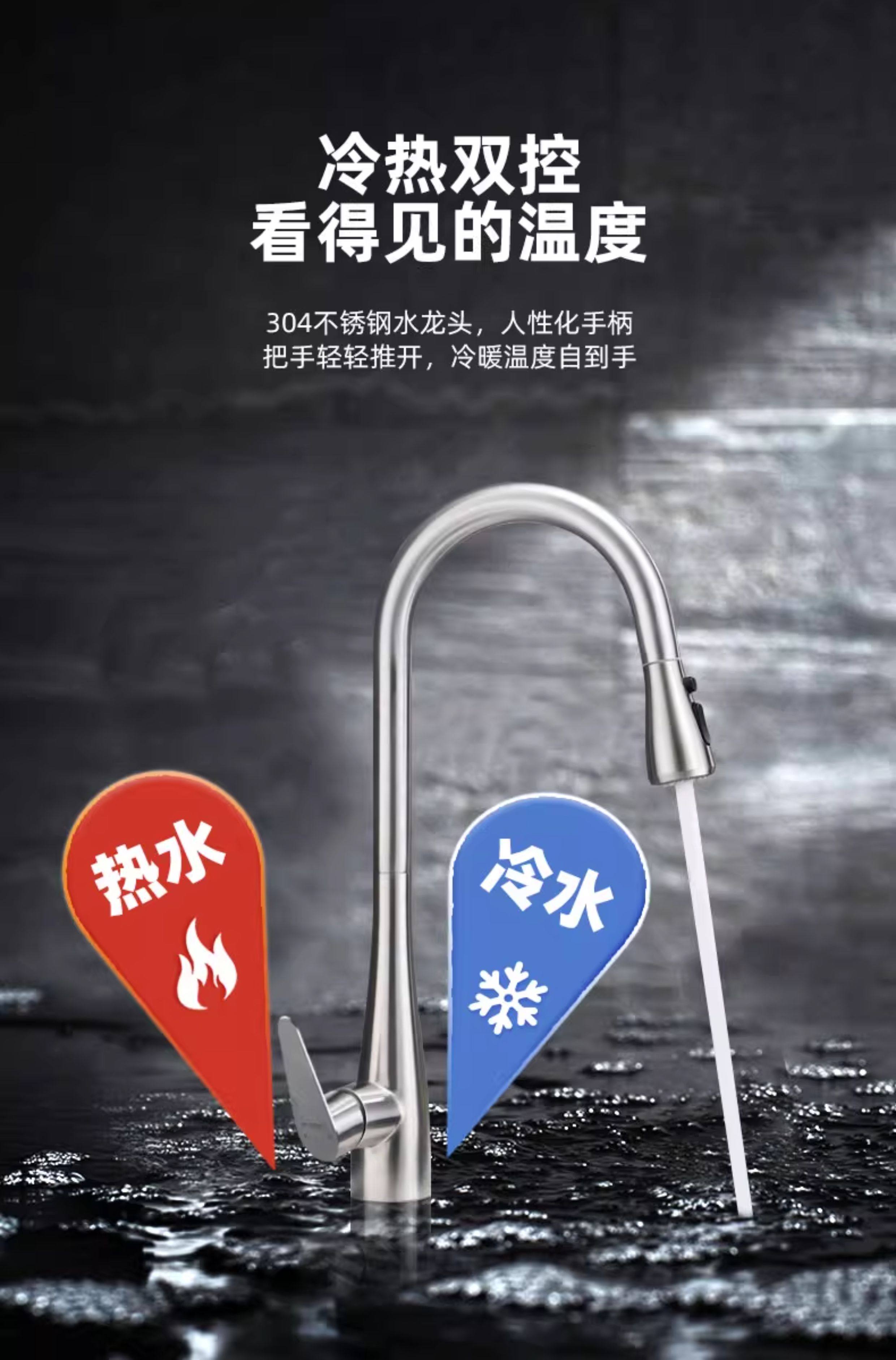 Sus304 Stainless Steel Kitchen Faucet with Hot and Cold Water for Dishwashing Sink, Dual-Mode Water Outlet, Pull-Out and Retractable