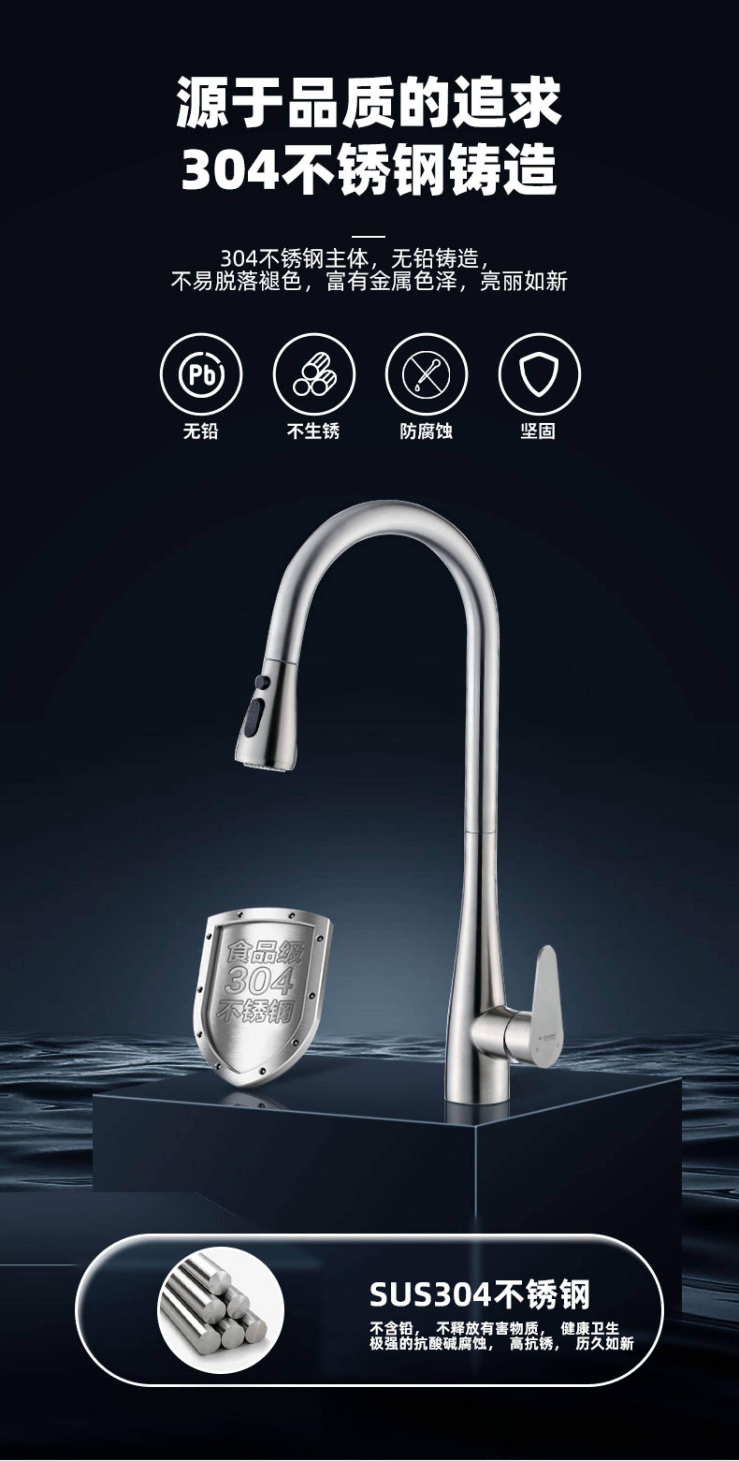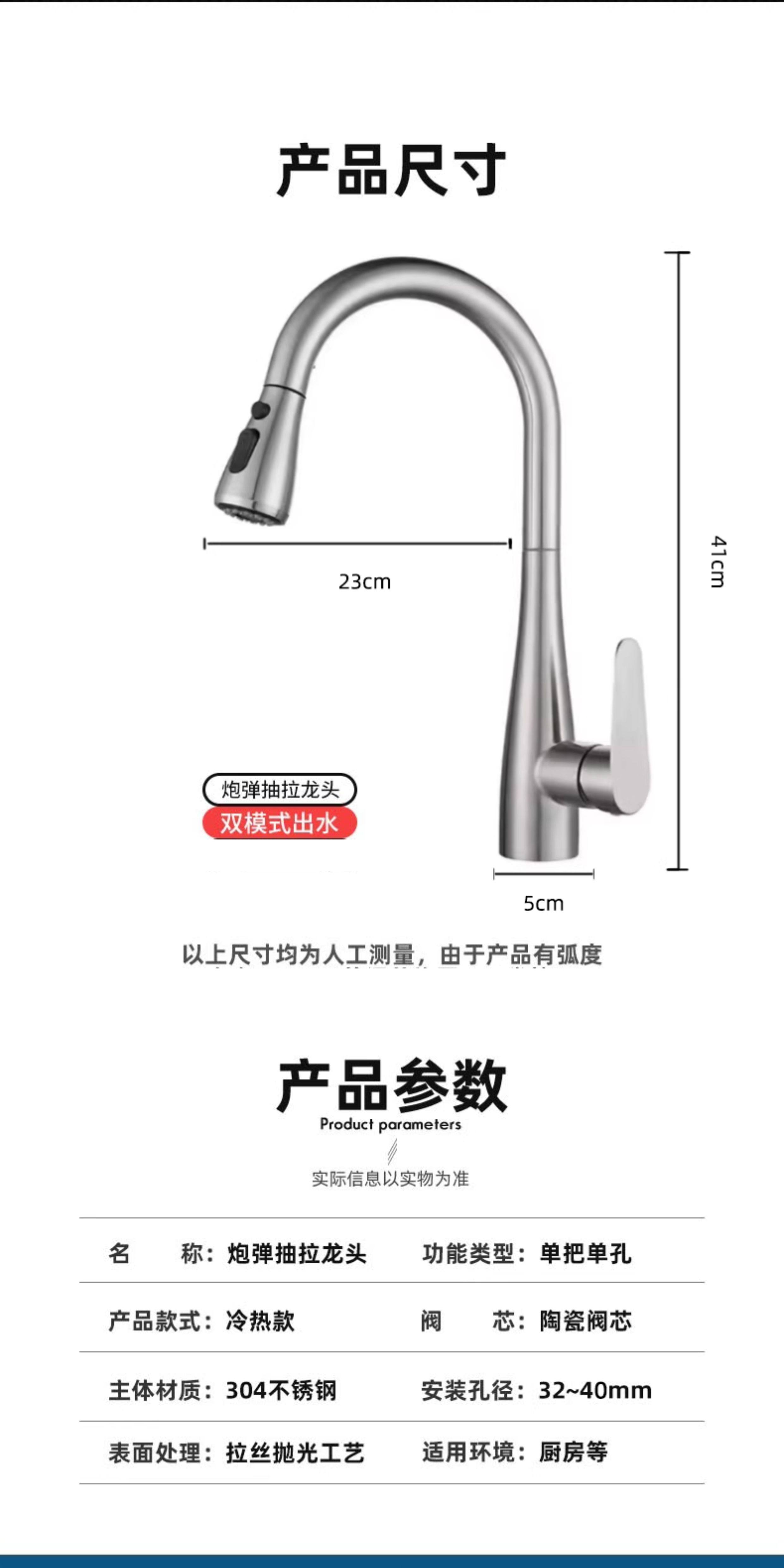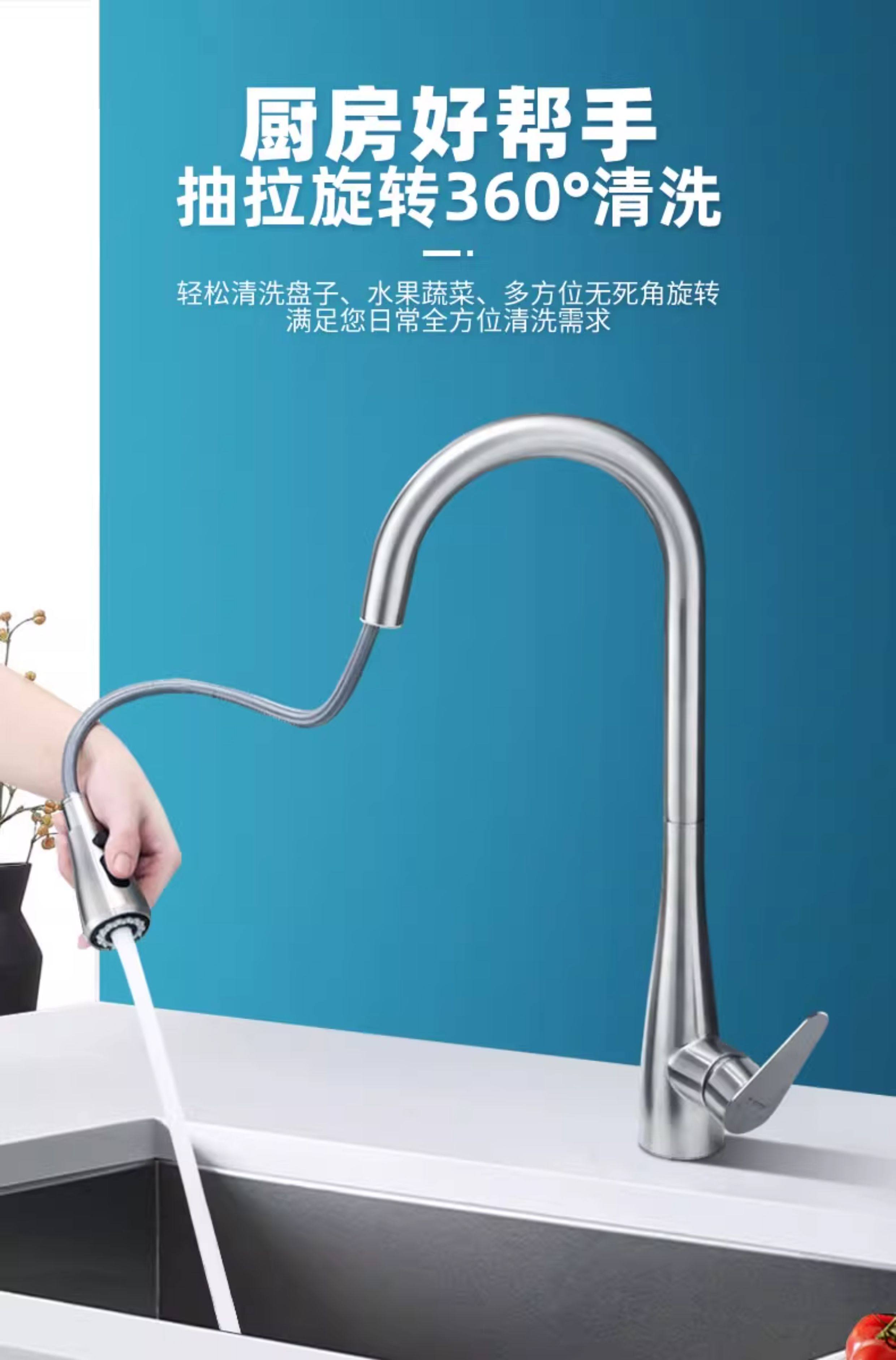 Sus304 Stainless Steel Kitchen Faucet with Hot and Cold Water for Dishwashing Sink, Dual-Mode Water Outlet, Pull-Out and Retractable